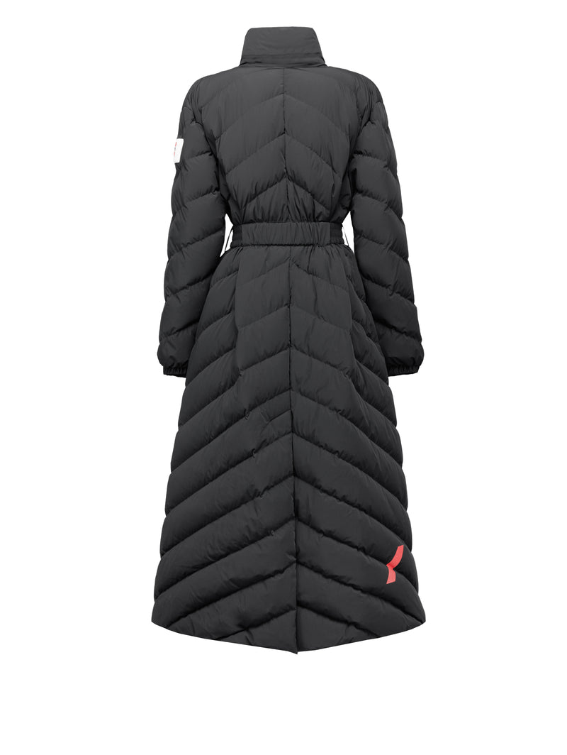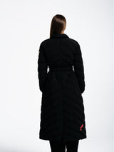 Piumino Lungo con Cintura in Nylon Opaco Nero
