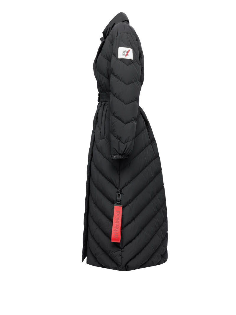 AFTER LABEL-Piumino Lungo con Cintura in Nylon Opaco Nero-TRYME Shop