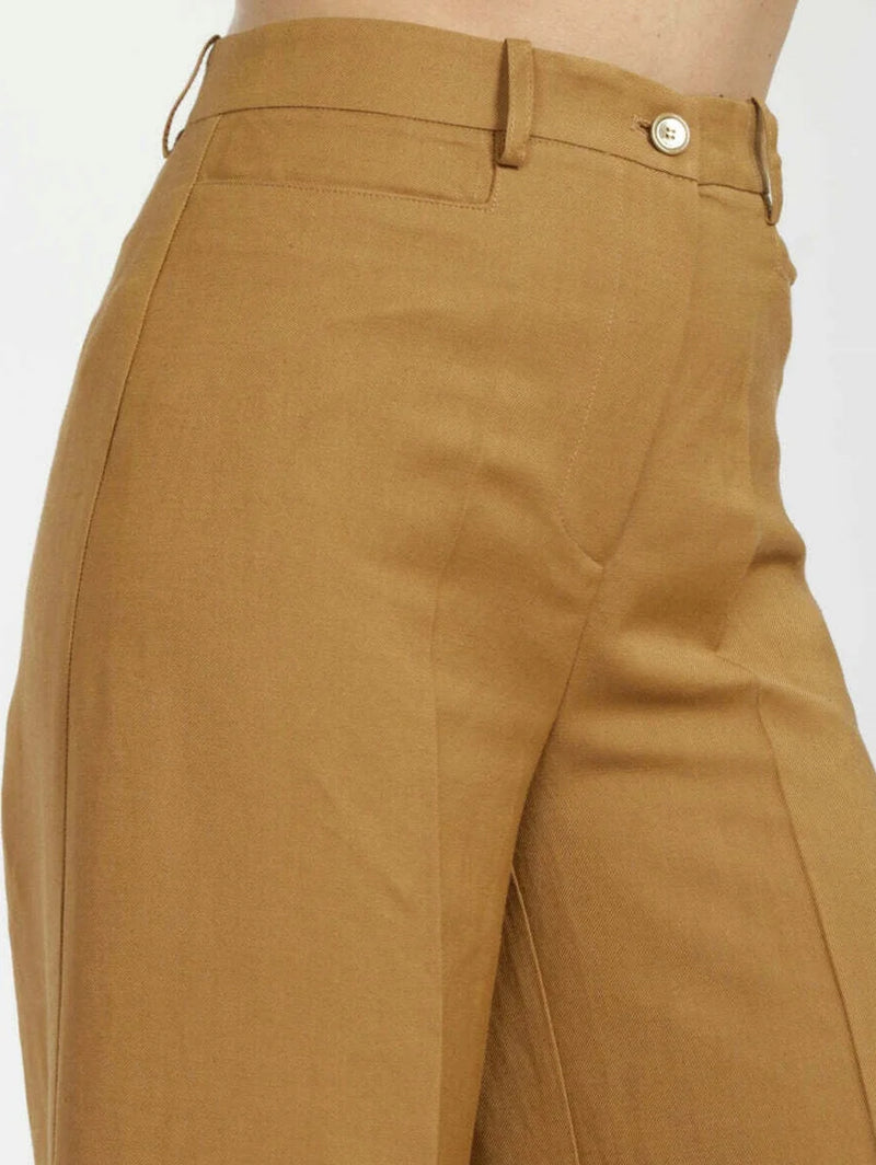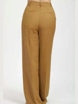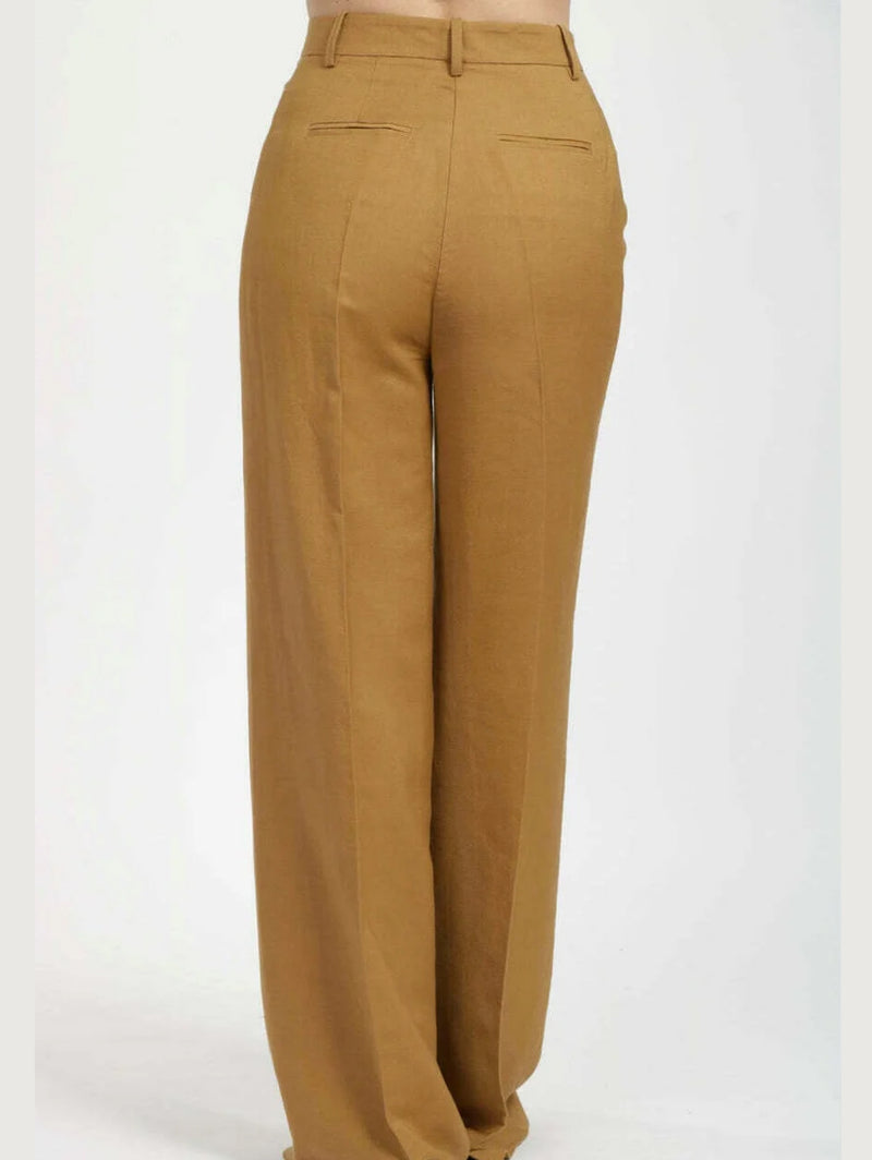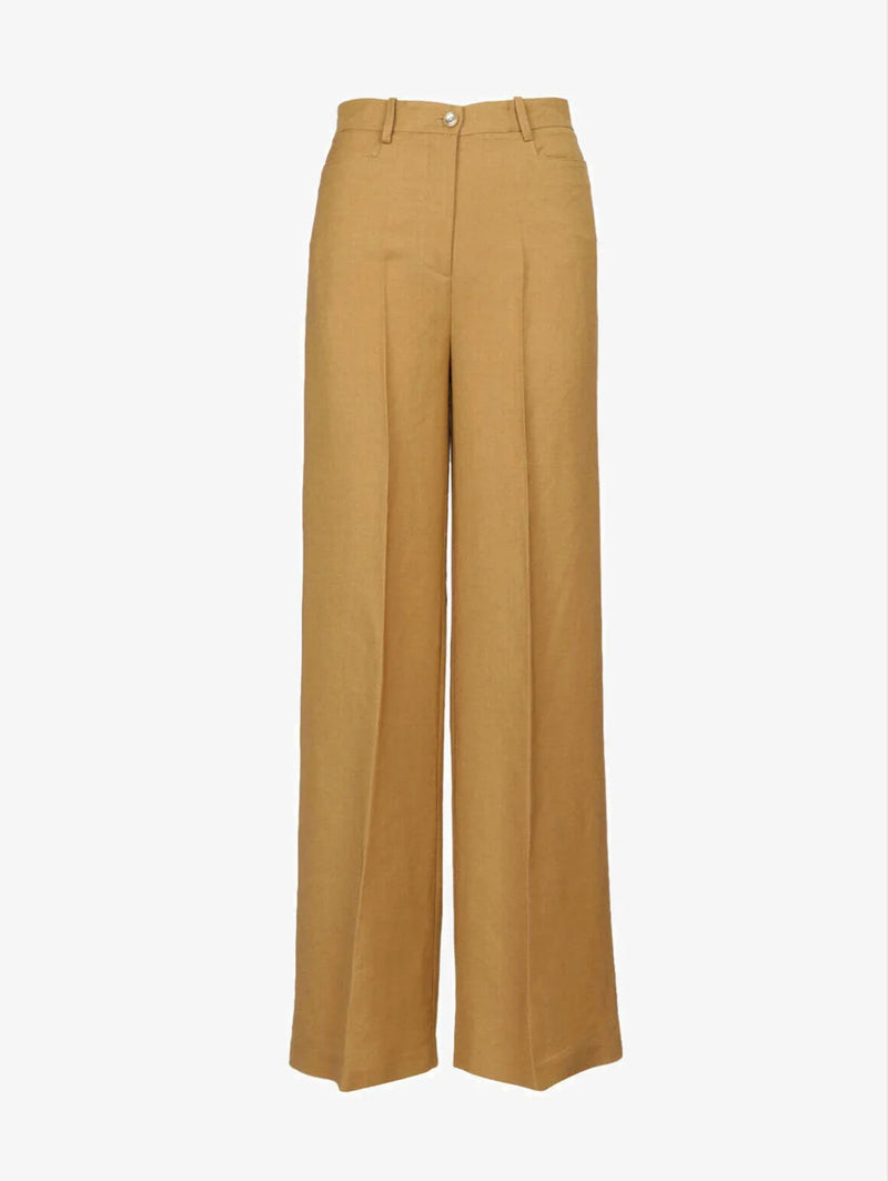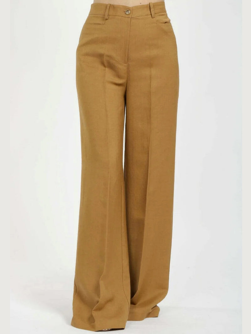 Panatoli Gamba Ampia in Misto Lino Mostarda