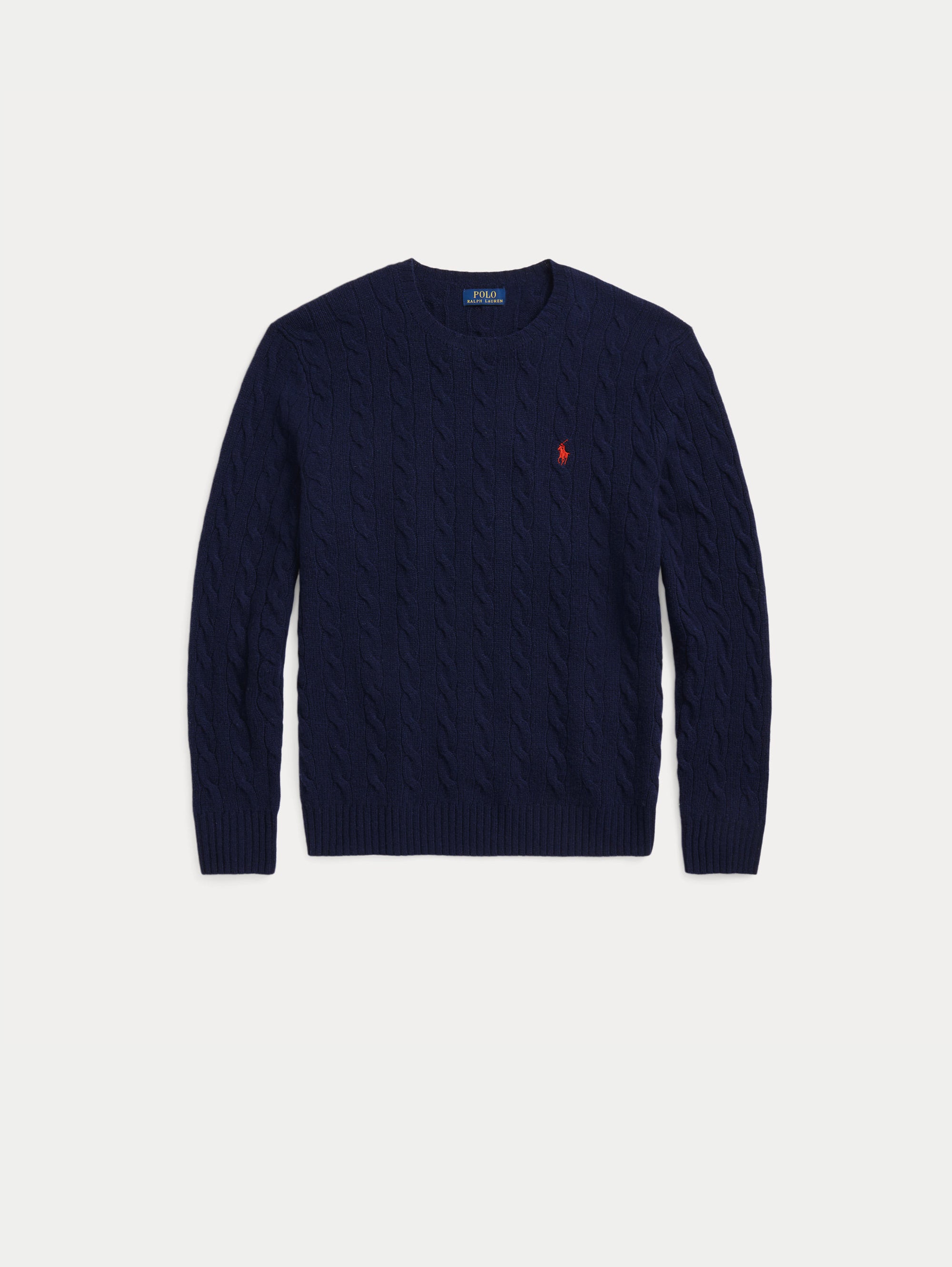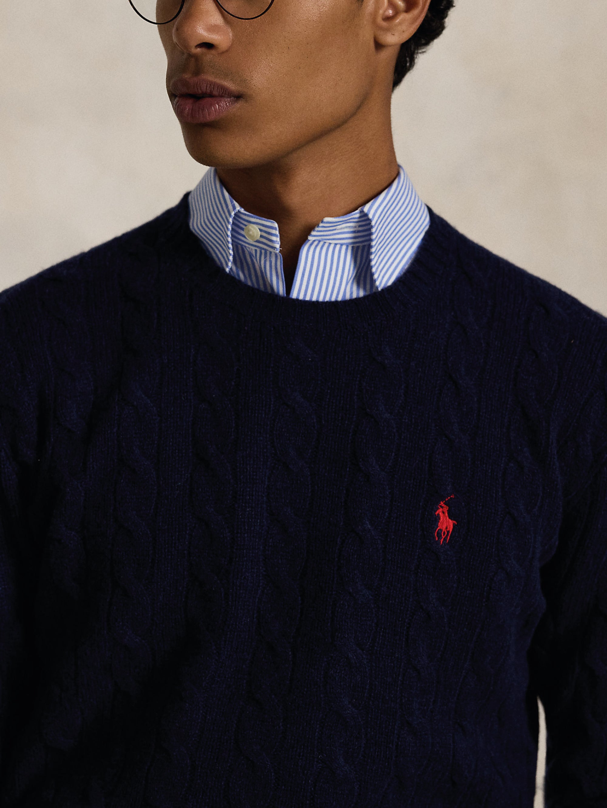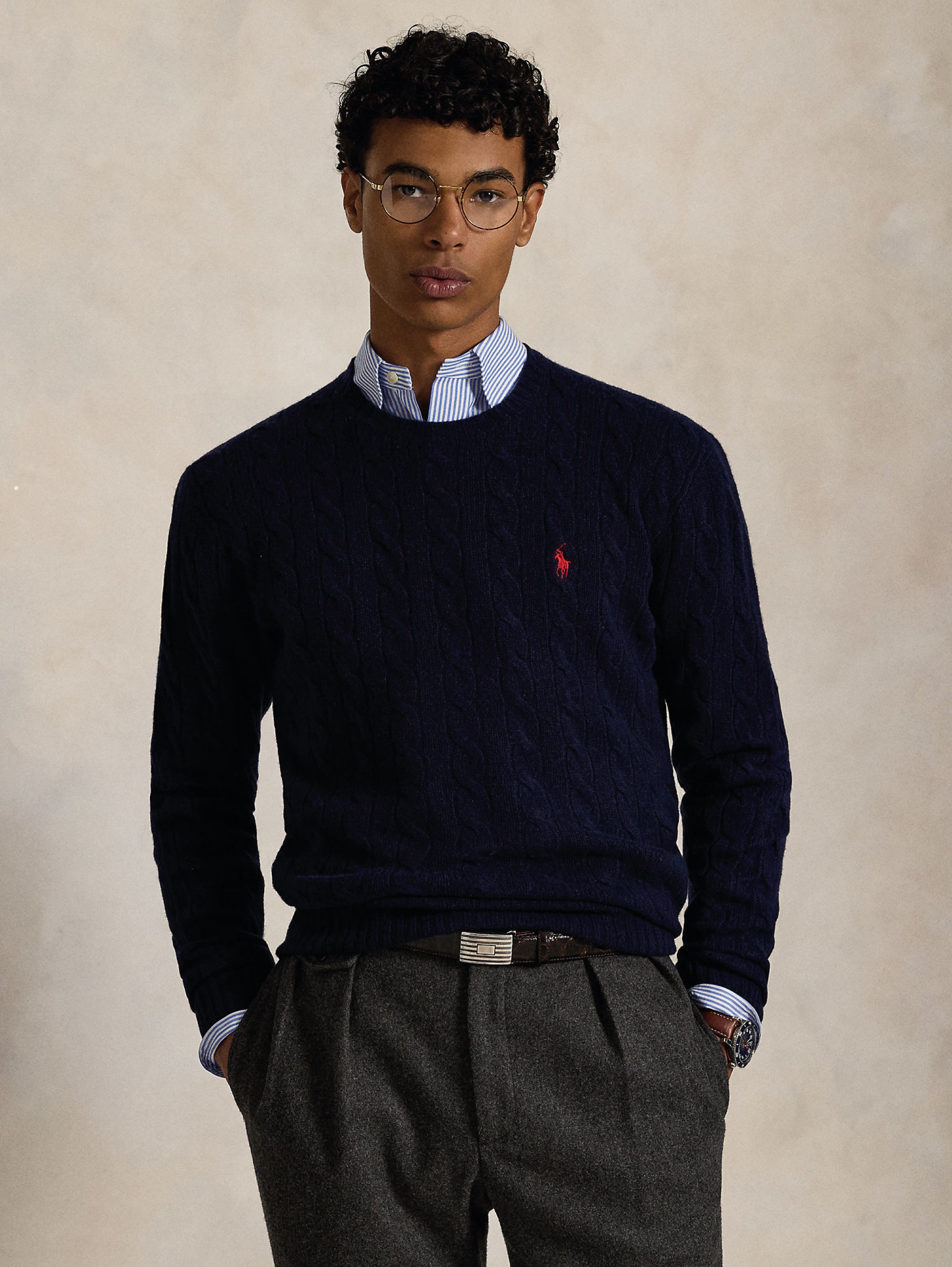 Maglia girocolla a trecce in misto lana e cashmere da uomo di Polo Ralph Lauren.