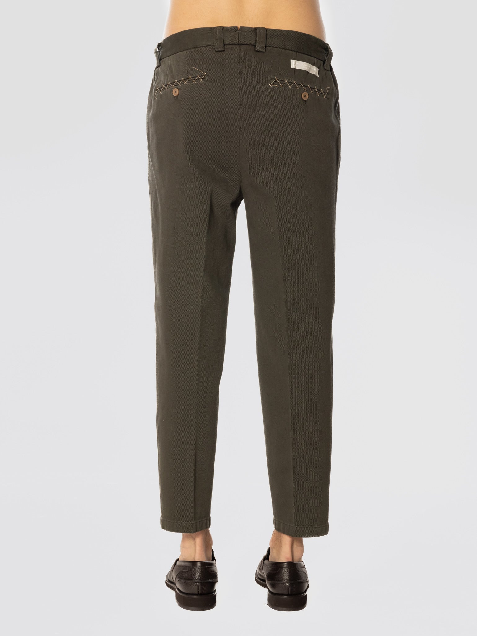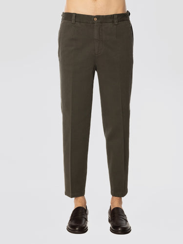 Pantaloni in Bull Denim con Pinces Verde Militare