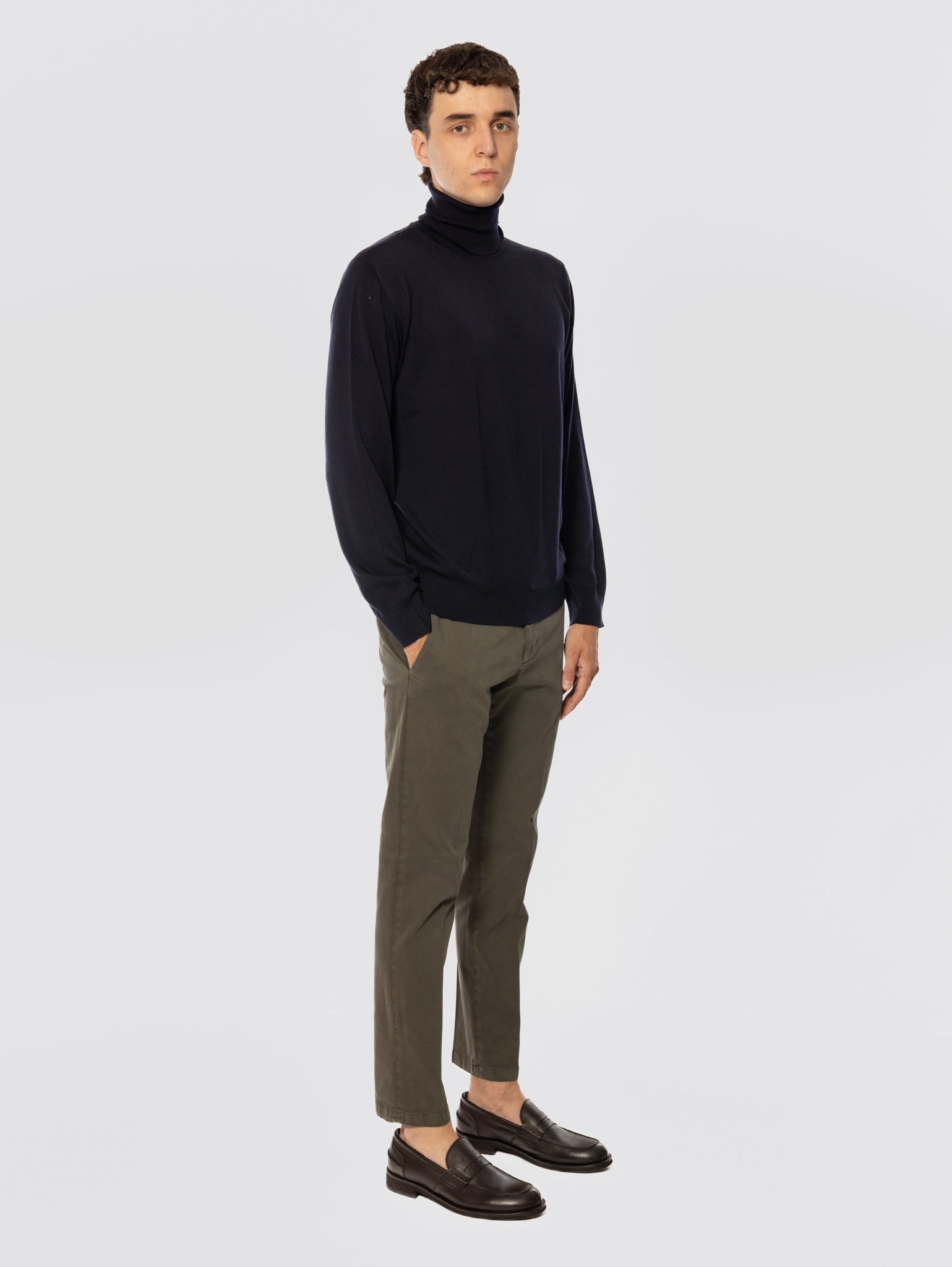 - Pantaloni taglio chino slim fit in cotone tinto capo