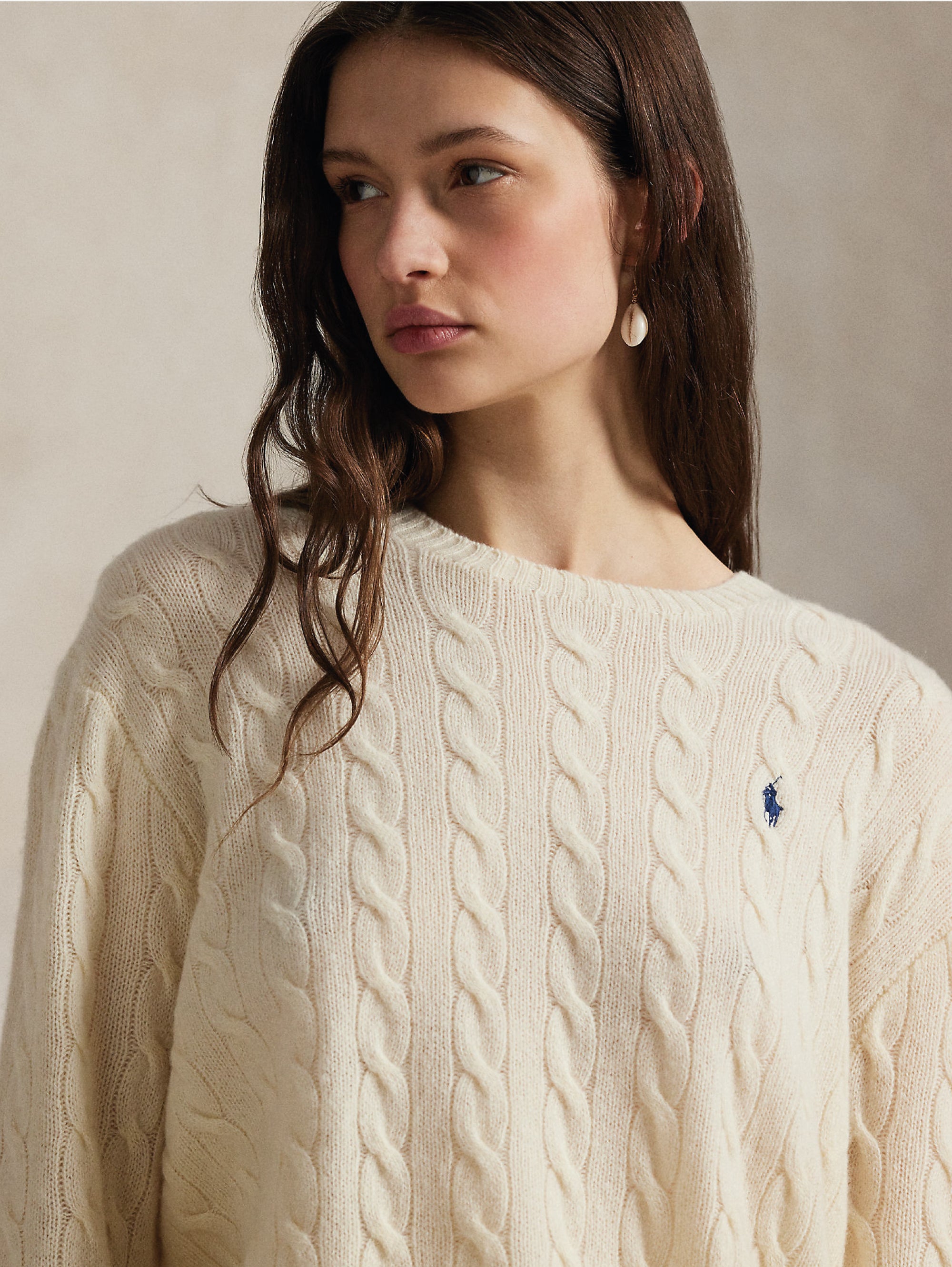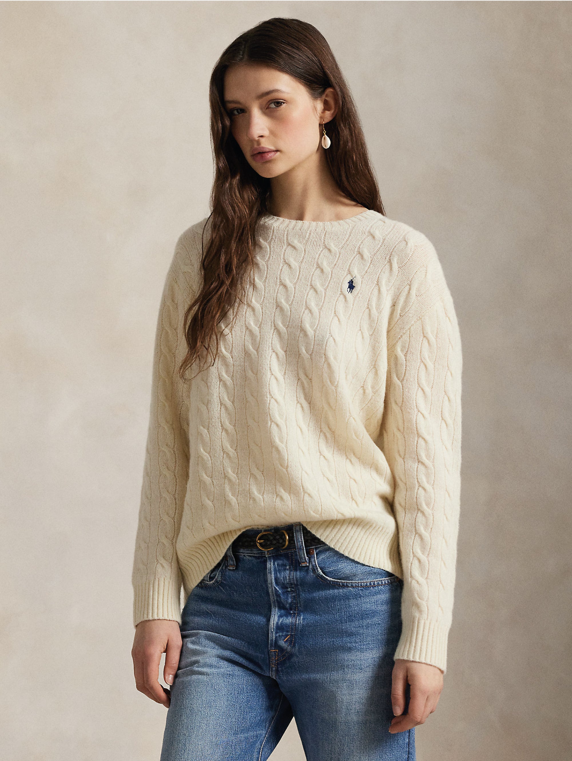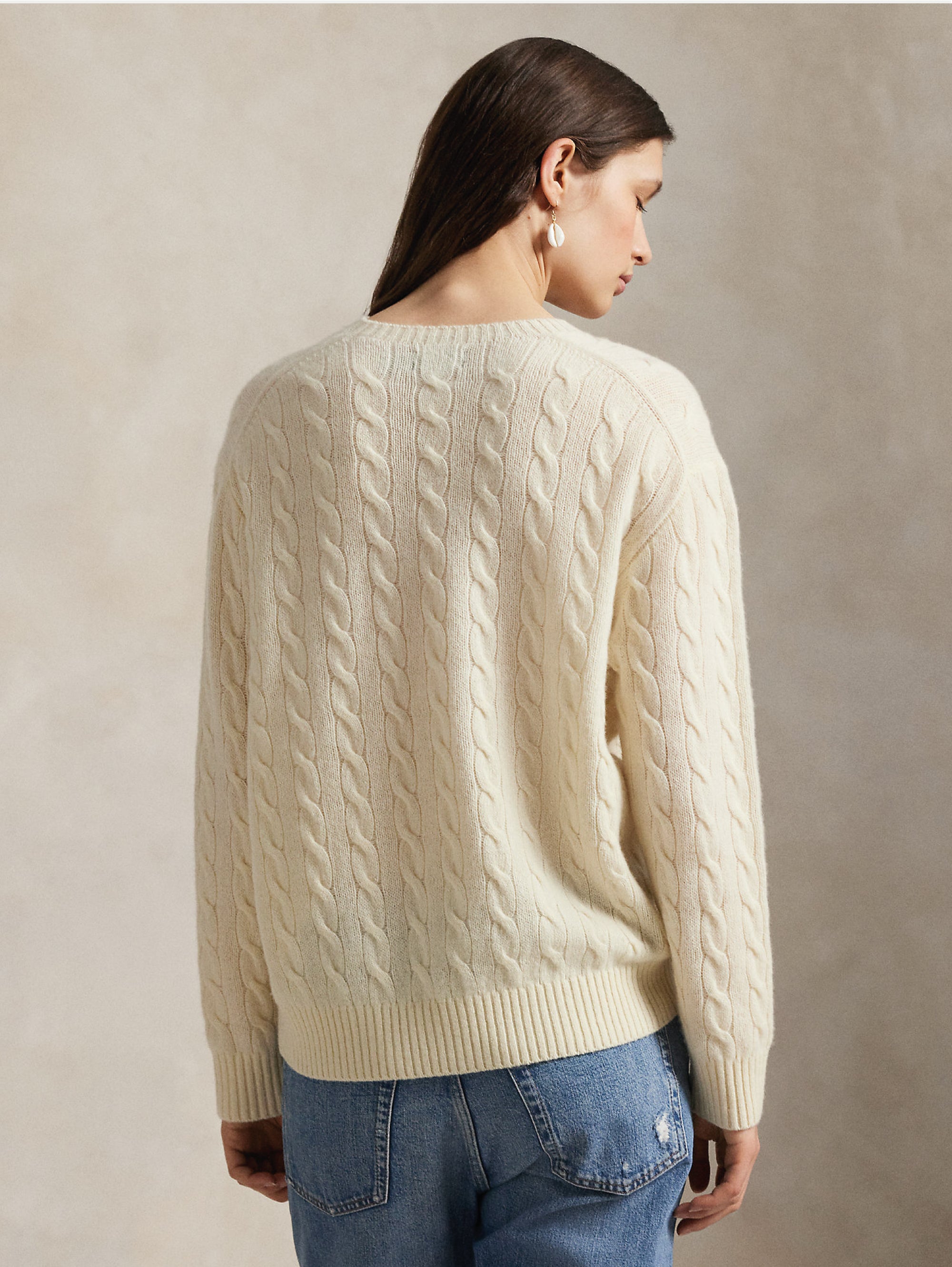Maglia girocollo a trecce in misto cashmere relaxed fit da donna di Polo Ralph Lauren.