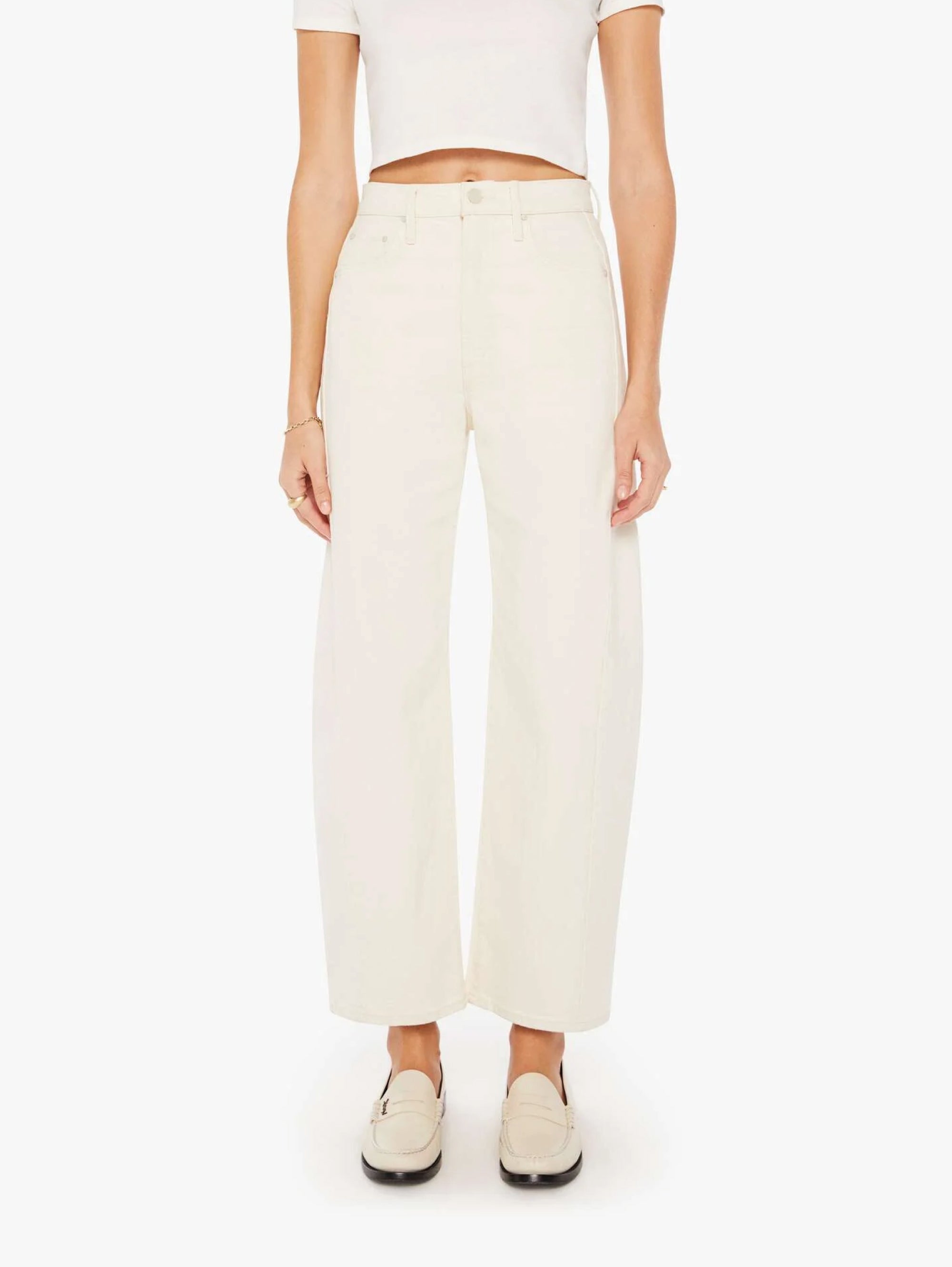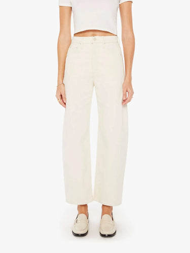 Jeans vita alta alla caviglia con gamba ampia e orlo effetto used modello The Half Pipe Hankle da donna di Mother Denim.
