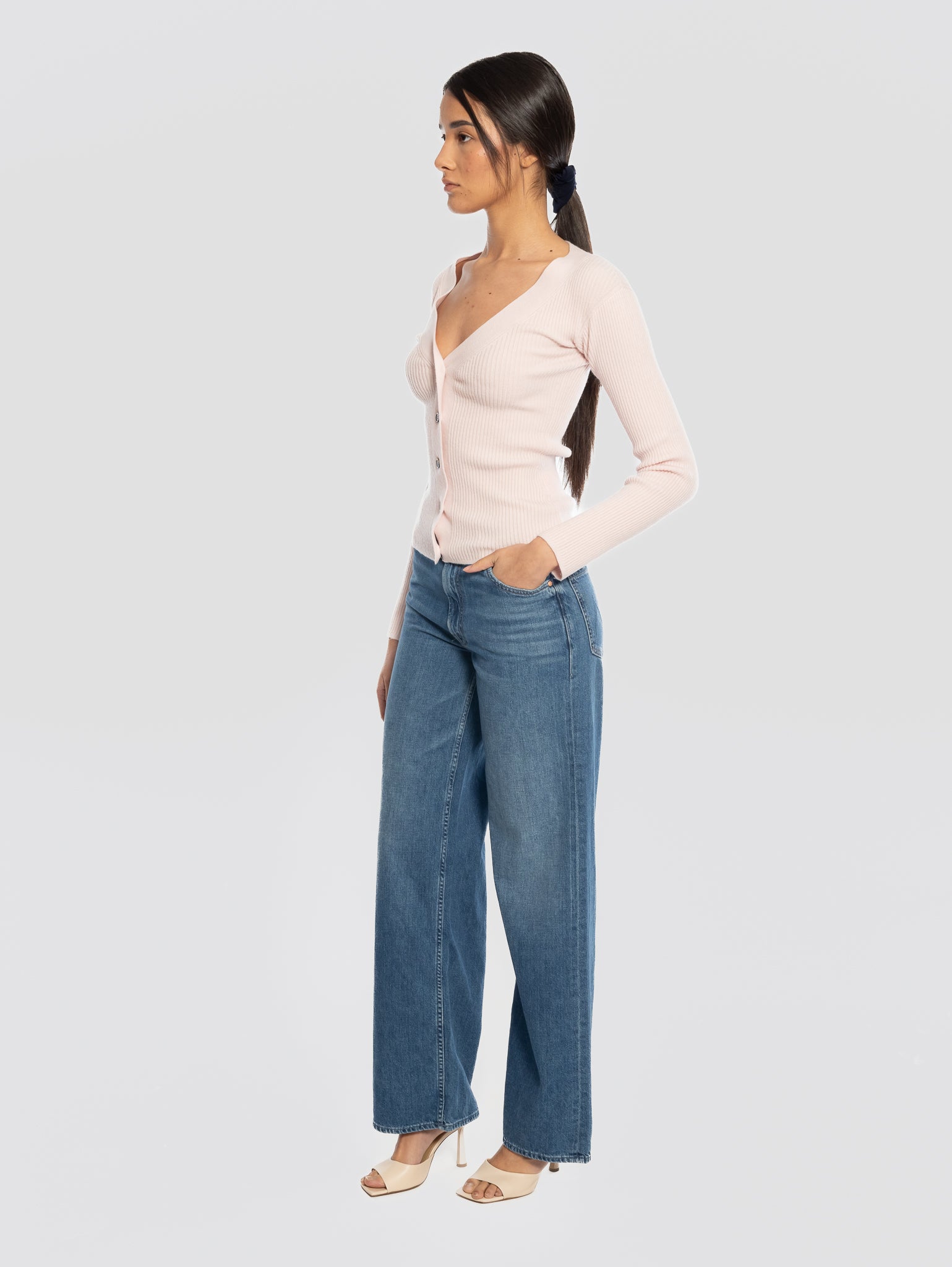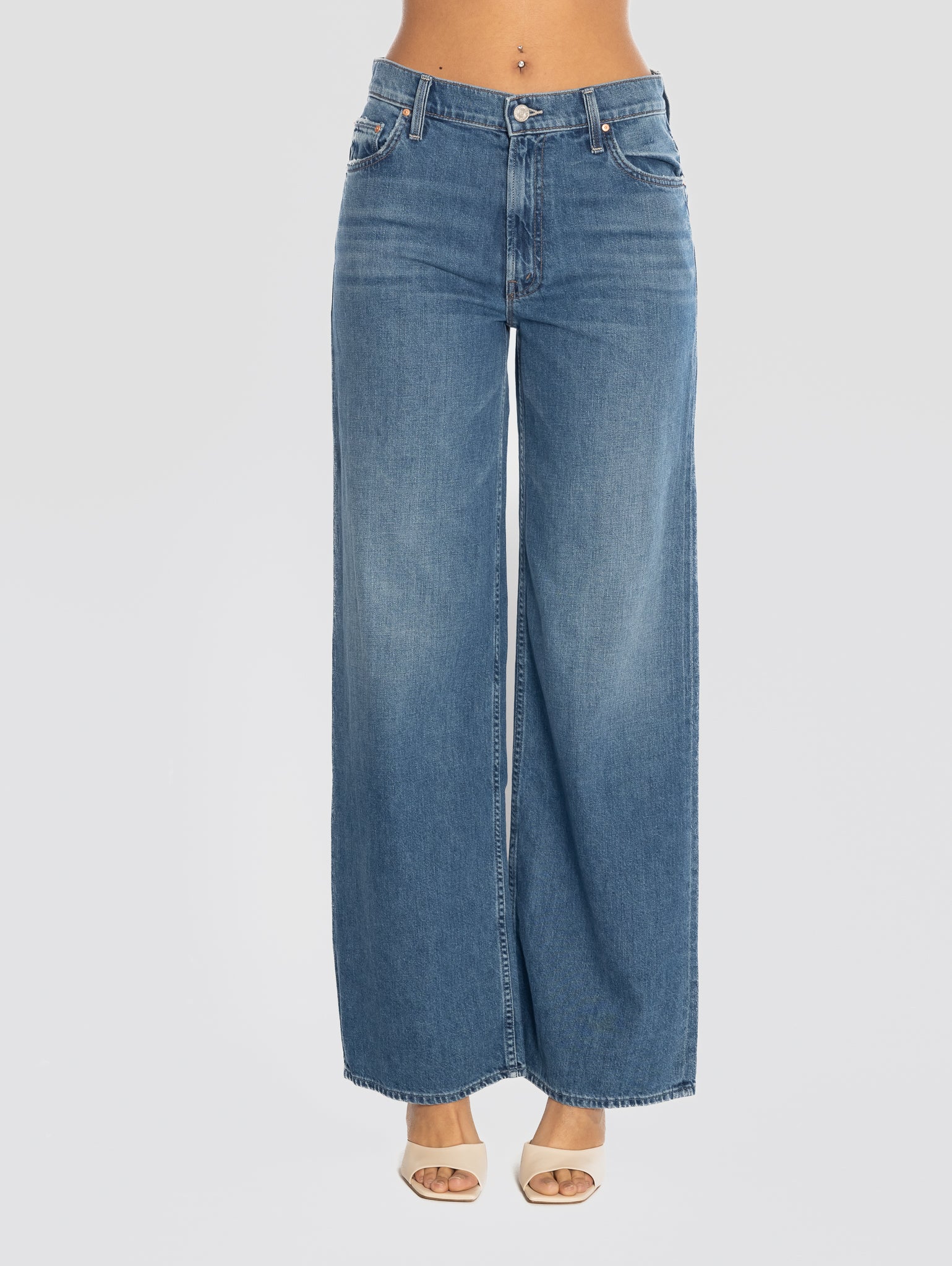 Jeans vita alta con gamba dritta realizzato in denim Superior modello The Rerun Zip Sneak da donna di Mother Denim.