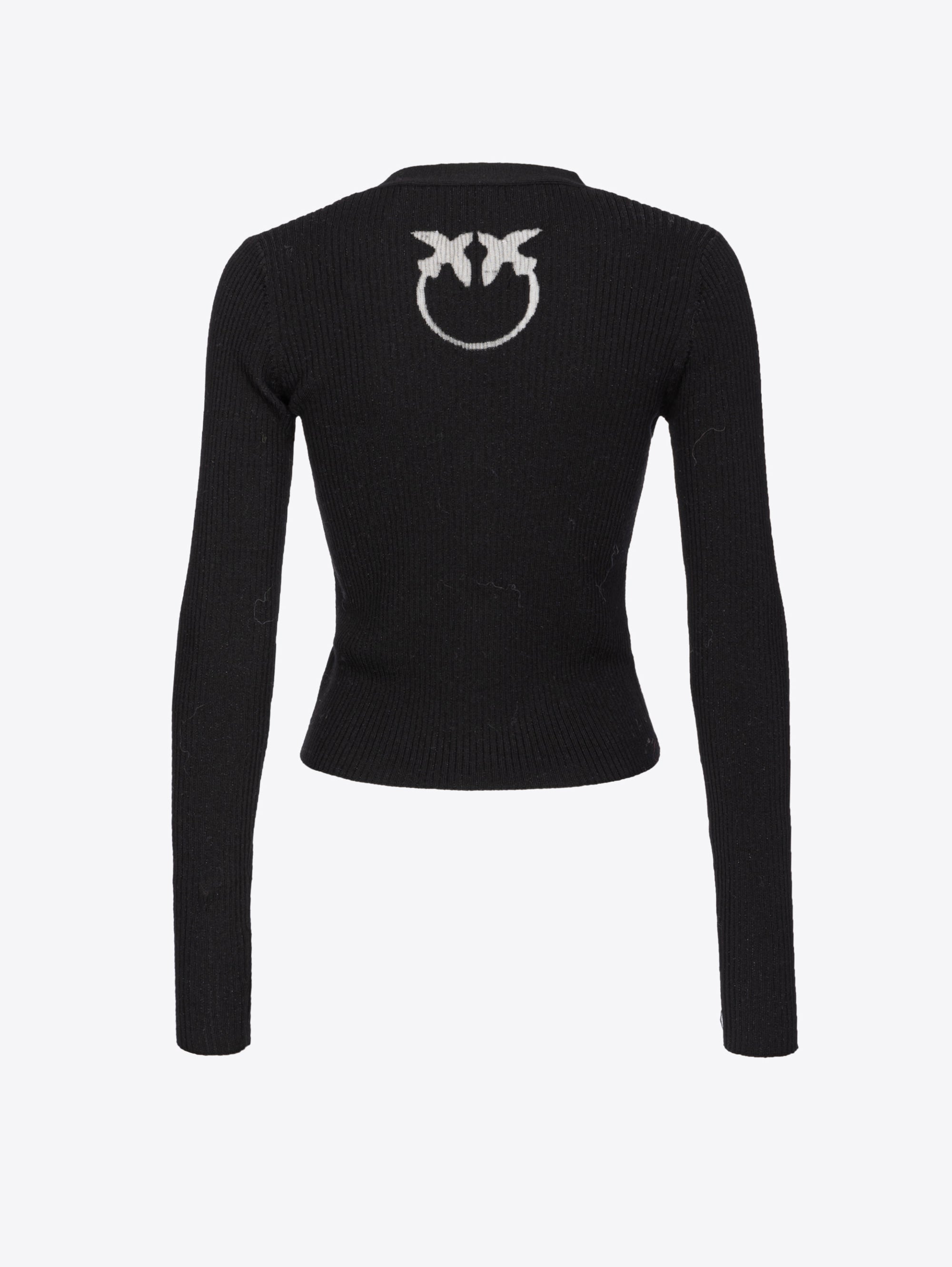 Cardigan corto con scollo a V e dettaglio di intarsio logo nel centro dietro da donna di Pinko.