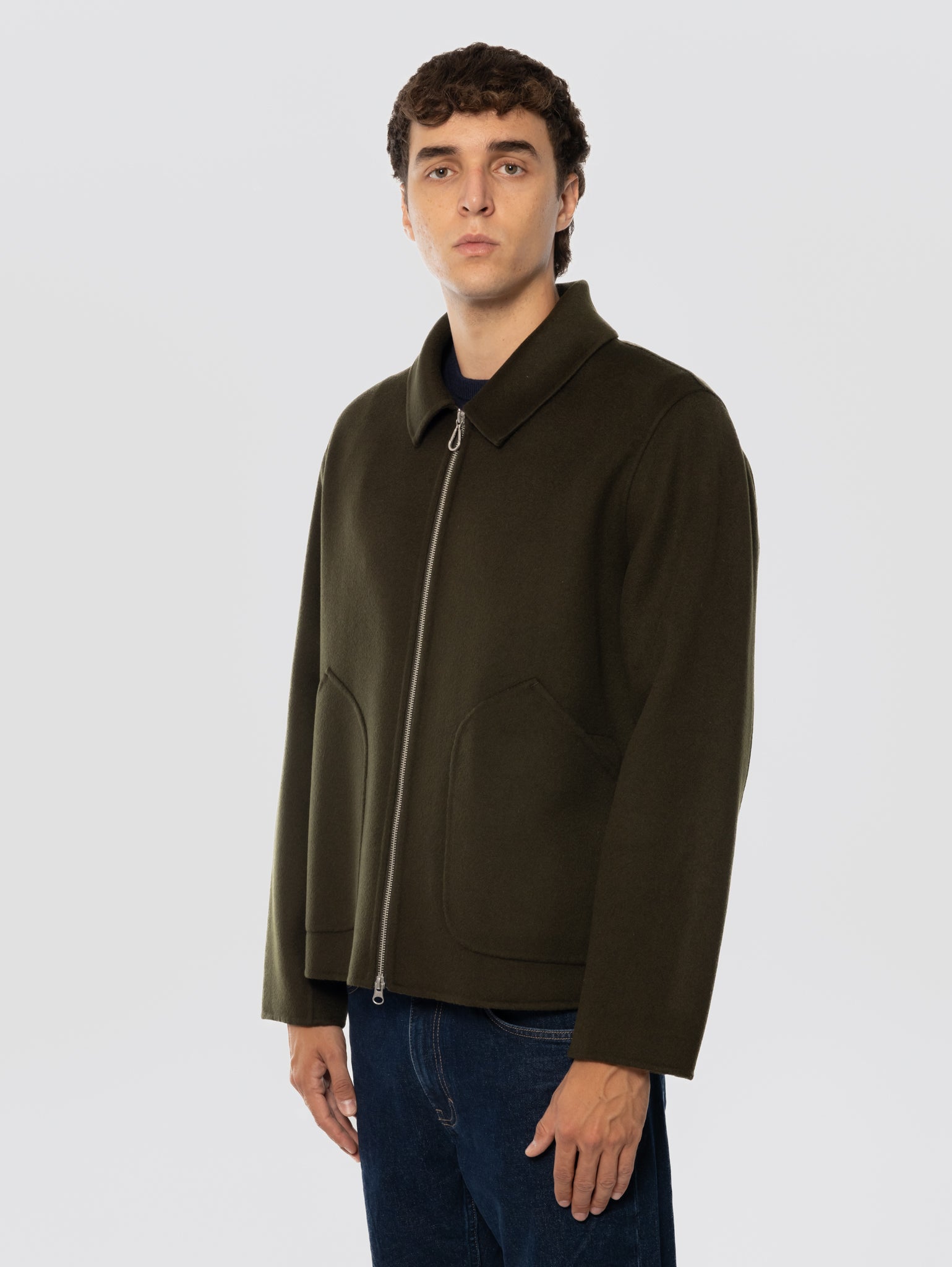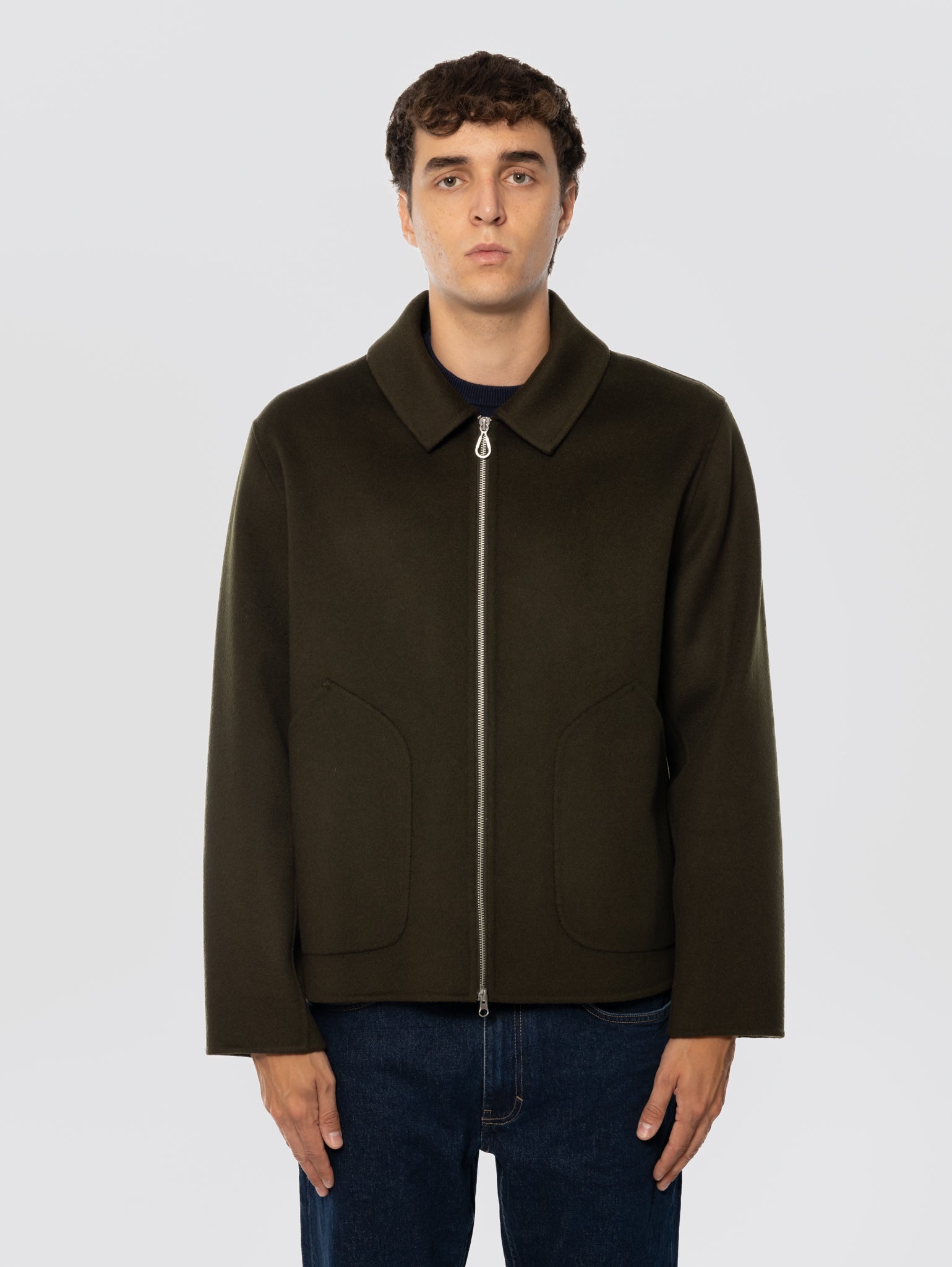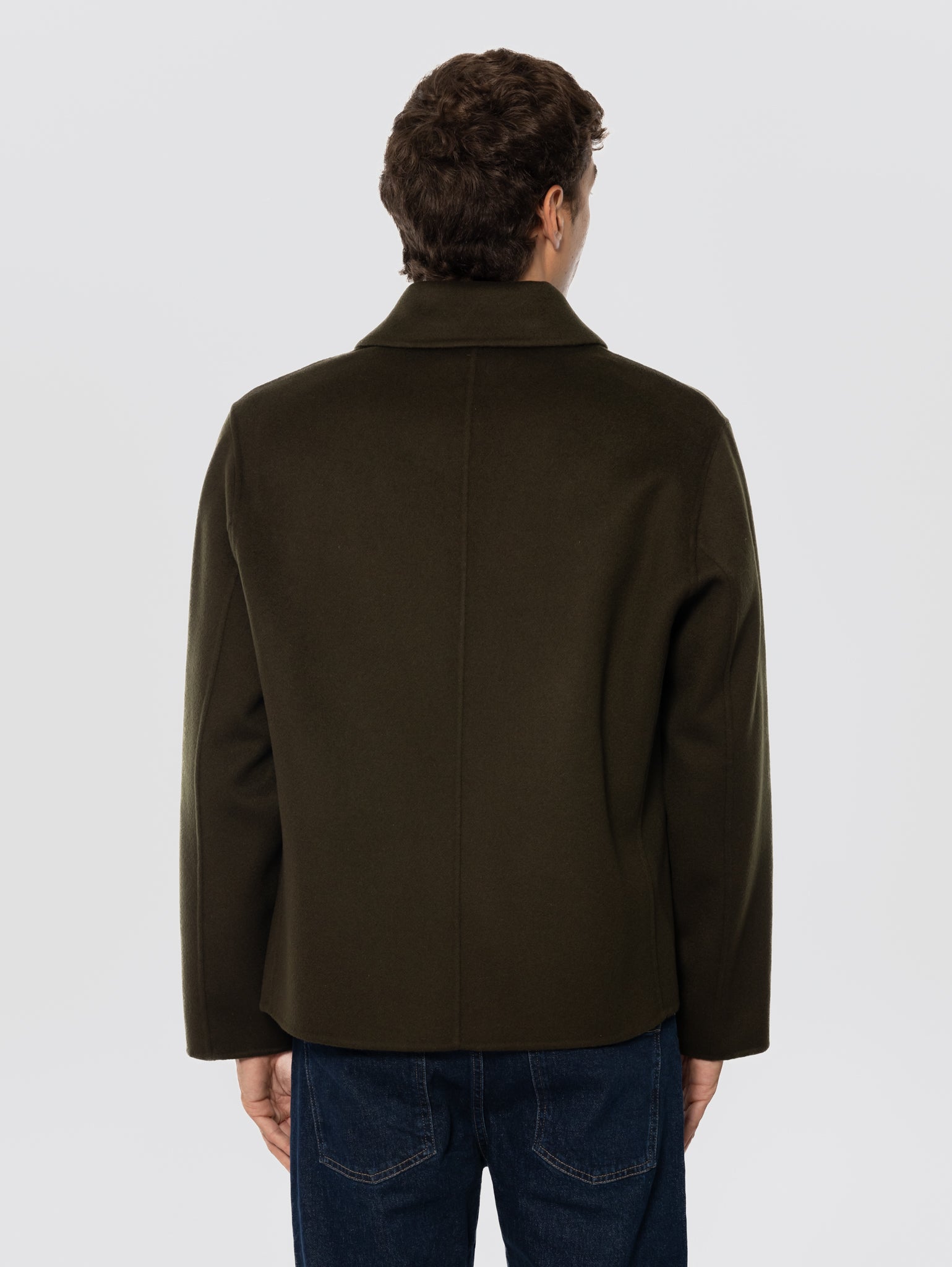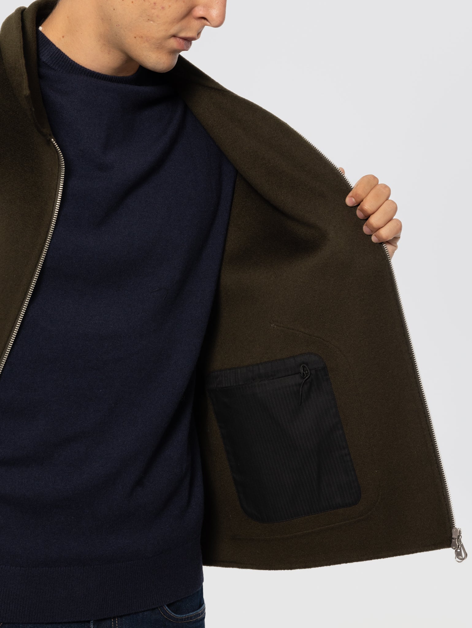 Giaccone in Doppio di Lana Chiuso da Zip Verde Muschio