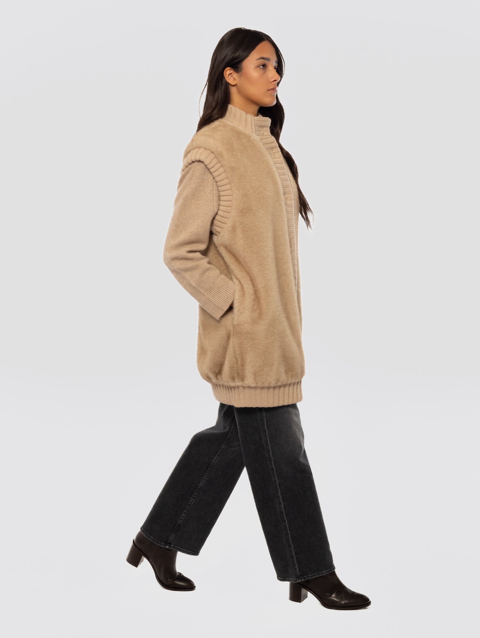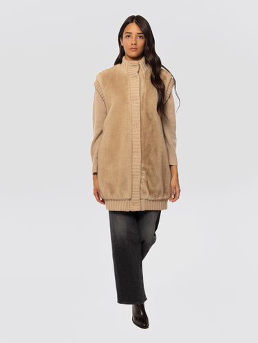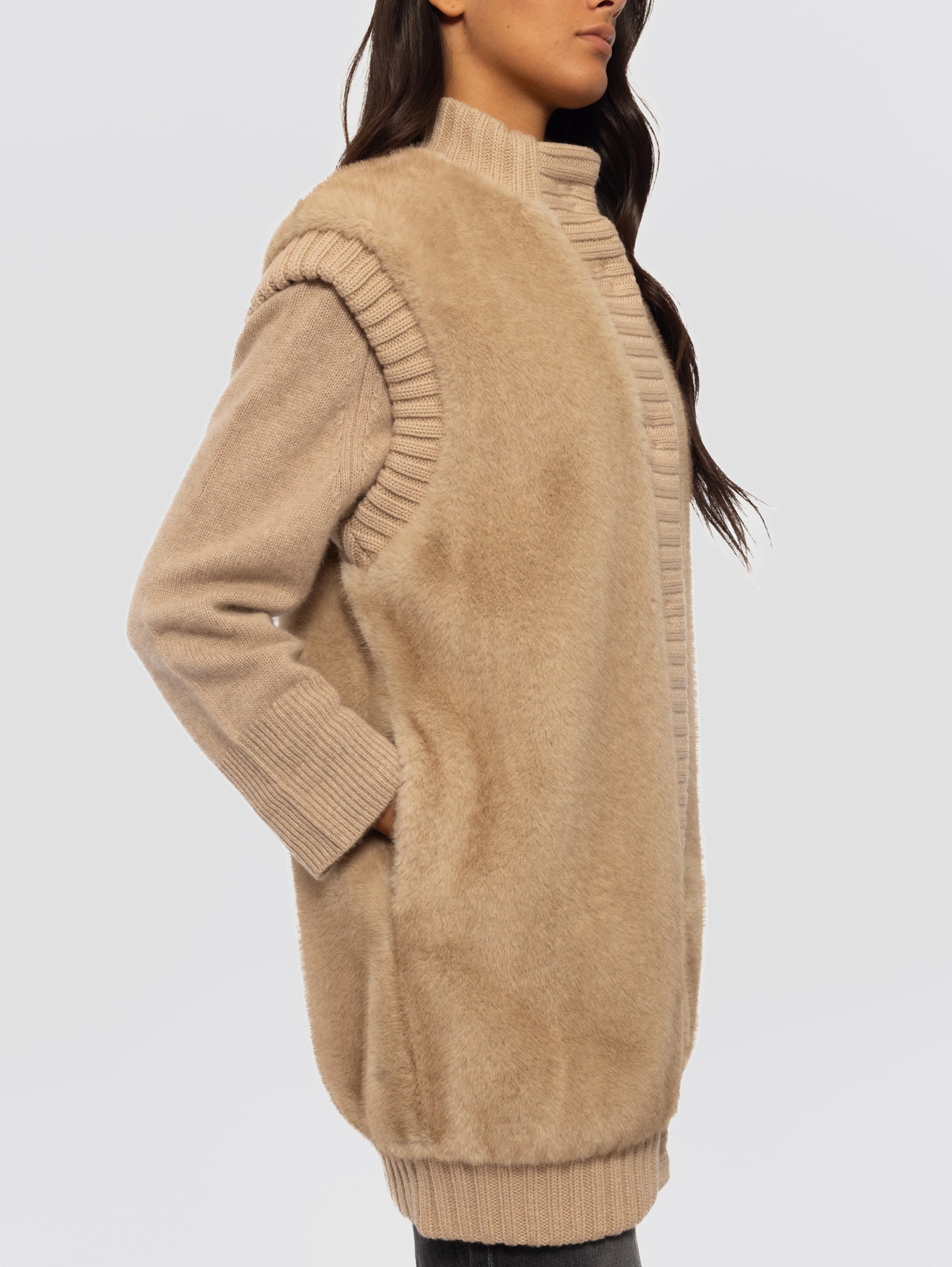 Gilet Lungo in Tessuto Aspen Effetto Pelliccia Beige