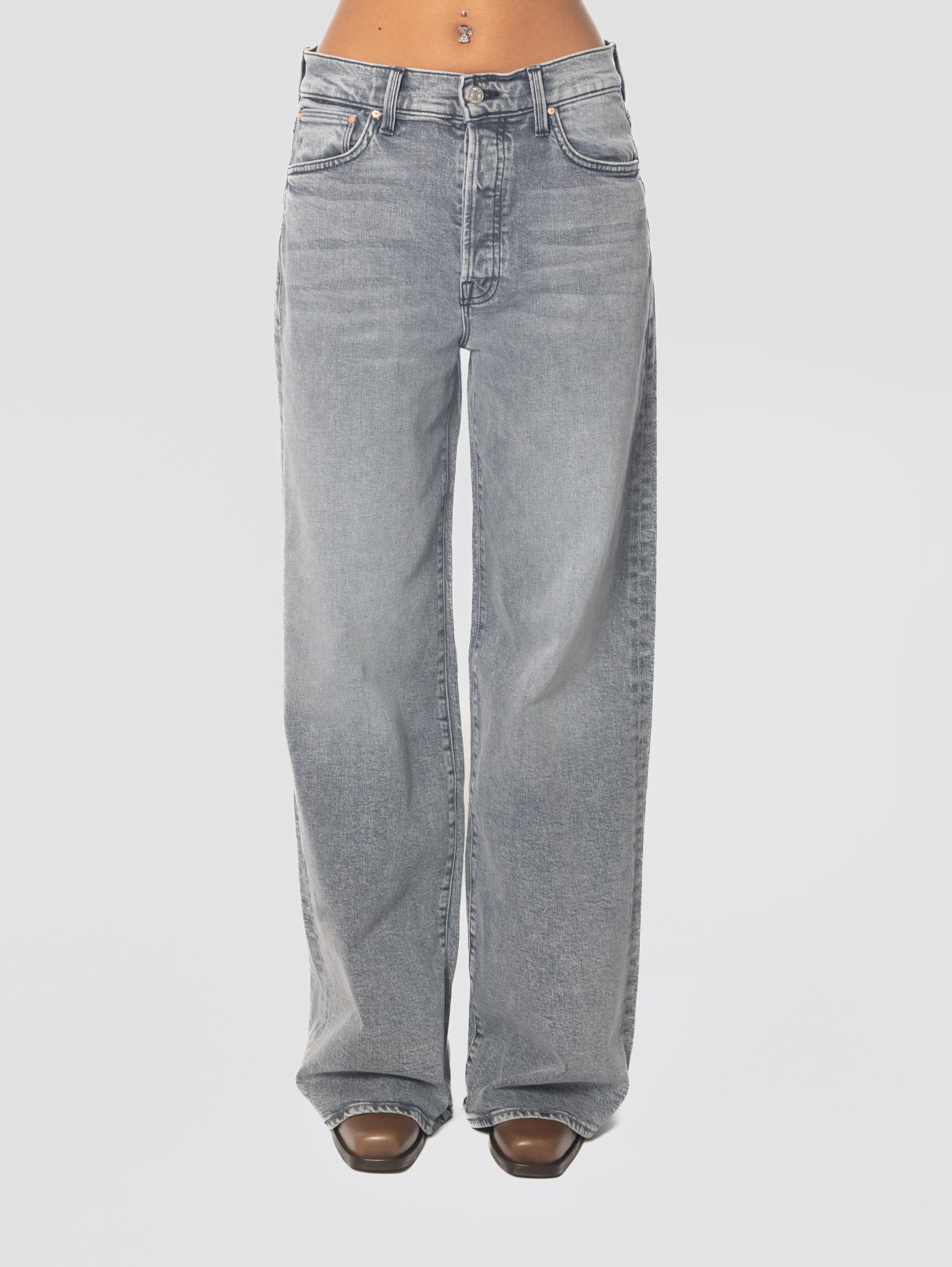 MOTHER-Jeans Gamba a Palazzo e Vita Alta Grigio-TRYME Shop