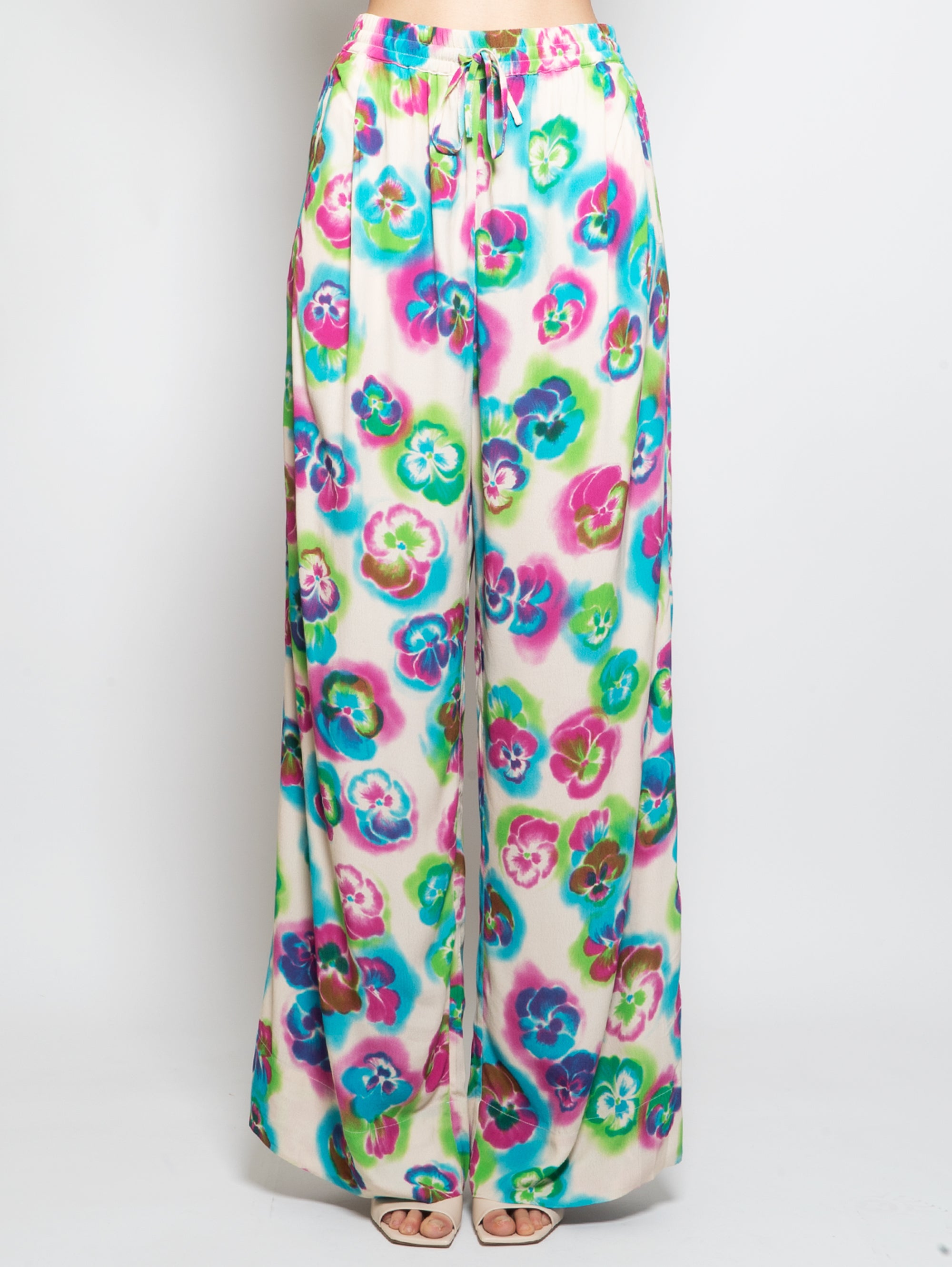 Pantaloni in viscosa con stampa floreale ad acquerello da donna di Essentiel Antwerp.