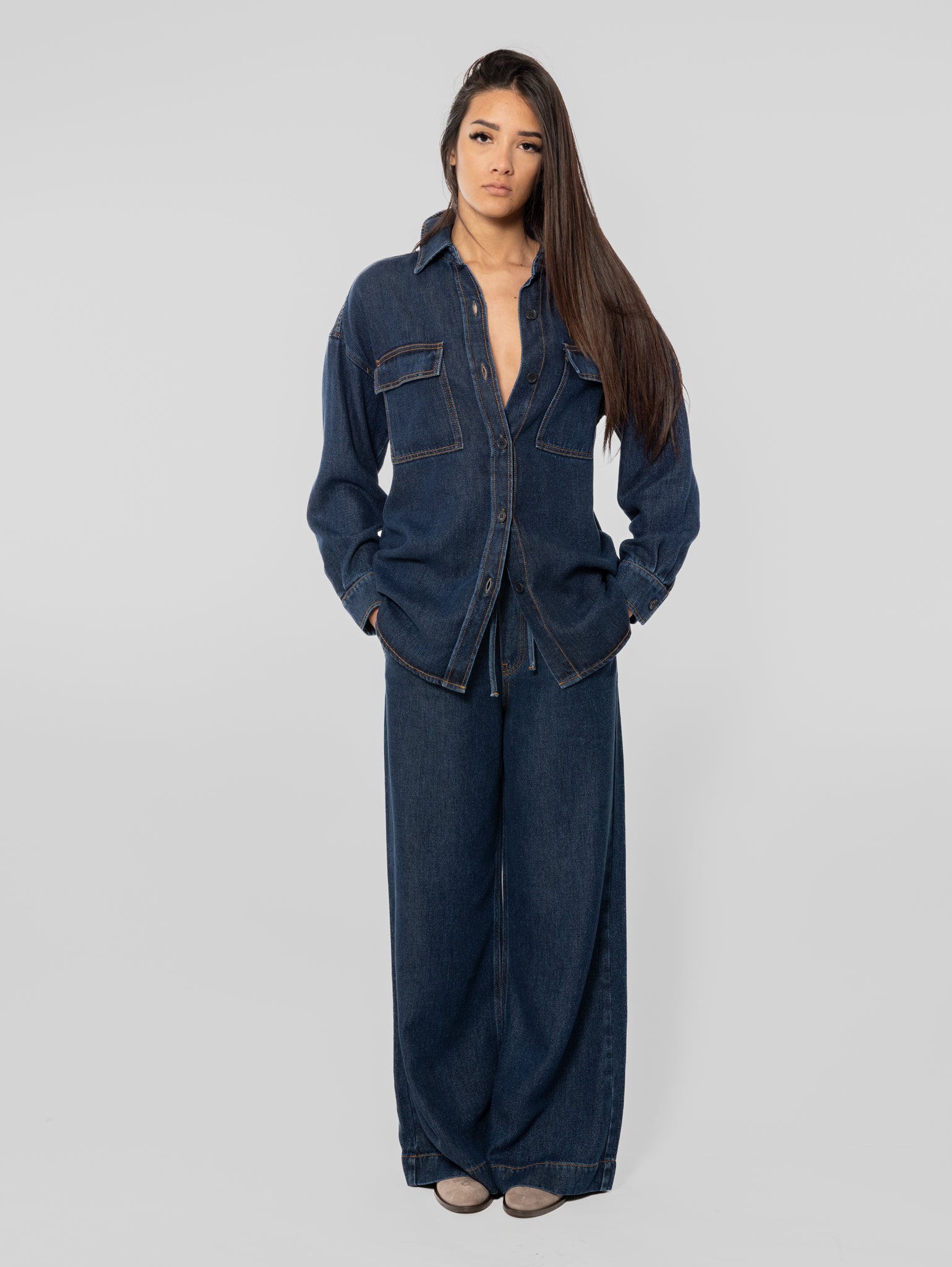 Pantaloni in denim con coulisse e silhouette ampia e rilassata modello D232441 JOY da donna di P.A.R.OS.H.