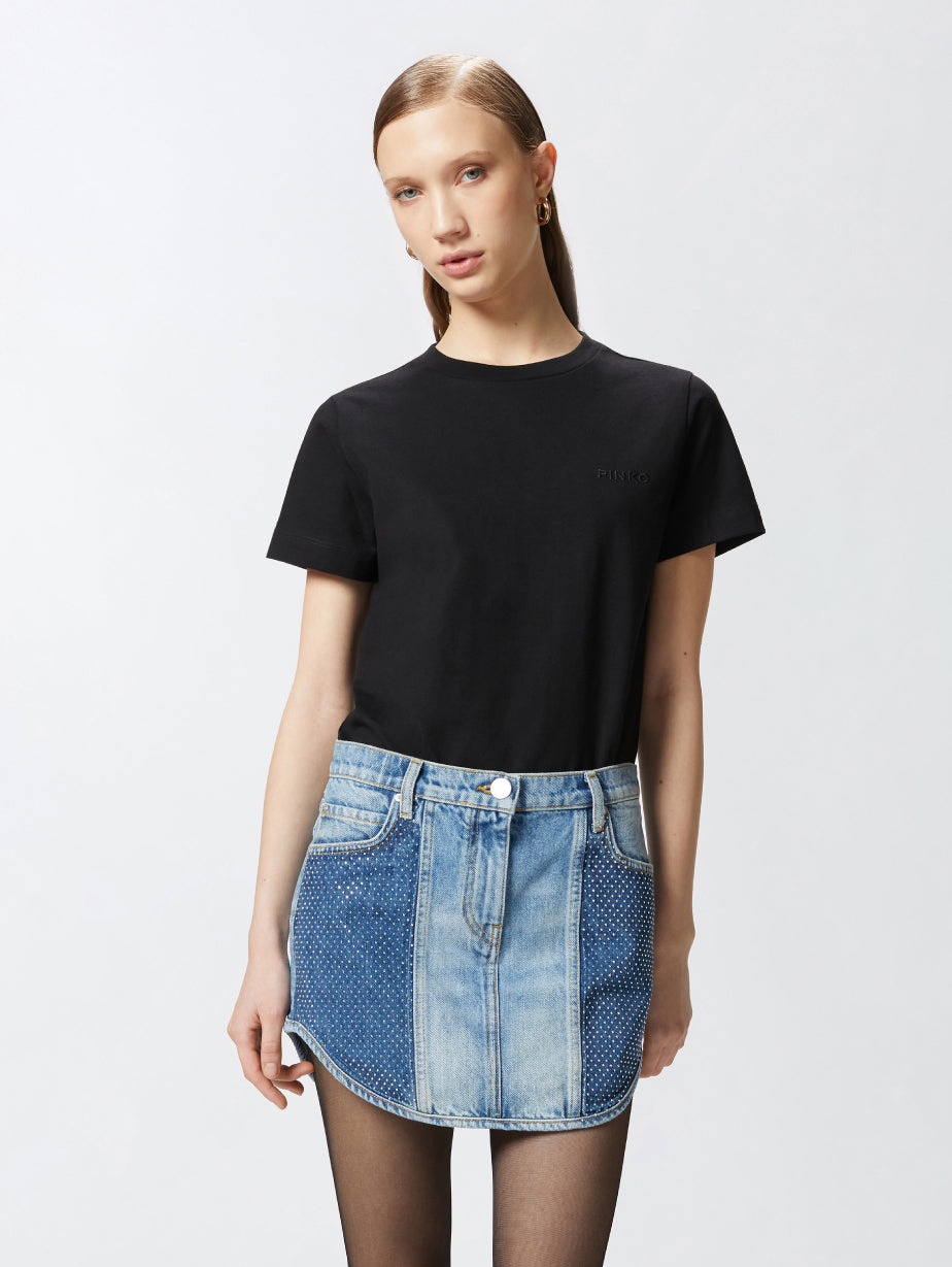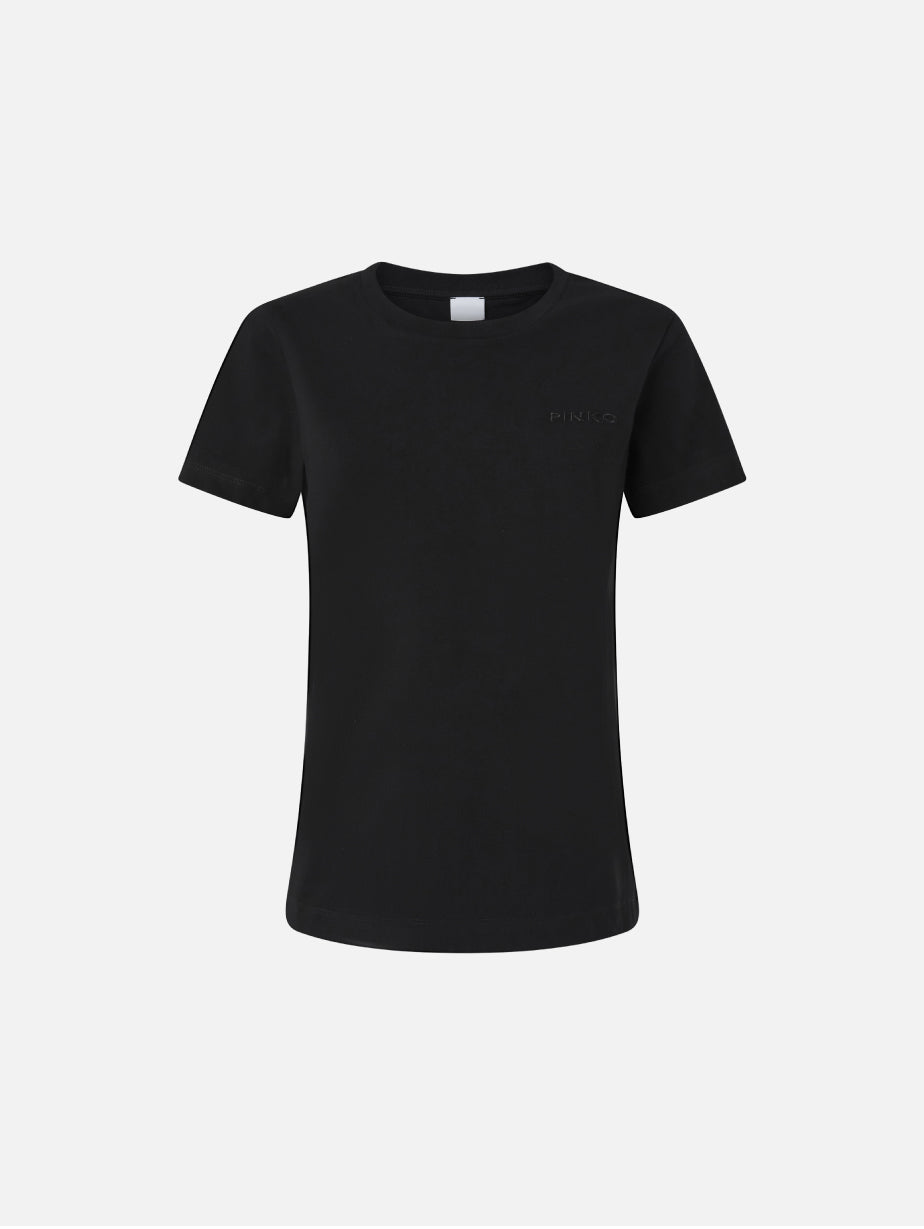 T-shirt maniche corte in jersey di cotone con logo ricamato da donna di Pinko.