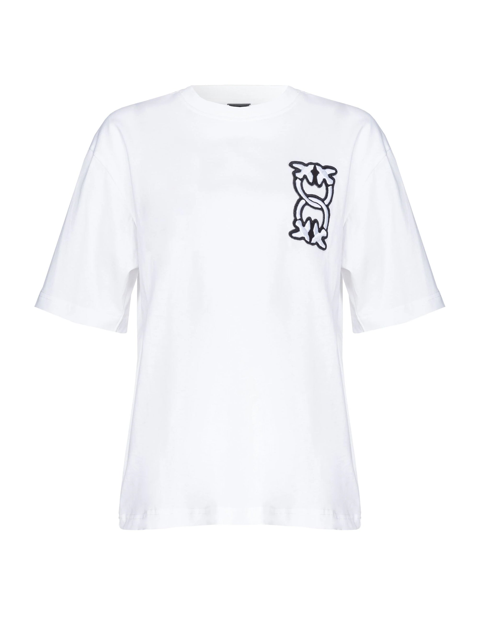 T-shirt girocollo con ricamo sul petto modello Tunisia da donna di Pinko.