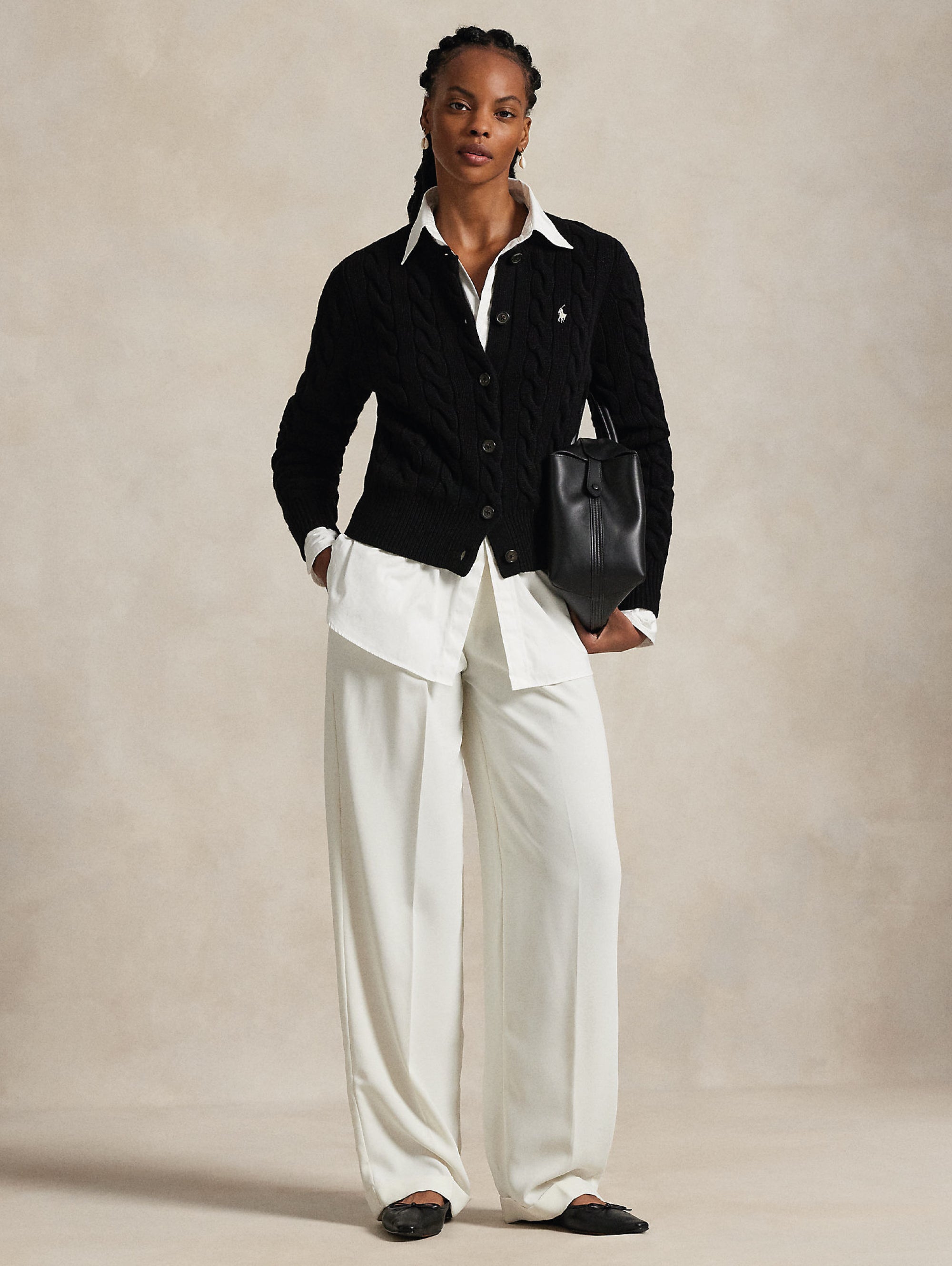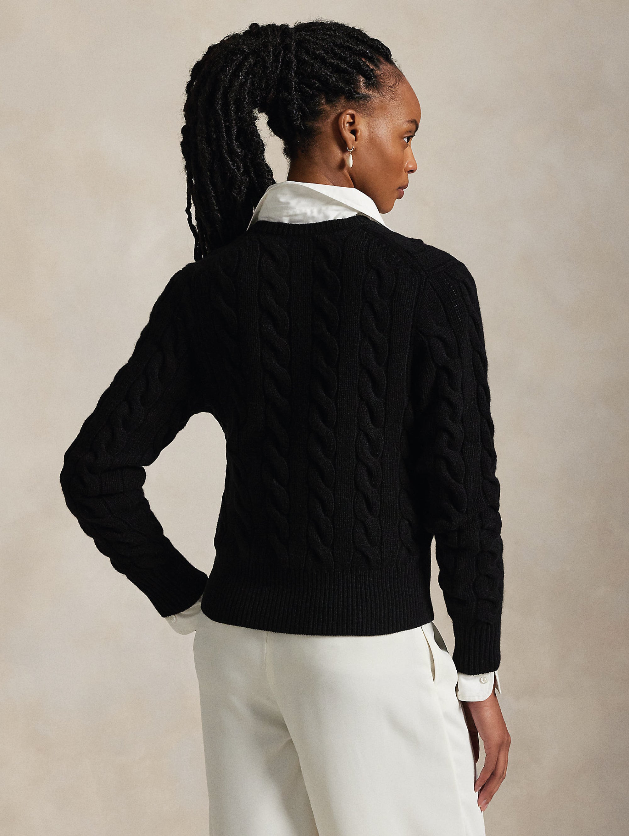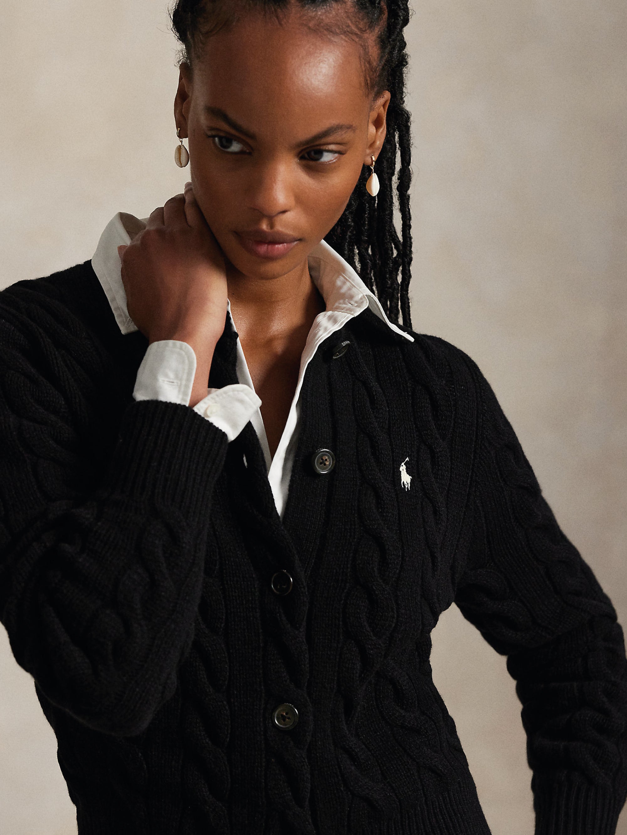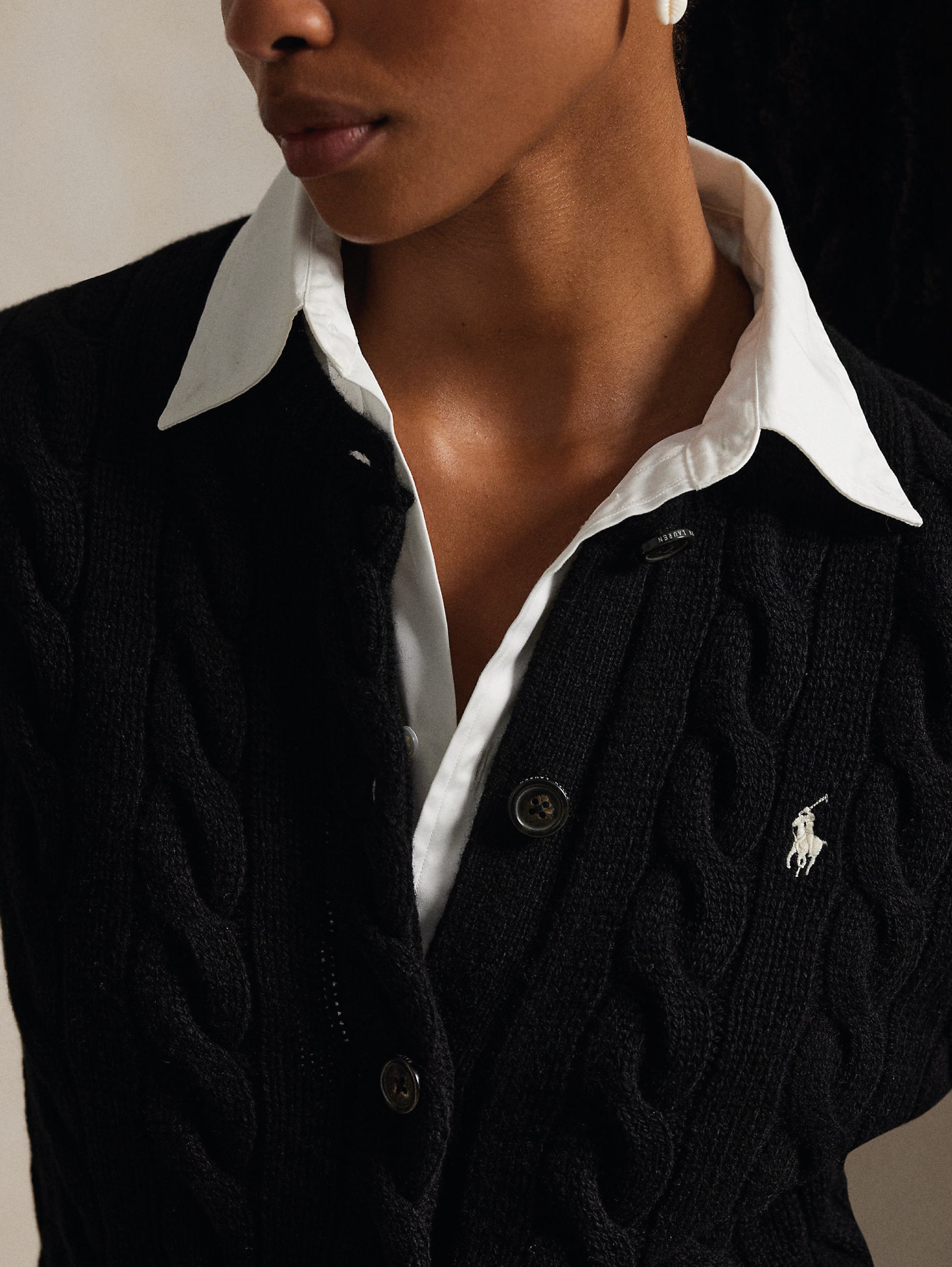 Cardigan lavorato a trecce in misto lana e cashmere da donna di Polo Ralph Lauren.