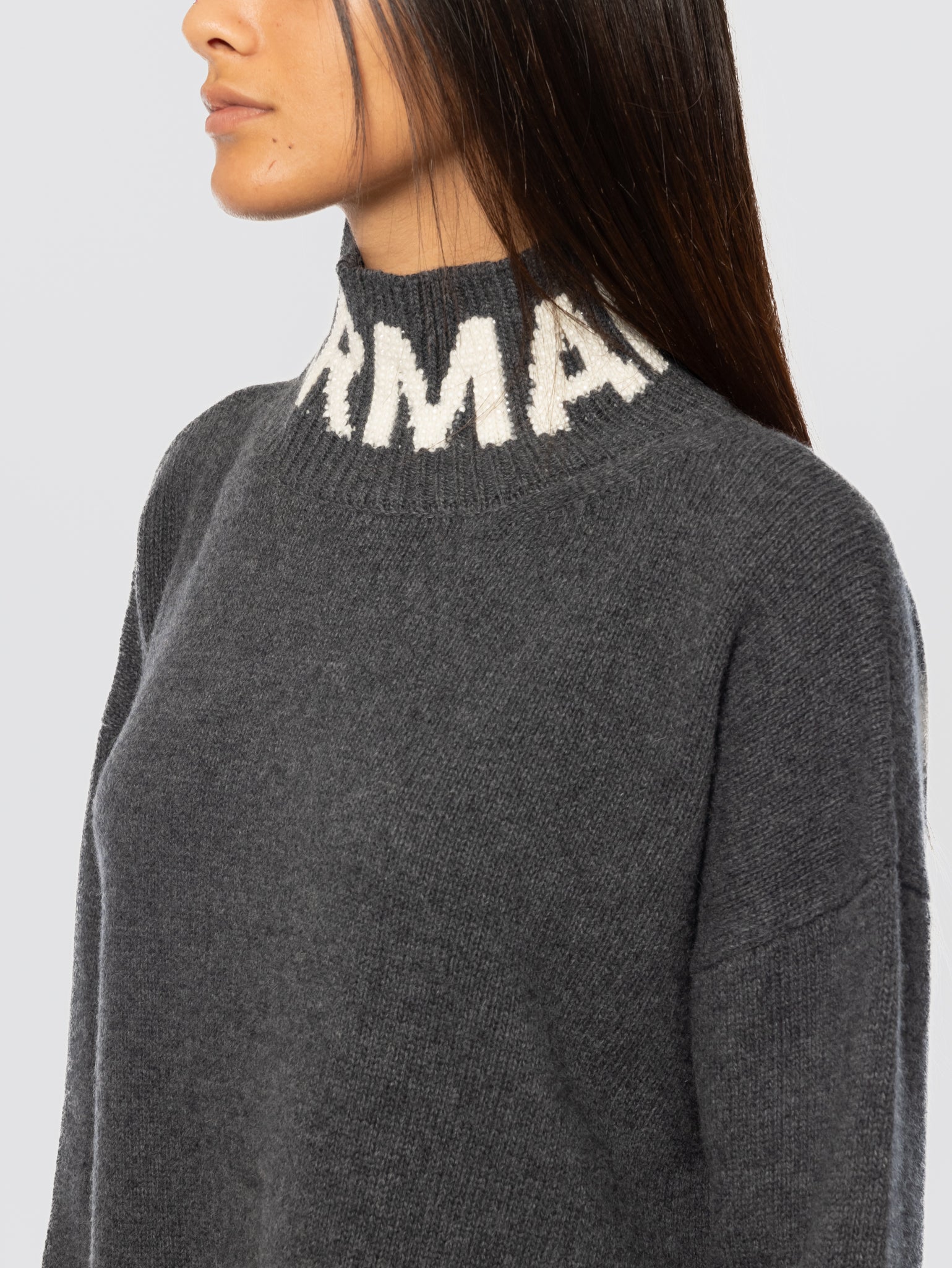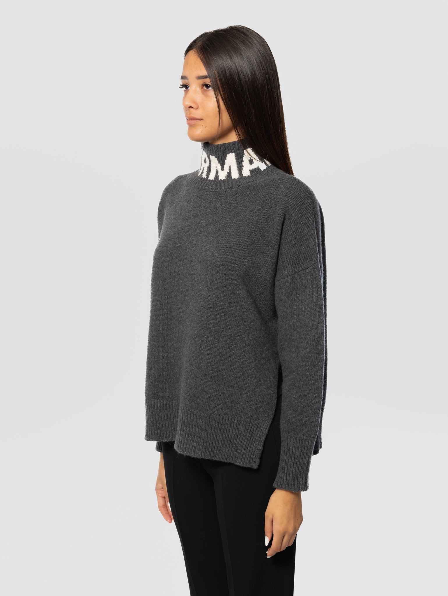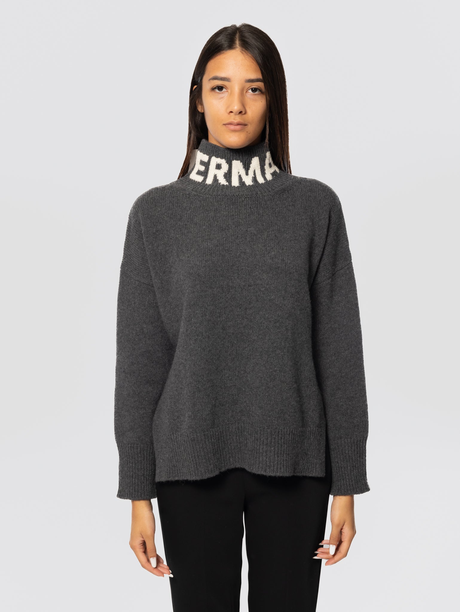 - Maglia con collo alto ornato con lavorazione Jaquard e scritta "ERMANNO"