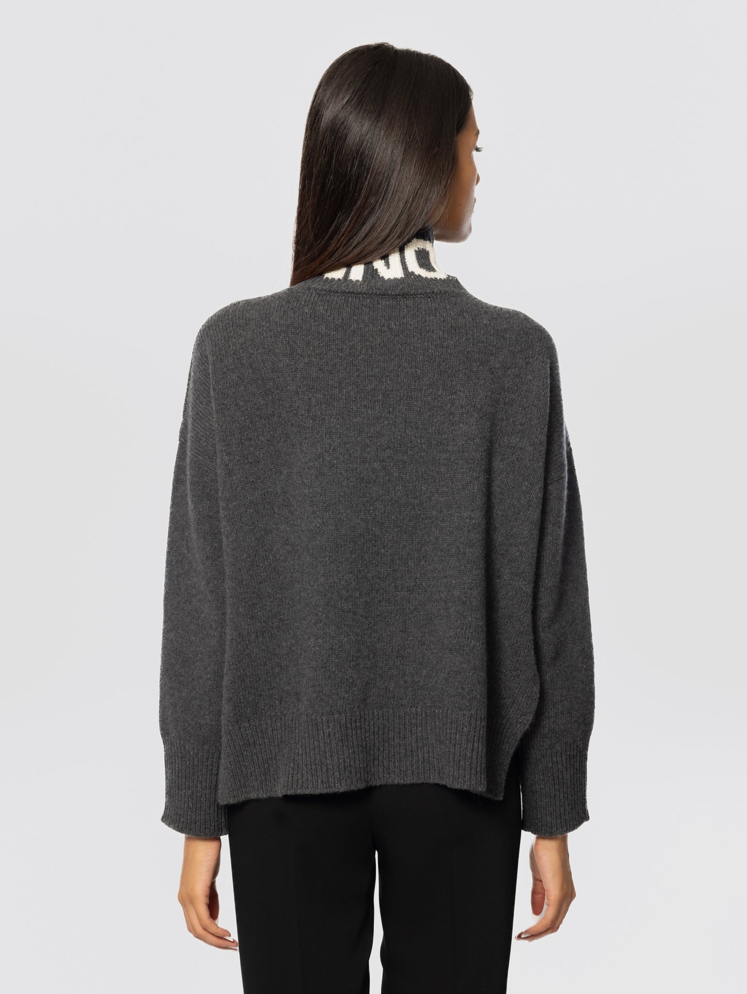 - Cod. D47EM027EO1 - MF654 - MAGLIA COLLO ALTO - ANTRACITE/ECRU
