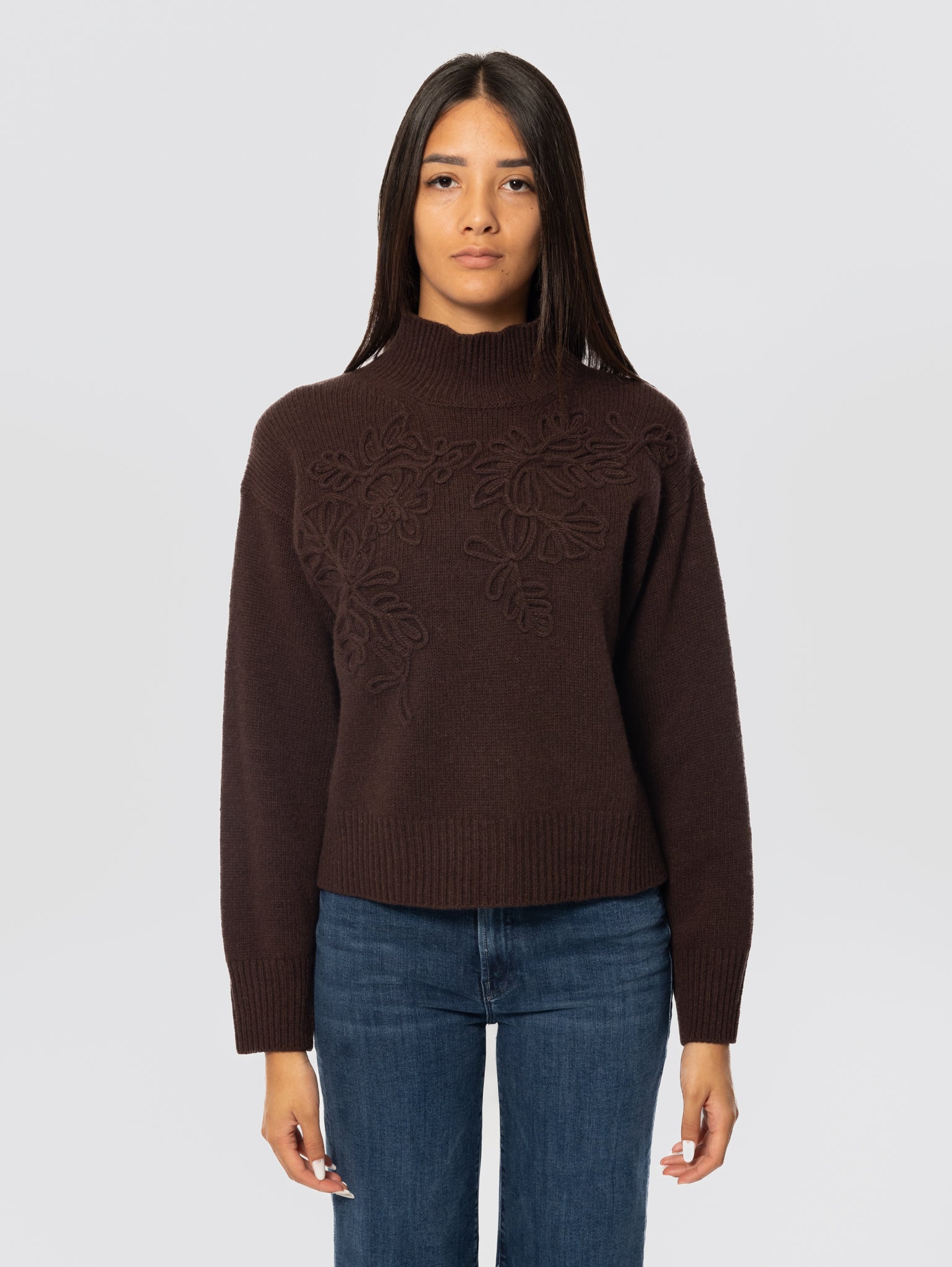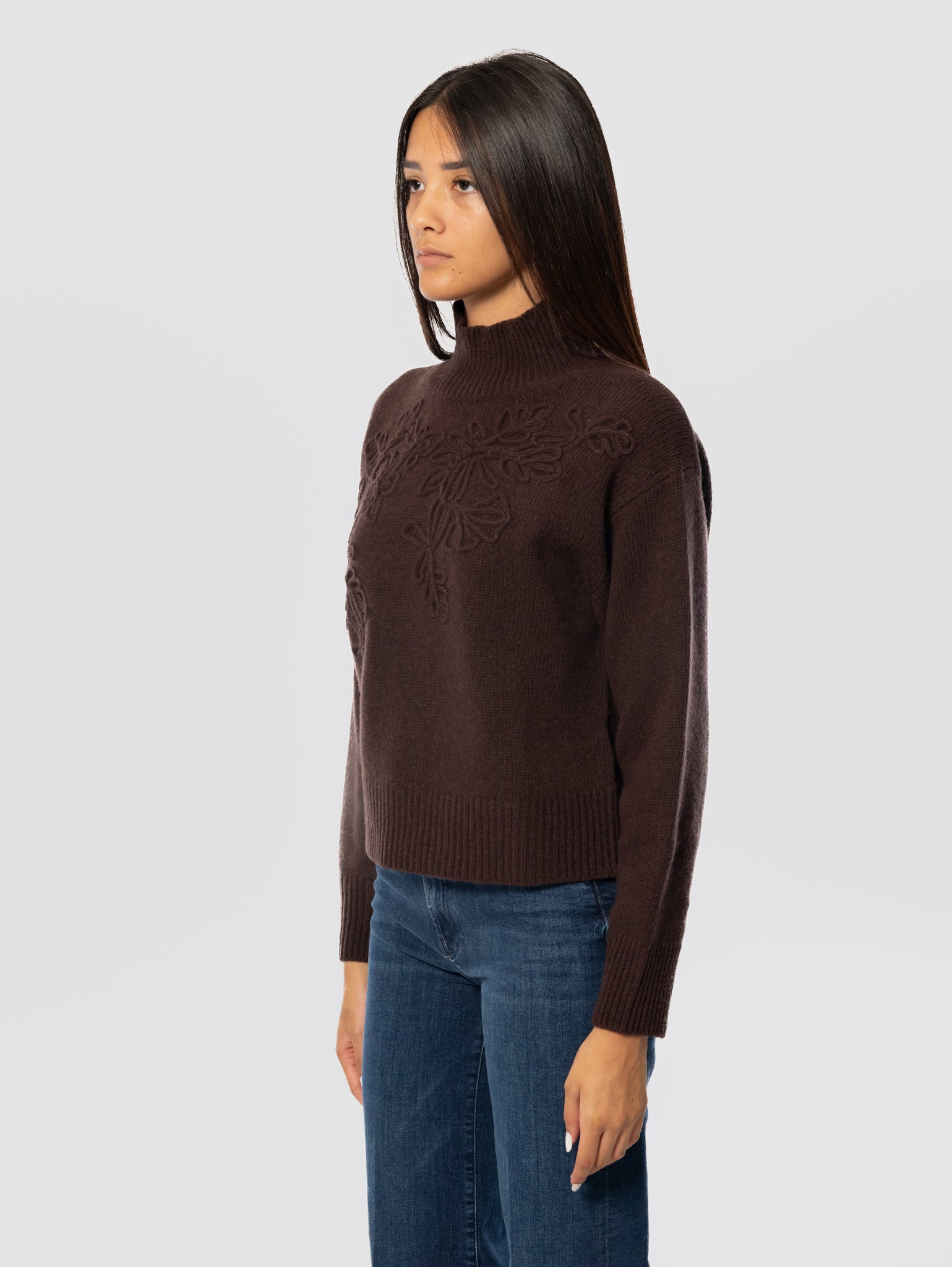 Maglione collo alto con ricami in lana da donna di Ermanno Firenze.