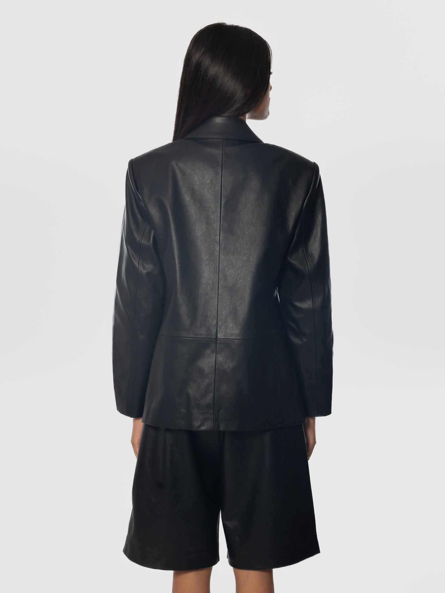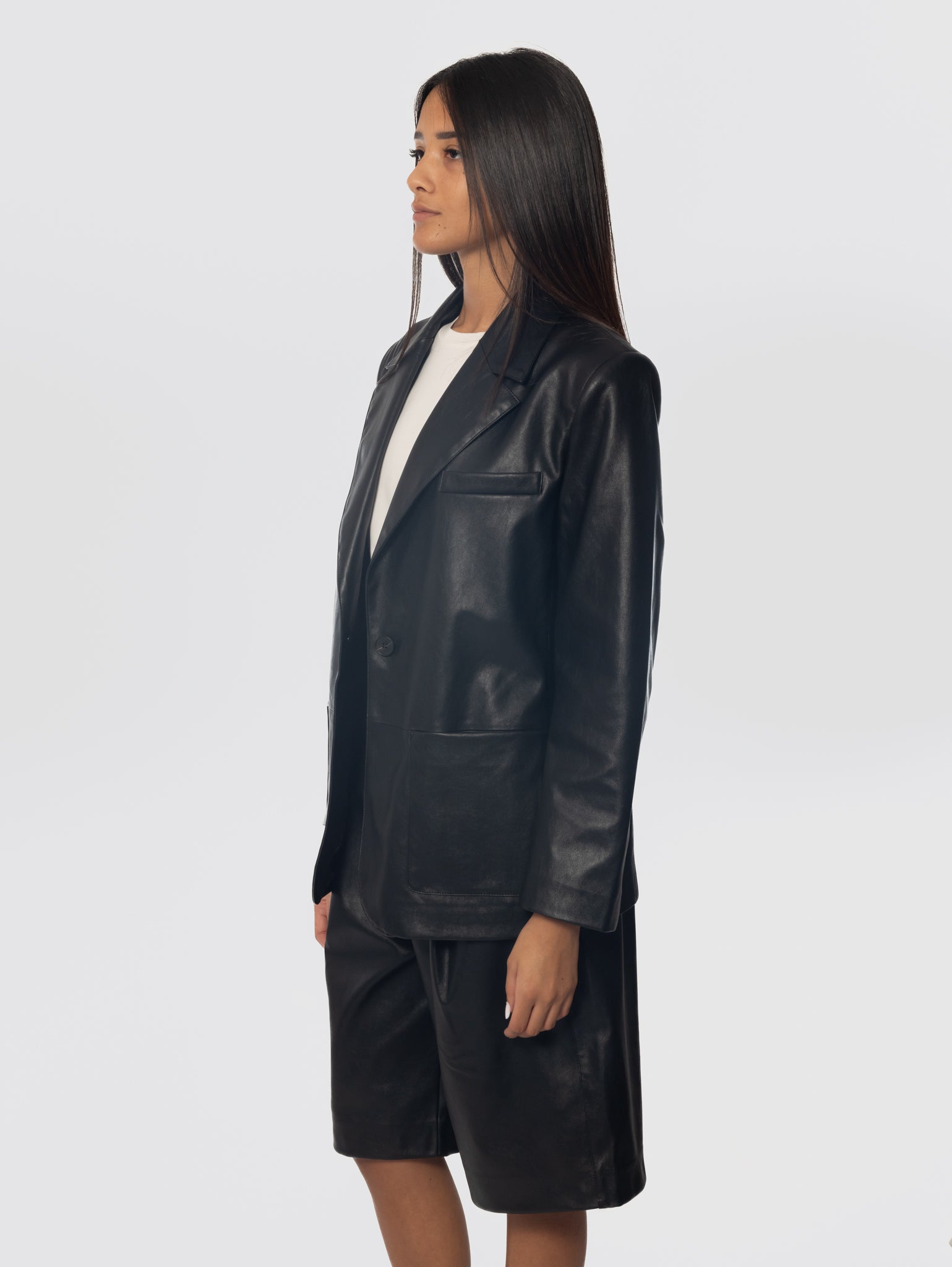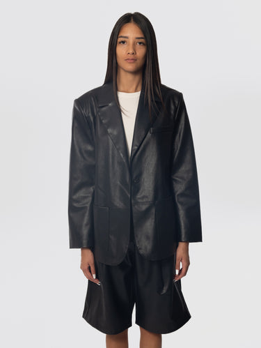 - Cod. IDREY - BL34 - IDREY FAUX LEATHER BLAZER - BLACK