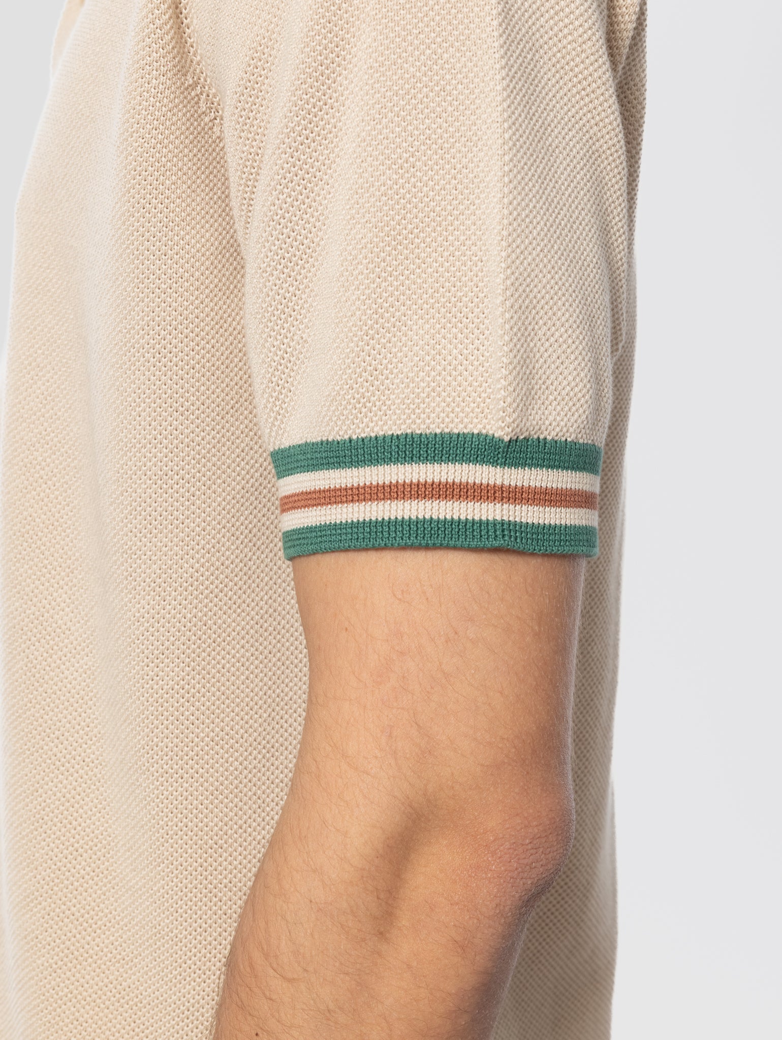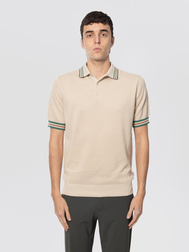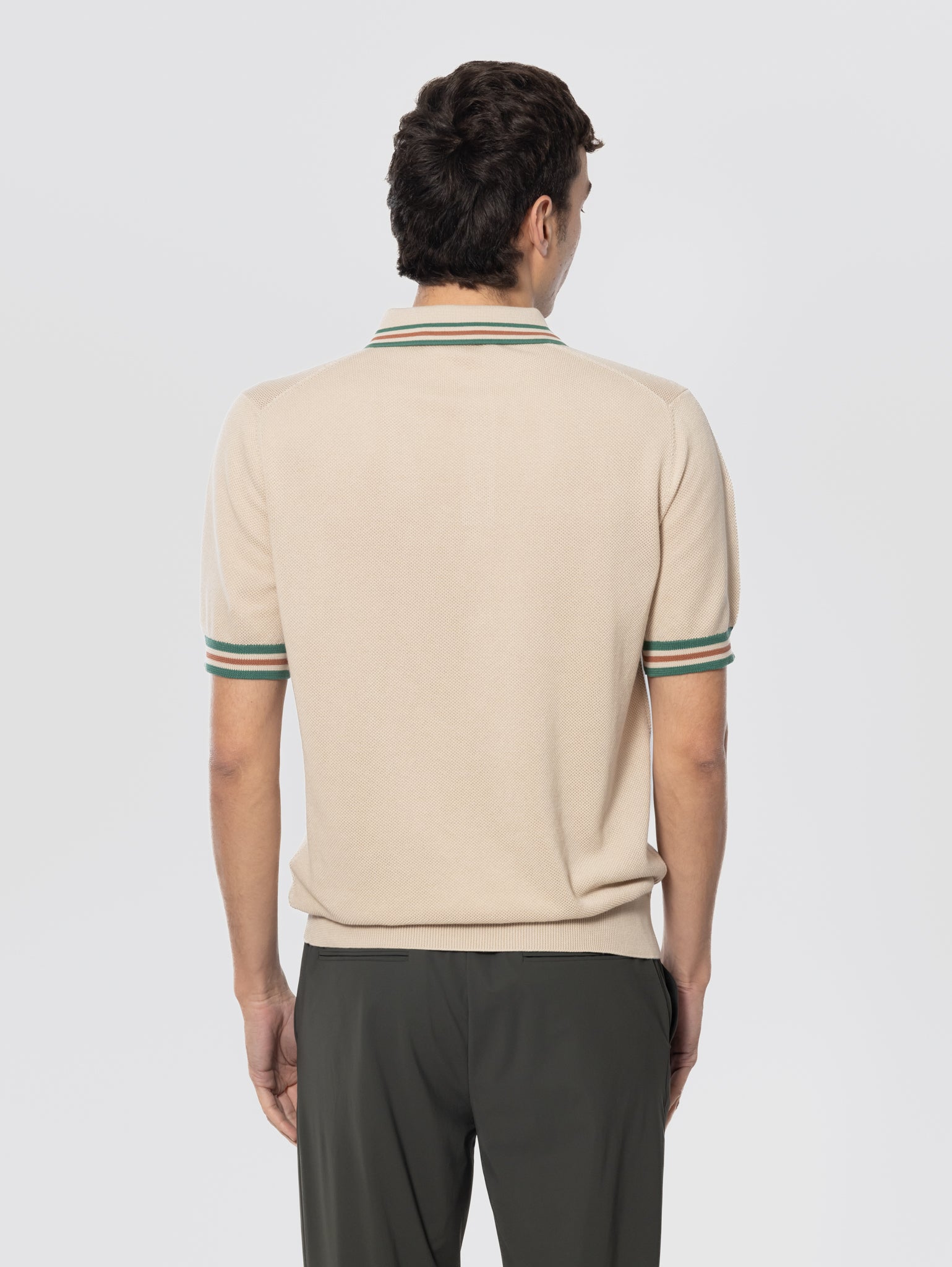 Polo in Piquet con Dettagli a Righe a Contrasto Beige
