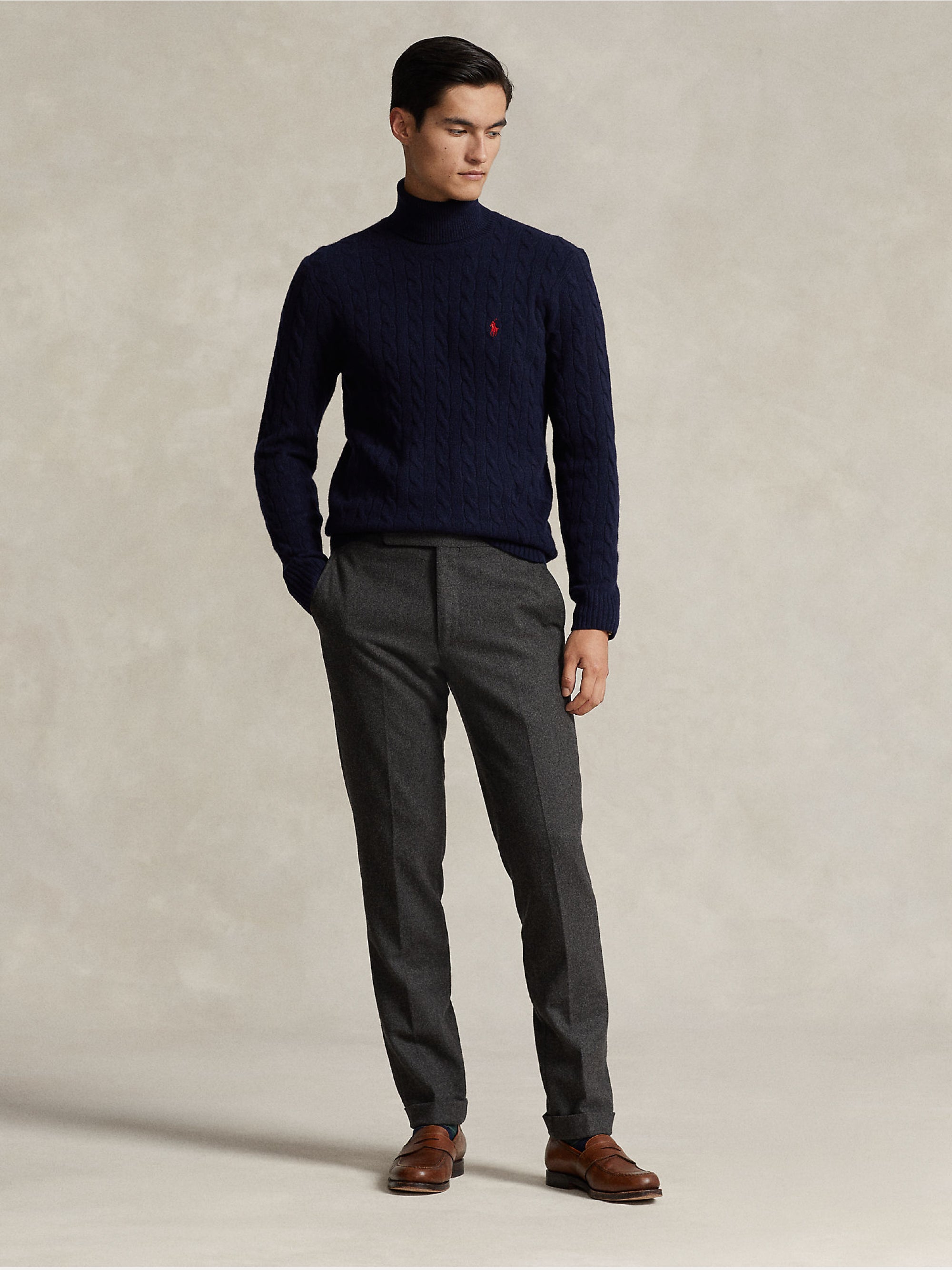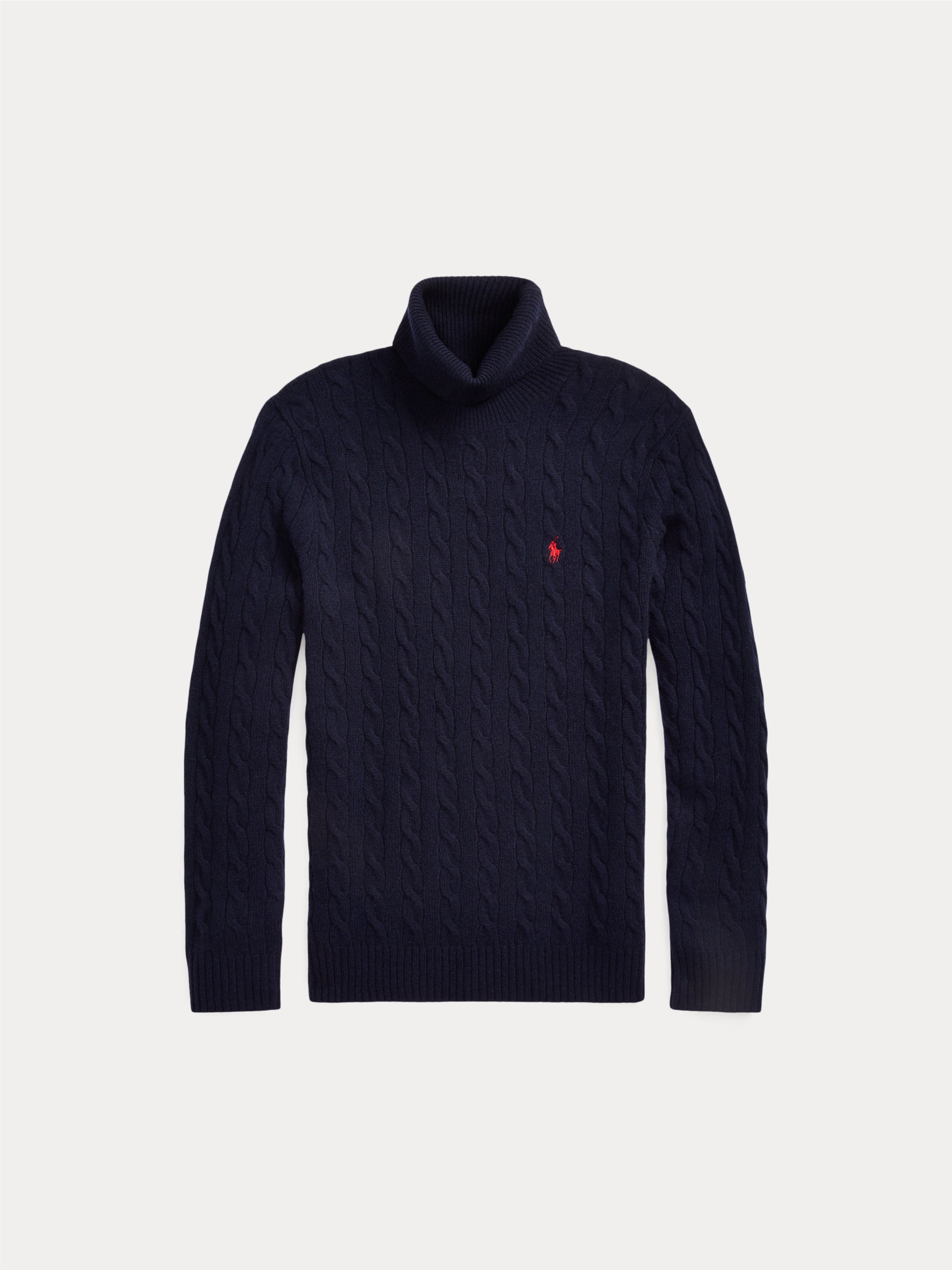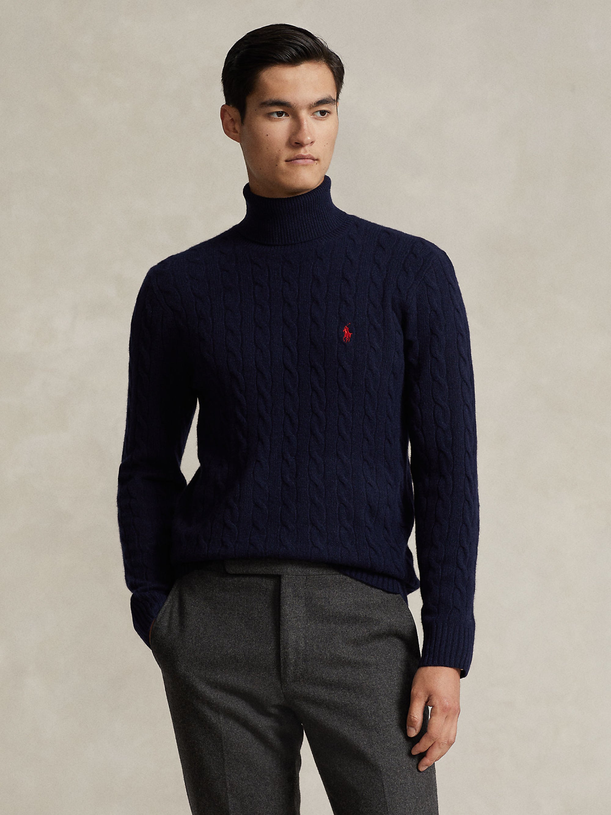 Maglia a trecce collo alto regular fit in lana e cashmere da uomo di Polo Ralph Lauren.