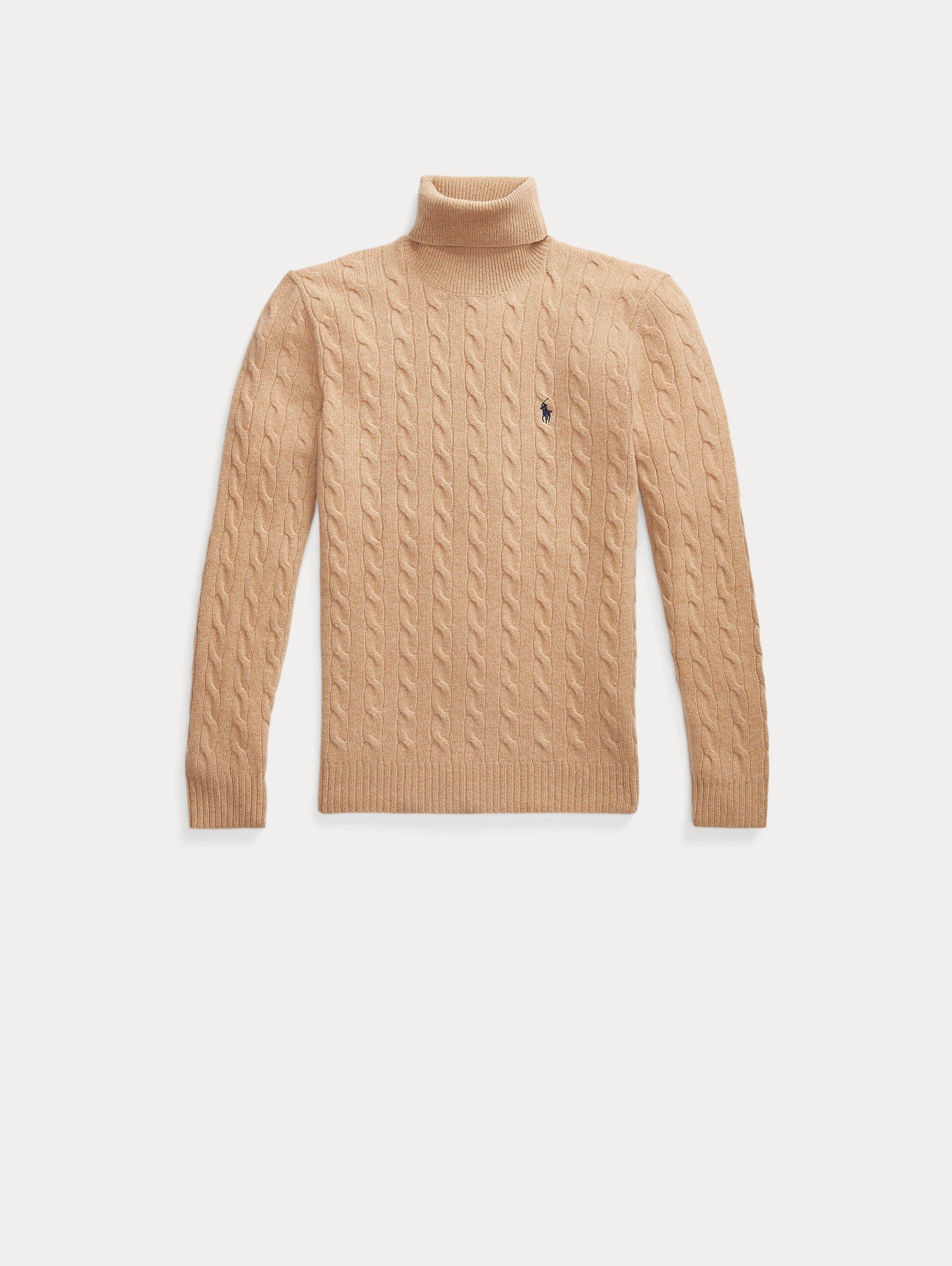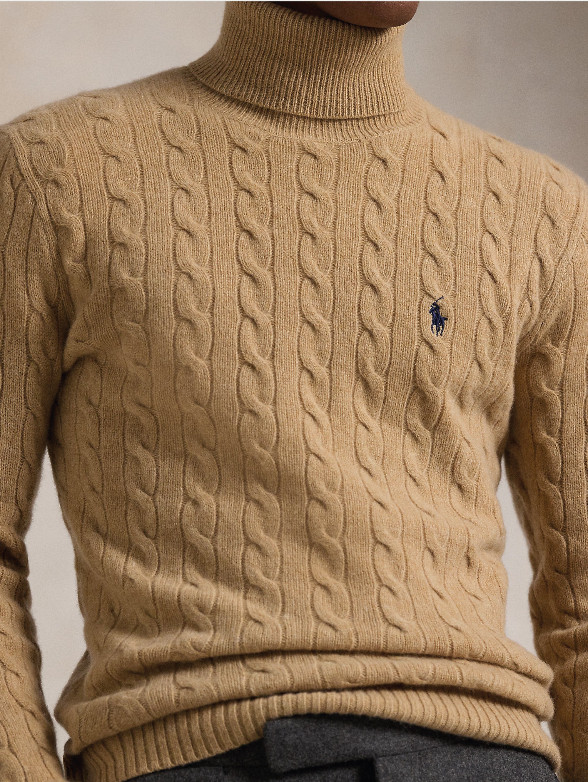 RALPH LAUREN-Maglia Collo Alto a Trecce Cammello-TRYME Shop