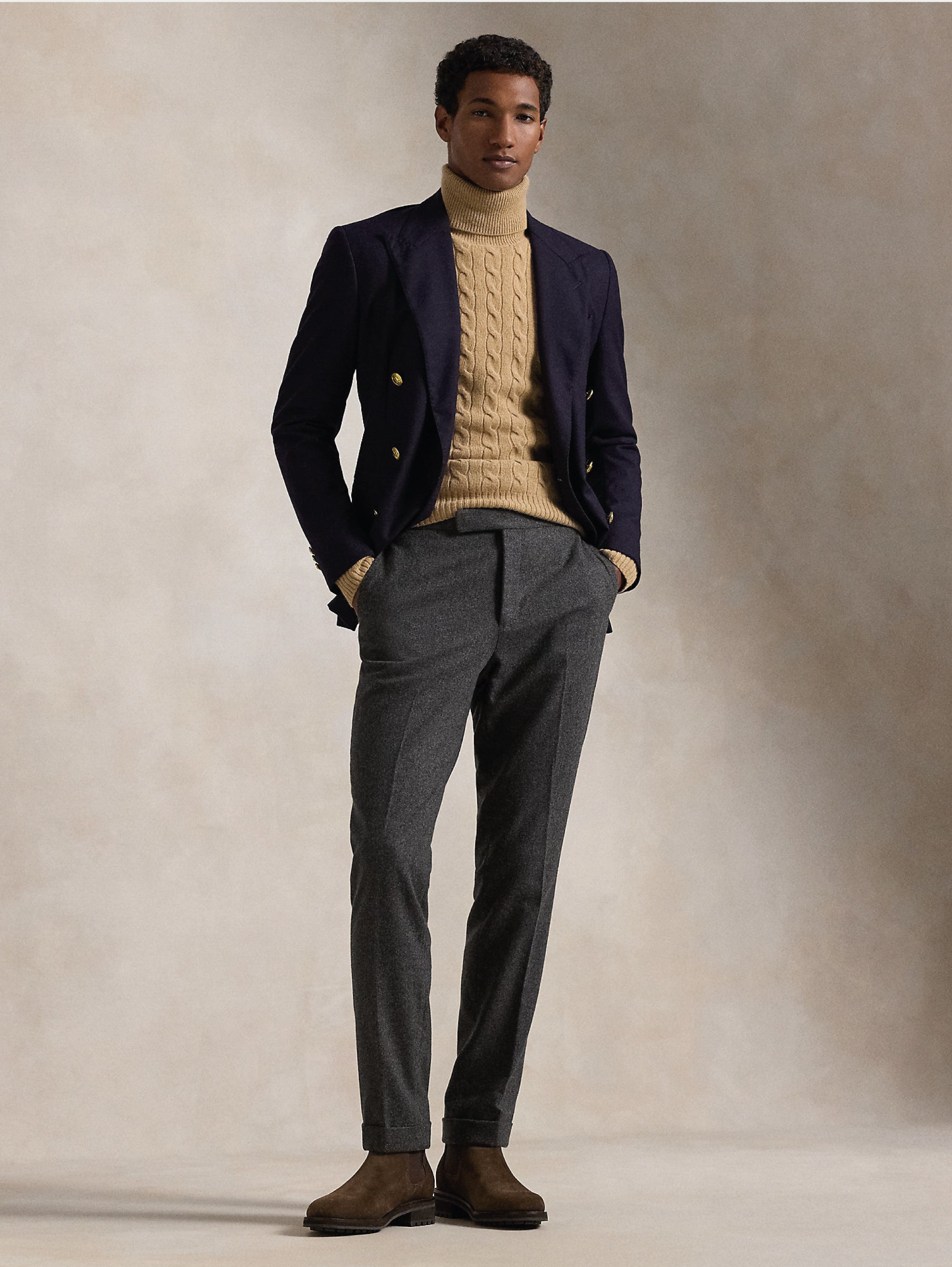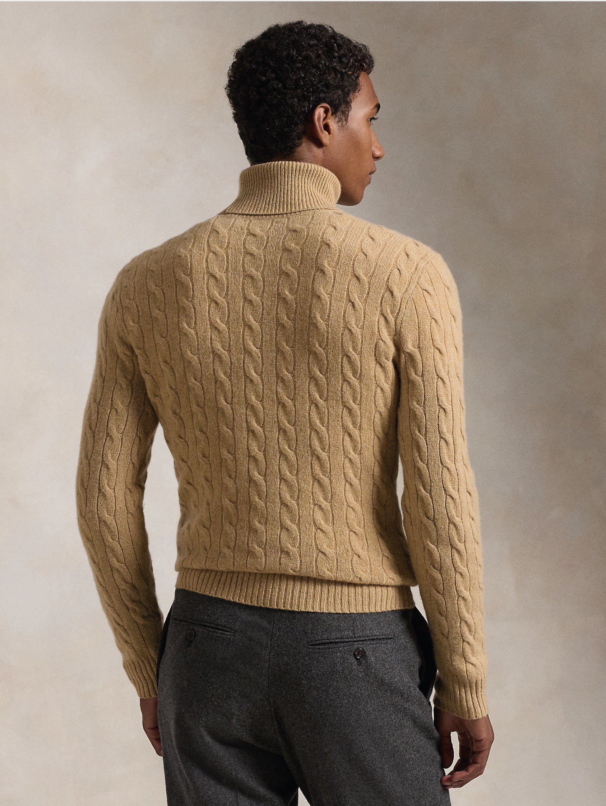 Maglia a trecce collo alto regular fit in lana e cashmere da uomo di Polo Ralph Lauren.