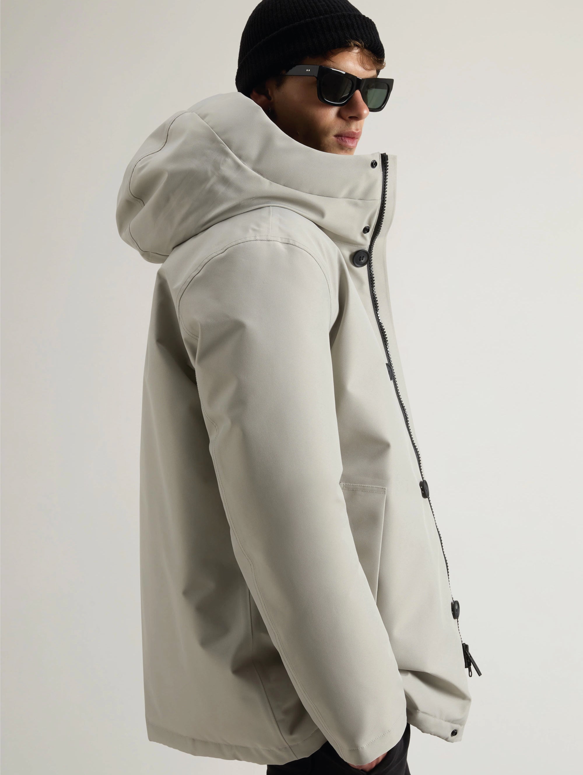 • Giaccone taglio parka realizzato in pregiato tessuto riciclato