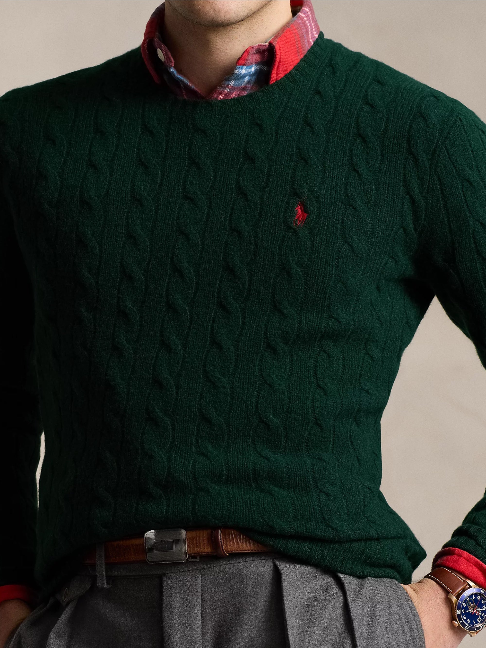 Maglia girocollo in lana e cashmere a trecce da uomo di Polo Ralph Lauren.