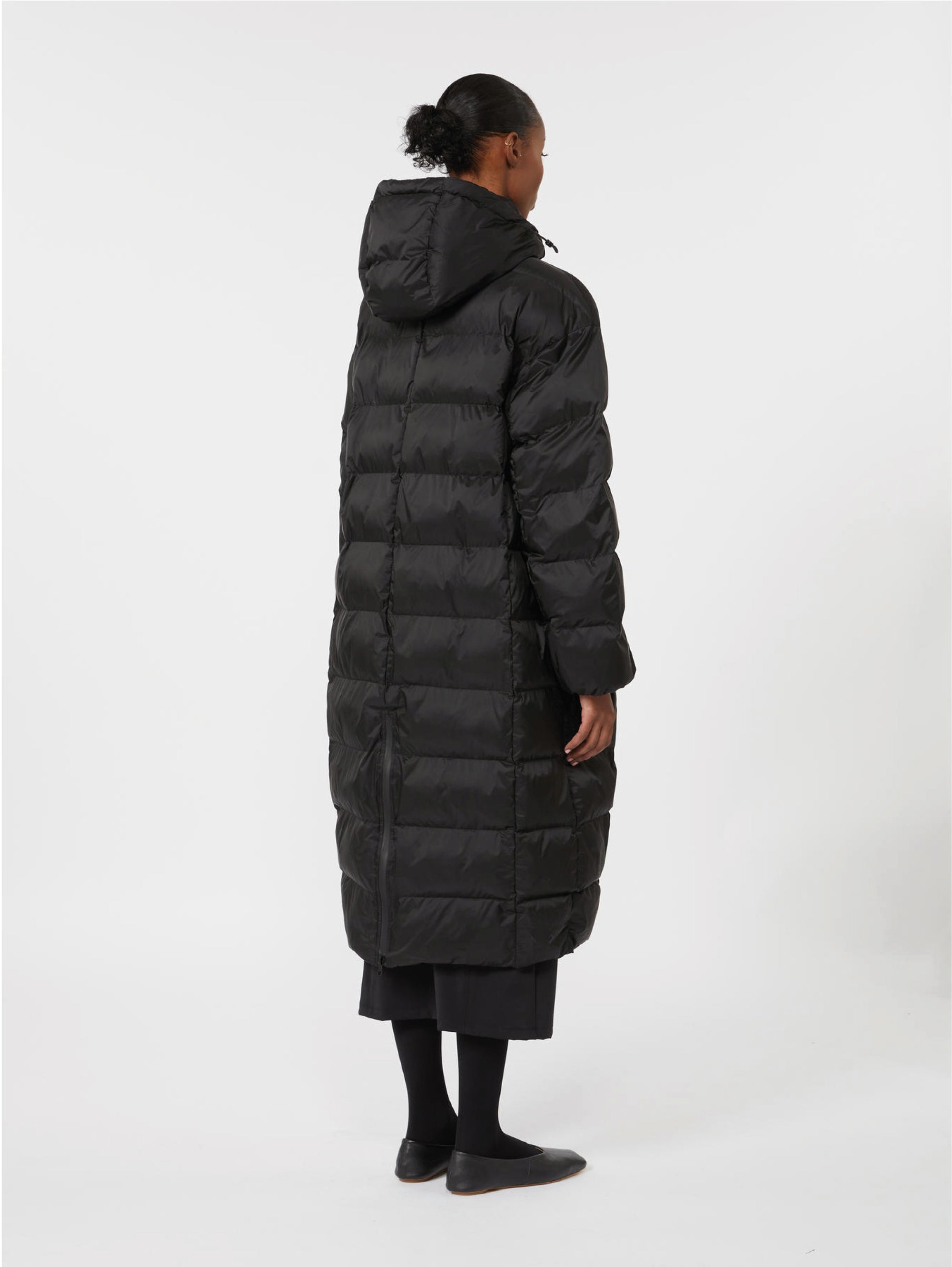 Piumino Lungo con Cappuccio Imbottito in Luxepad Nero