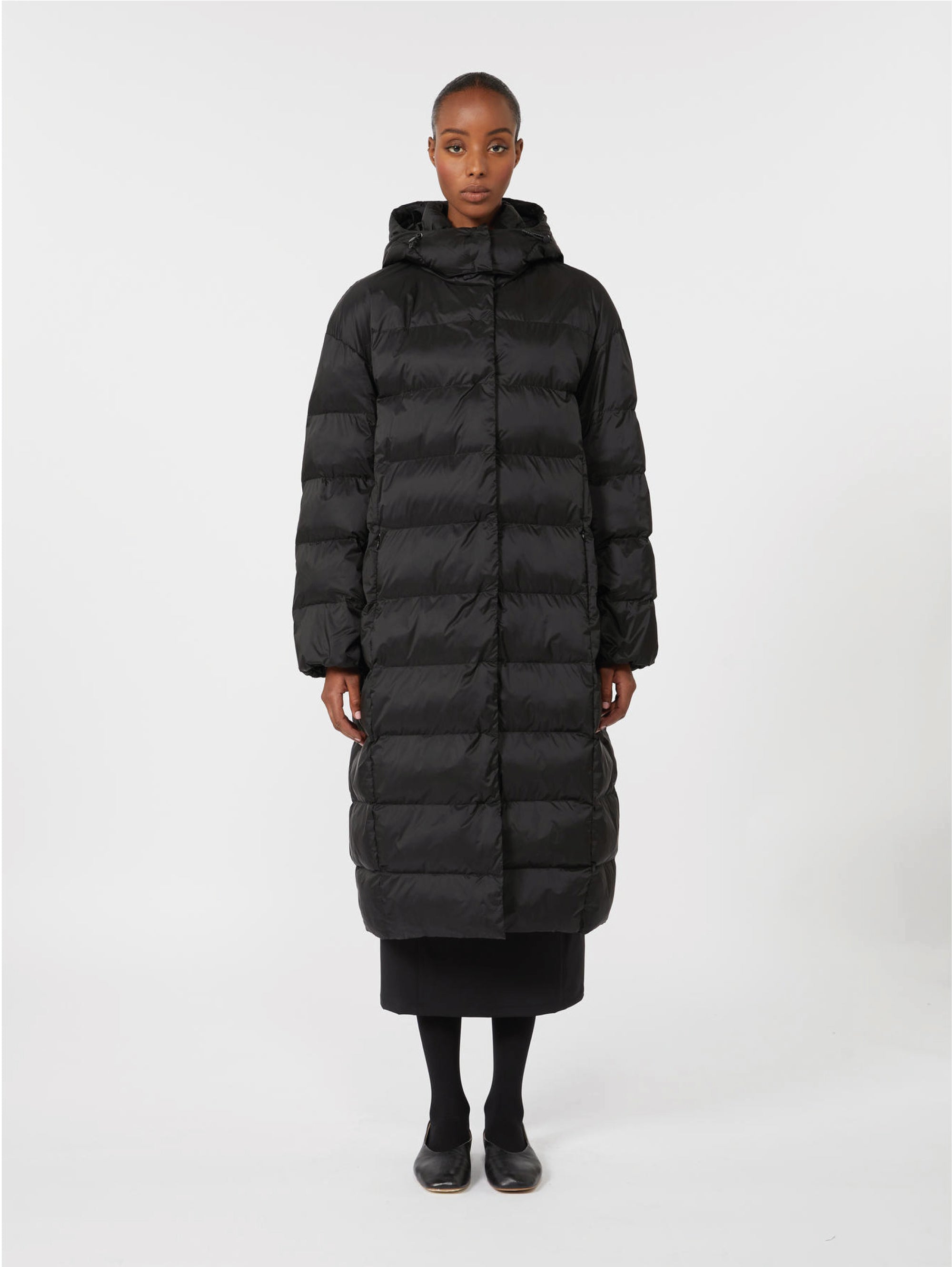 Piumino lungo con membrana interna e imbottitura in Luxepad Ultra Fine Insulating Technology modello Carioca con cappuccio da donna di Max Mara MM.