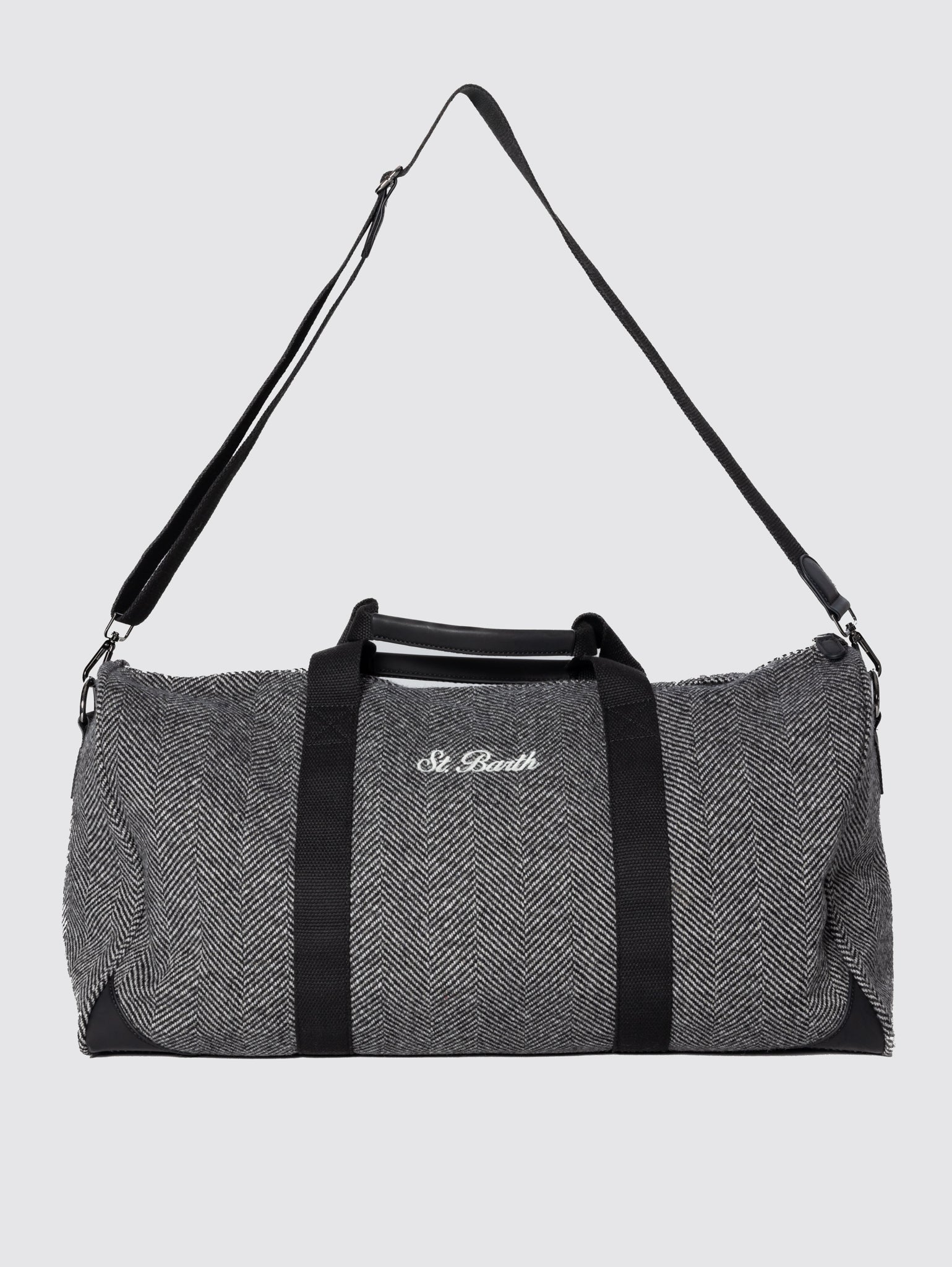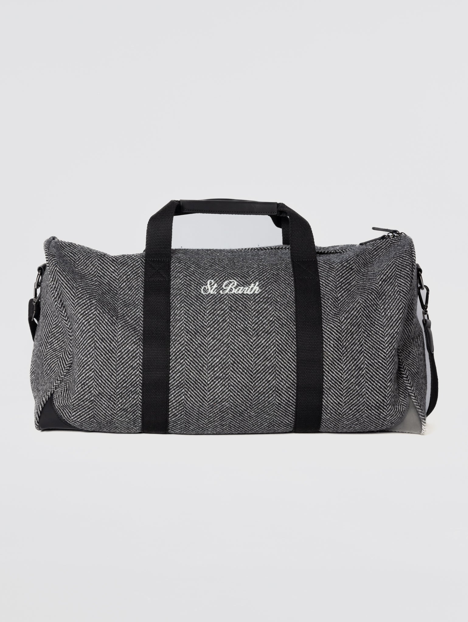 Borsone da Viaggio Jetleg in Lana Motivo Spigato Grigio
