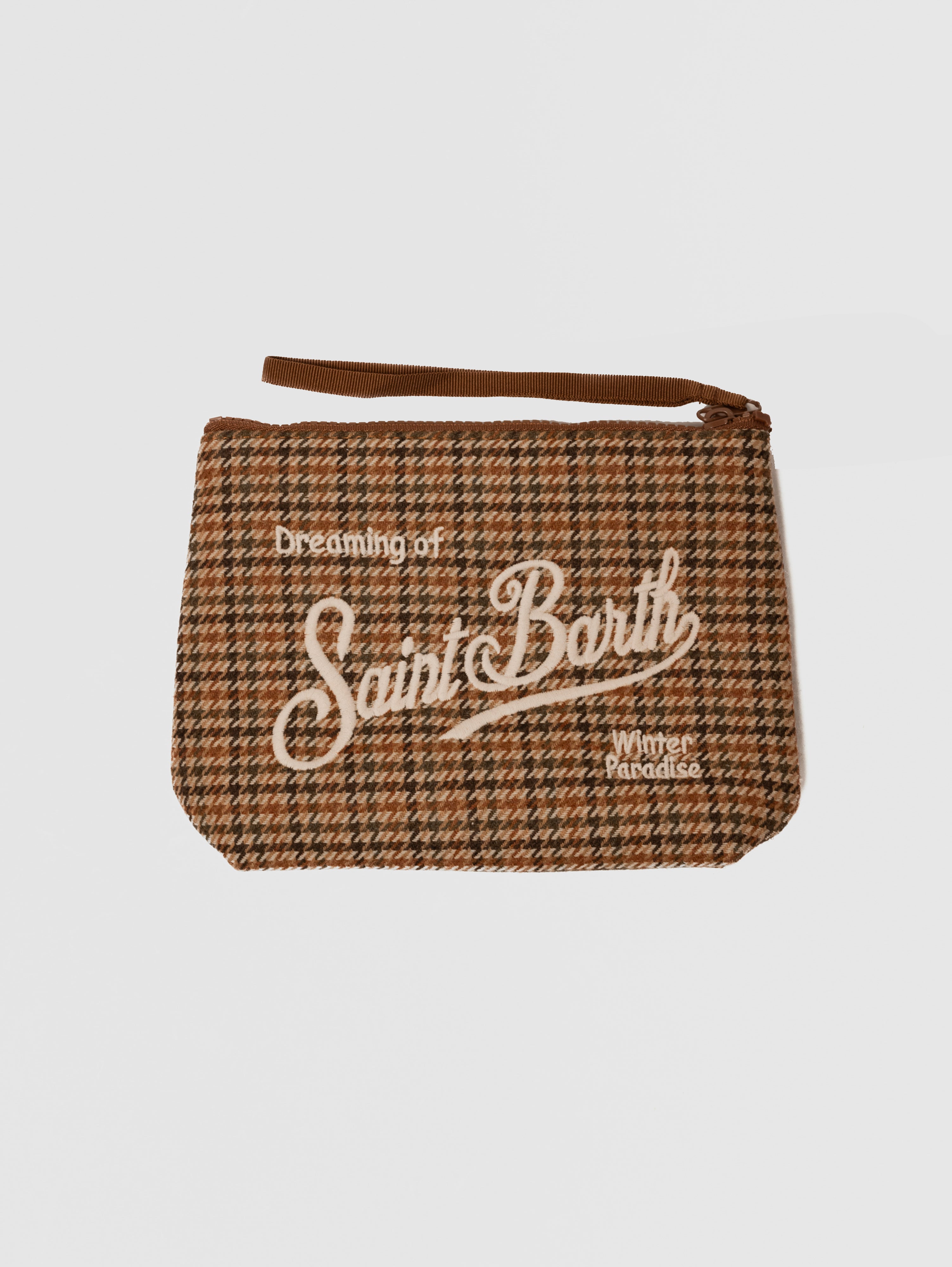 Box con Cappello in Lana e Pochette Pied de Poule Beige