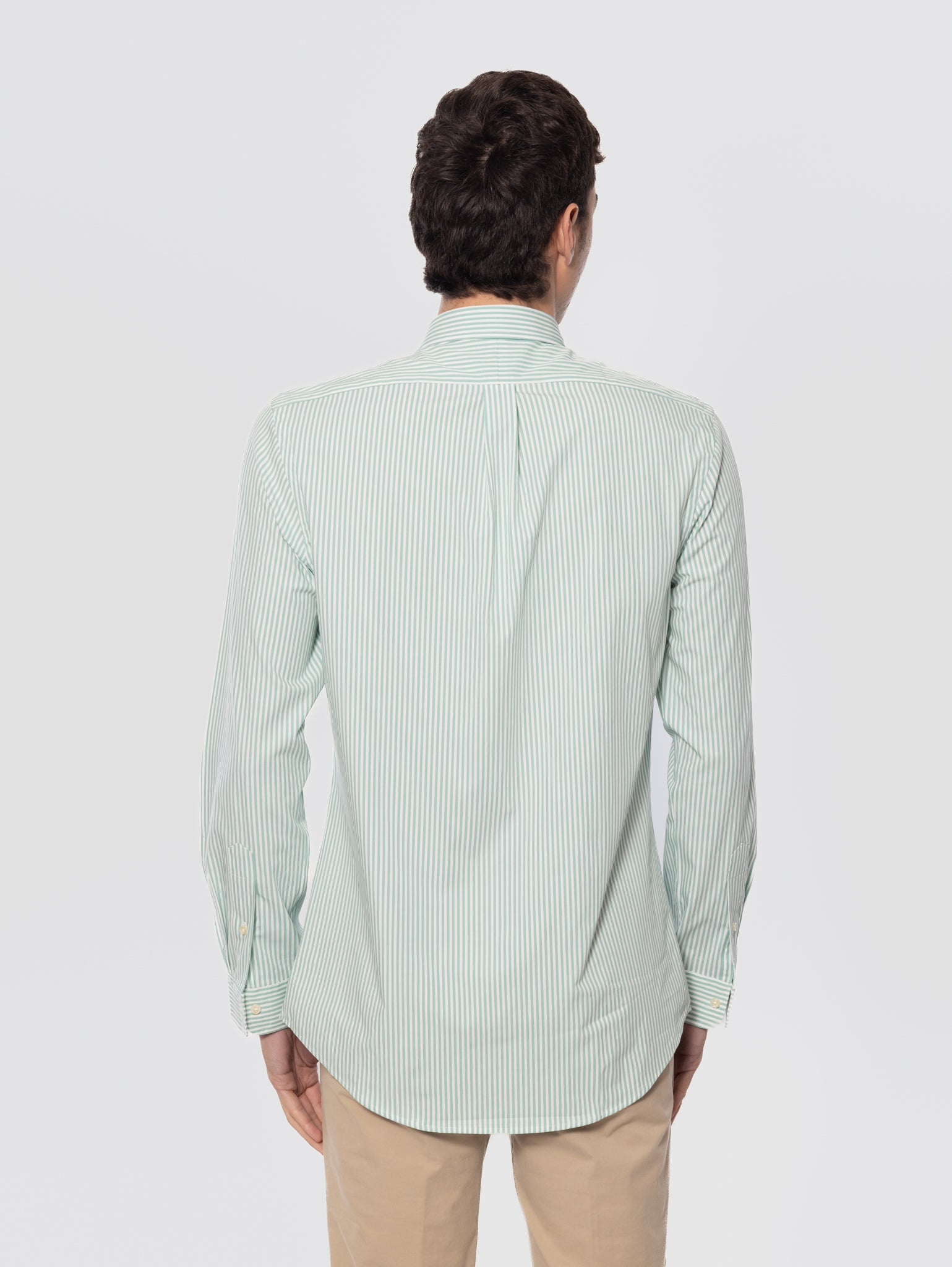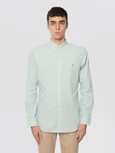 Camicia in Popeline Stretch a Righe Verde/Bianco