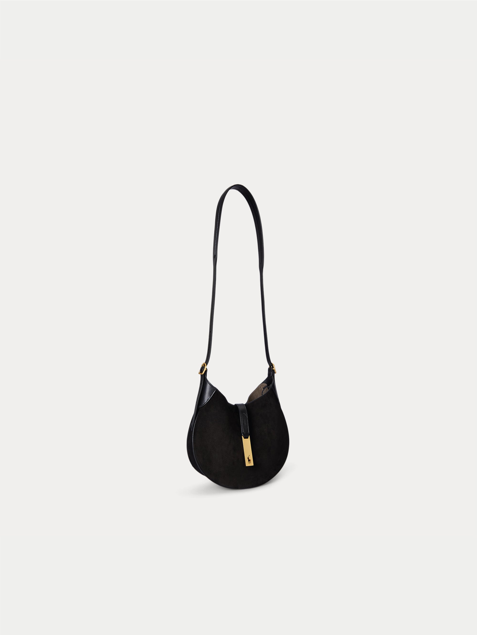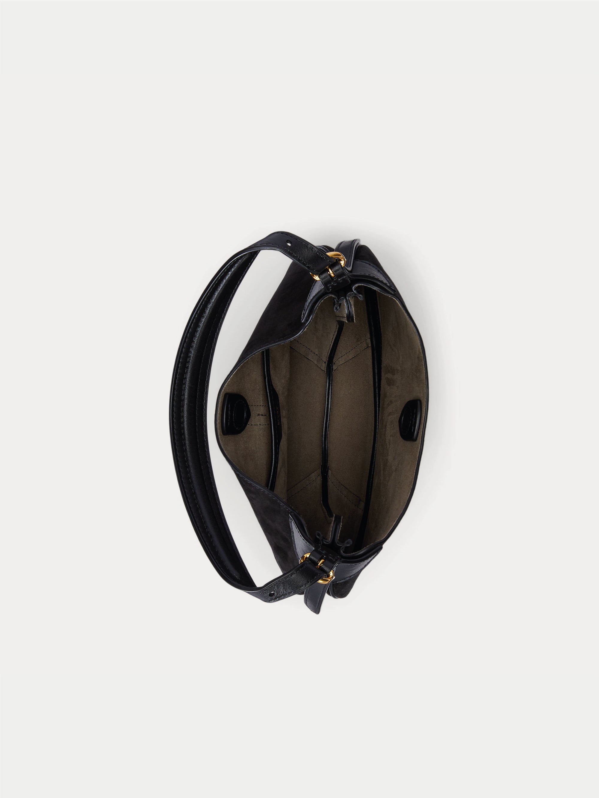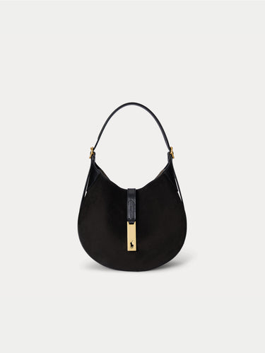 Borsa a Spalla in Vitello Scamosciato Polo ID Nero