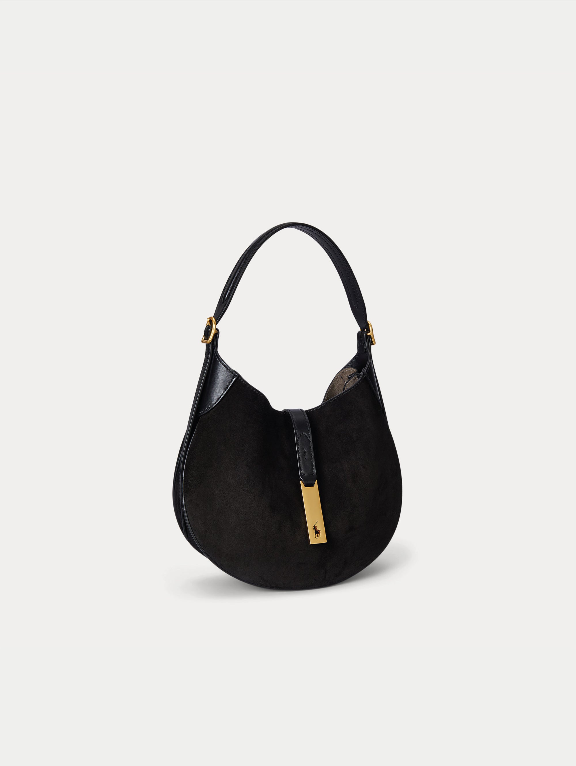 Borsa a spalla in vitello scamosciato della collezione Polo ID da donna di Polo Ralph Lauren.