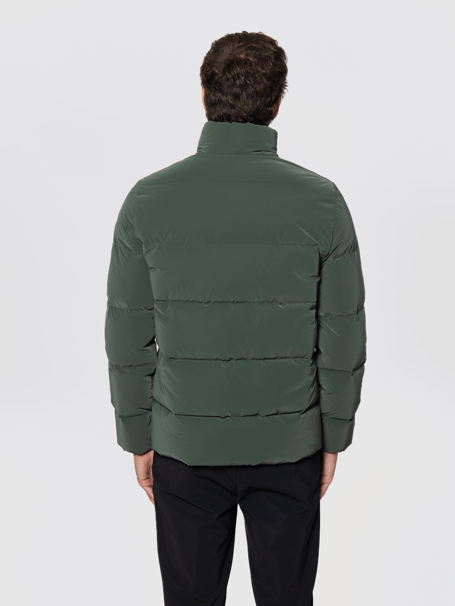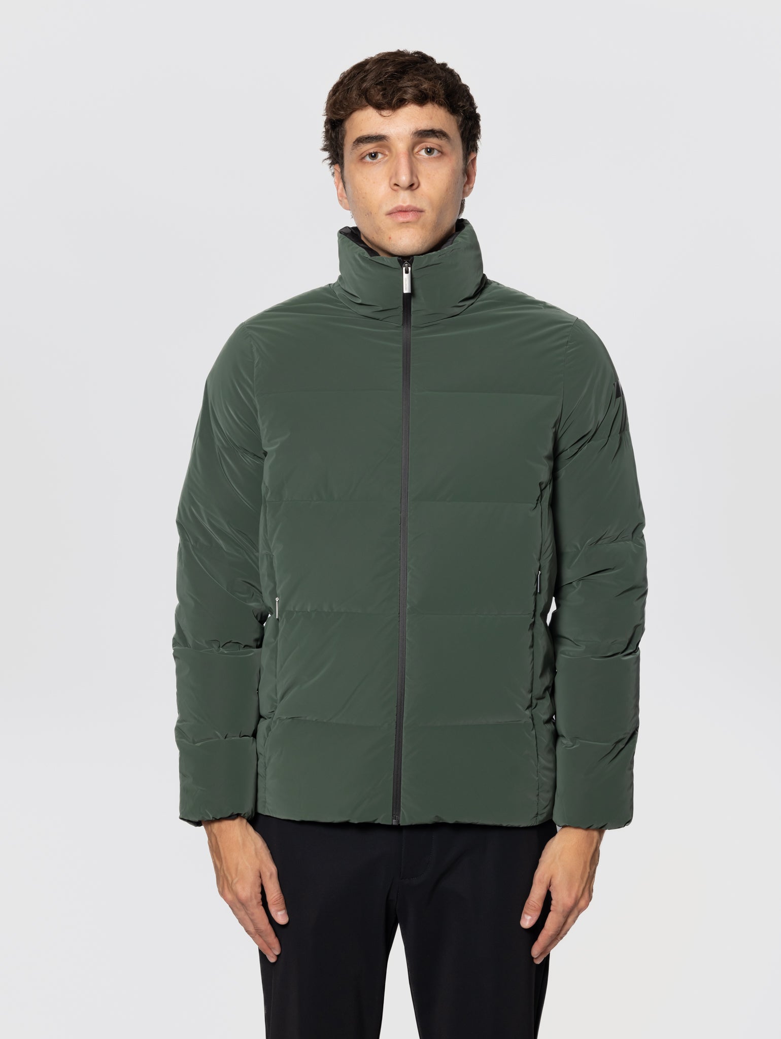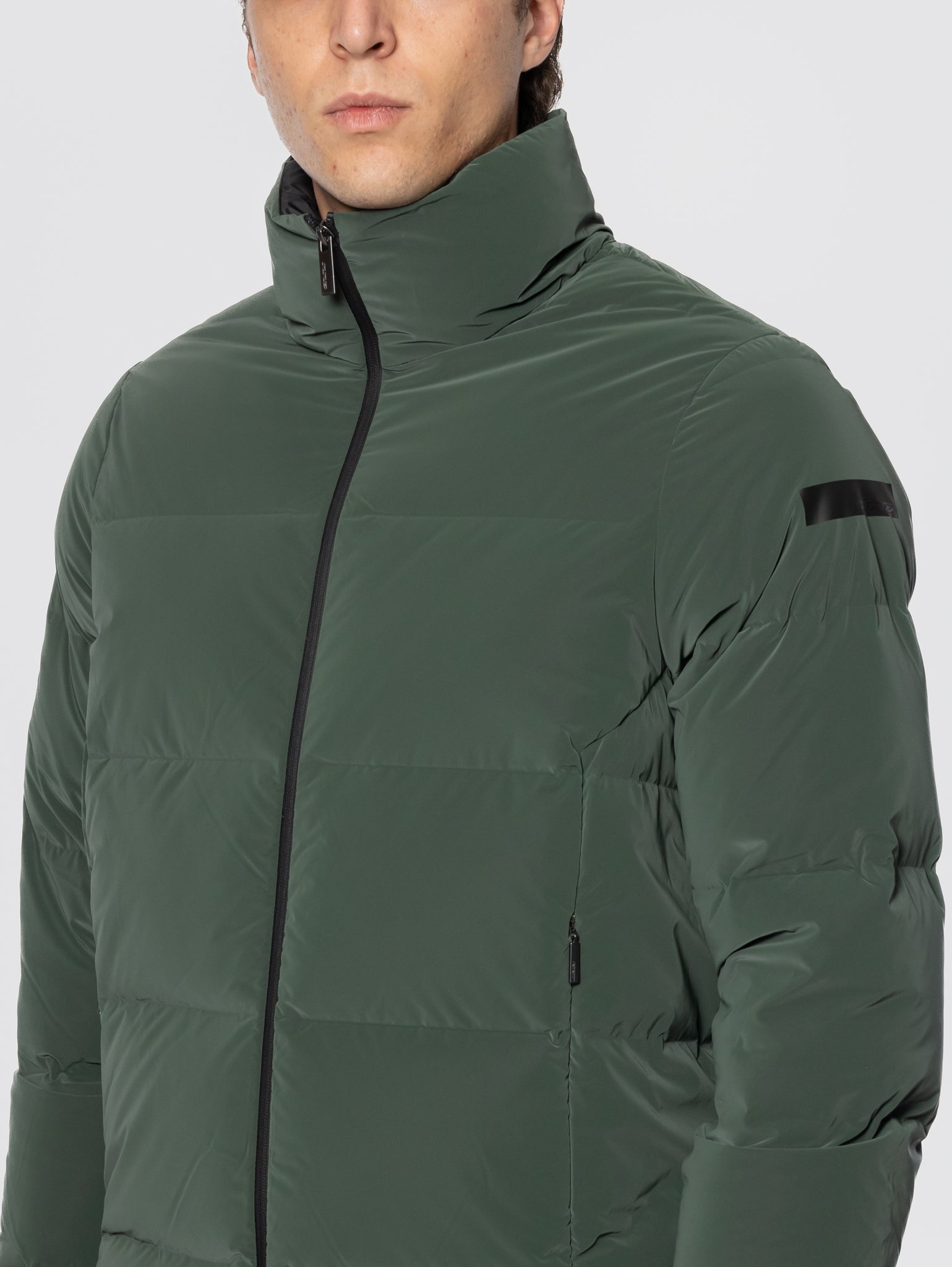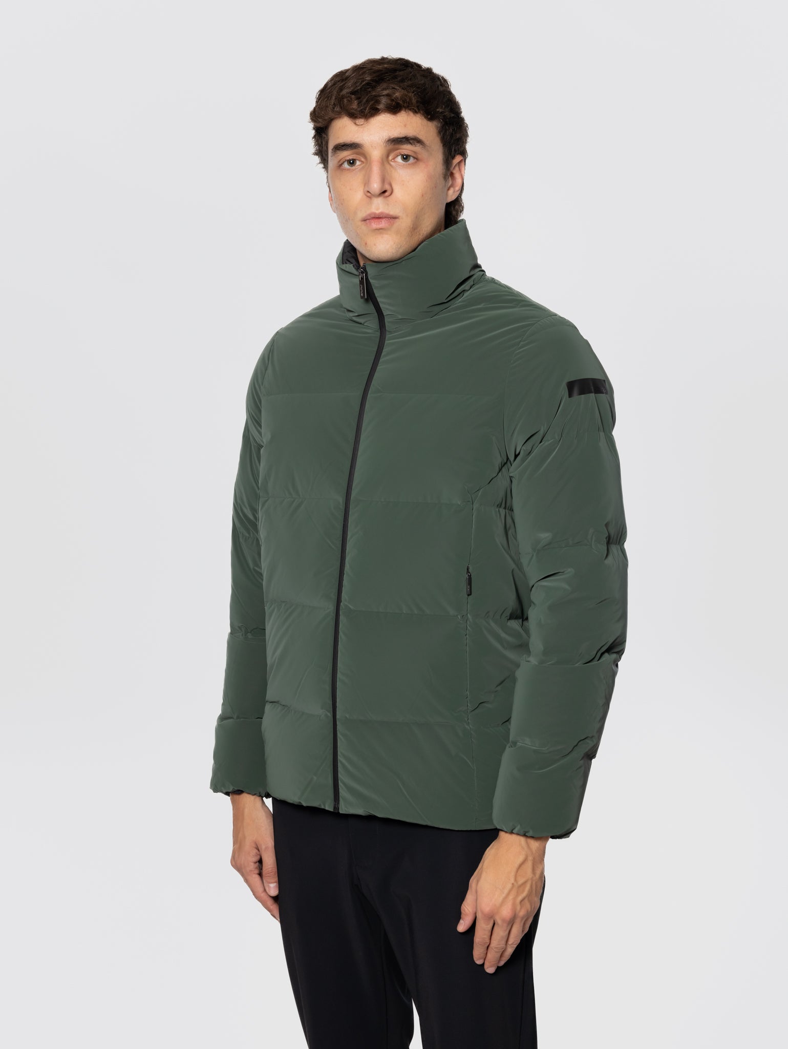 Piumino di lunghezza media e dal fit regolare è definito dall'ampiezza dei canali tubici spalmati a silicone, a effetto delicatamente cangiante modello W25028 da uomo di RRD.
