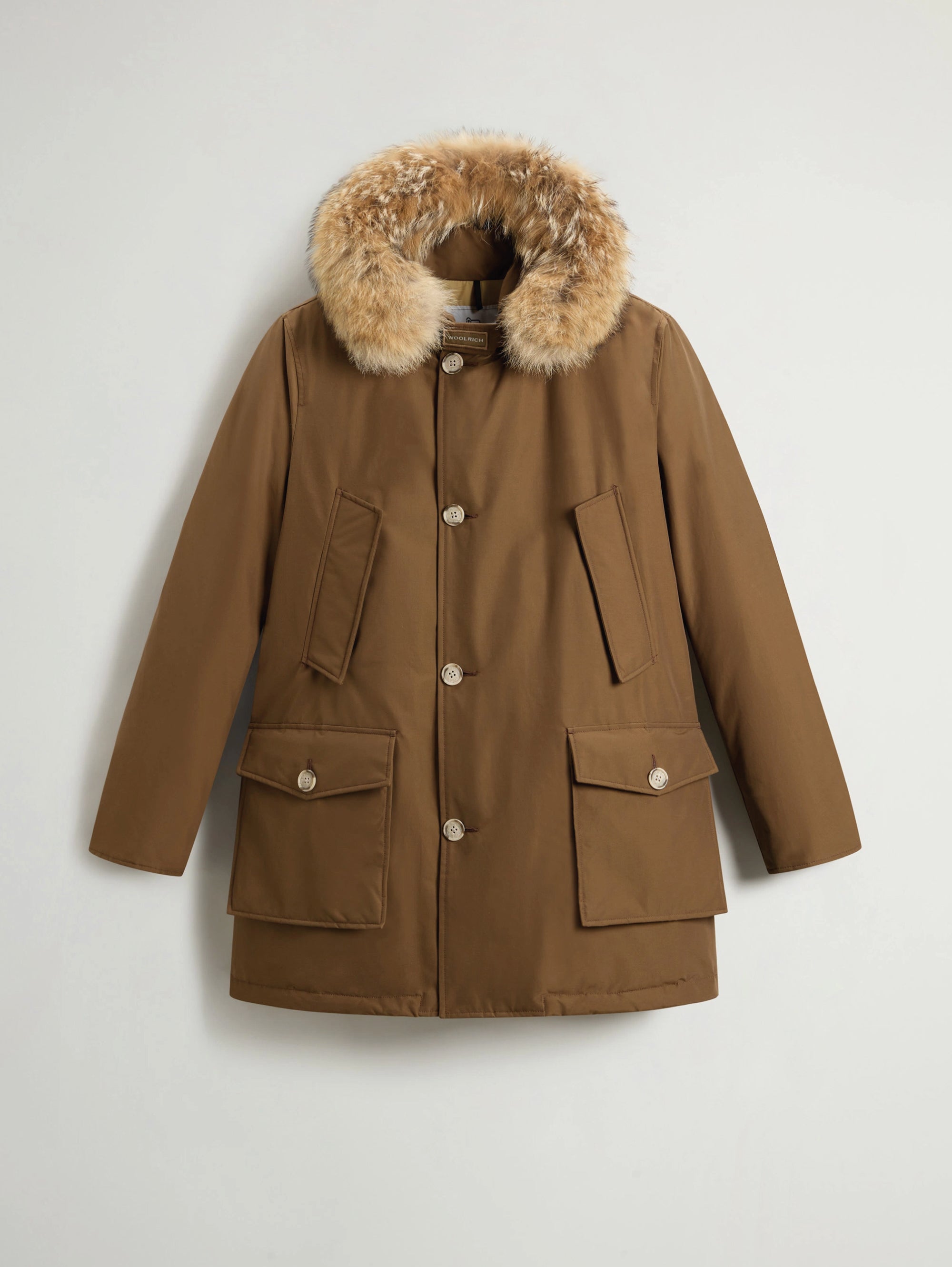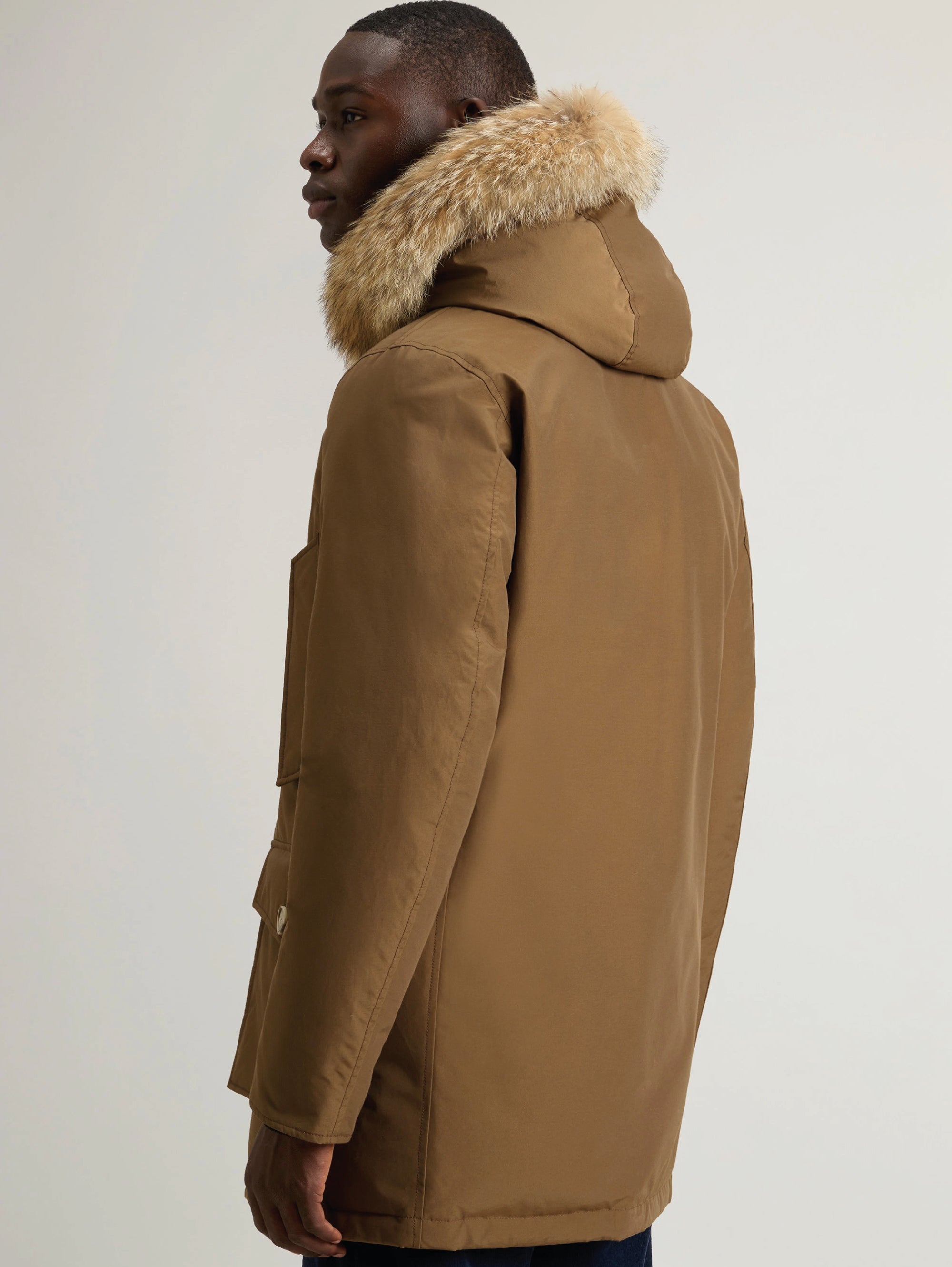 Giaccone parka in ramar con cappuccio con pelliccia removibile da uomo di Woolrich.