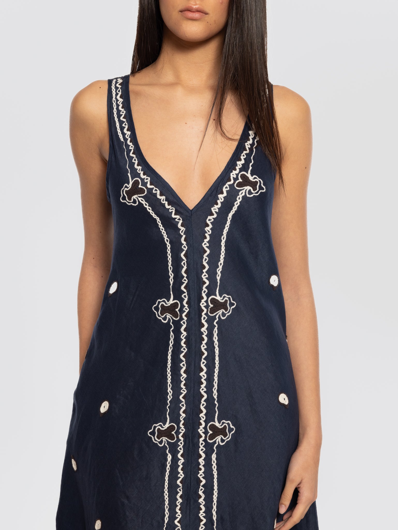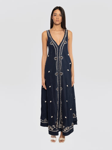 Abito lungo in lino con ricami modello D722502R BEACH26 da donna di P.A.R.O.S.H.