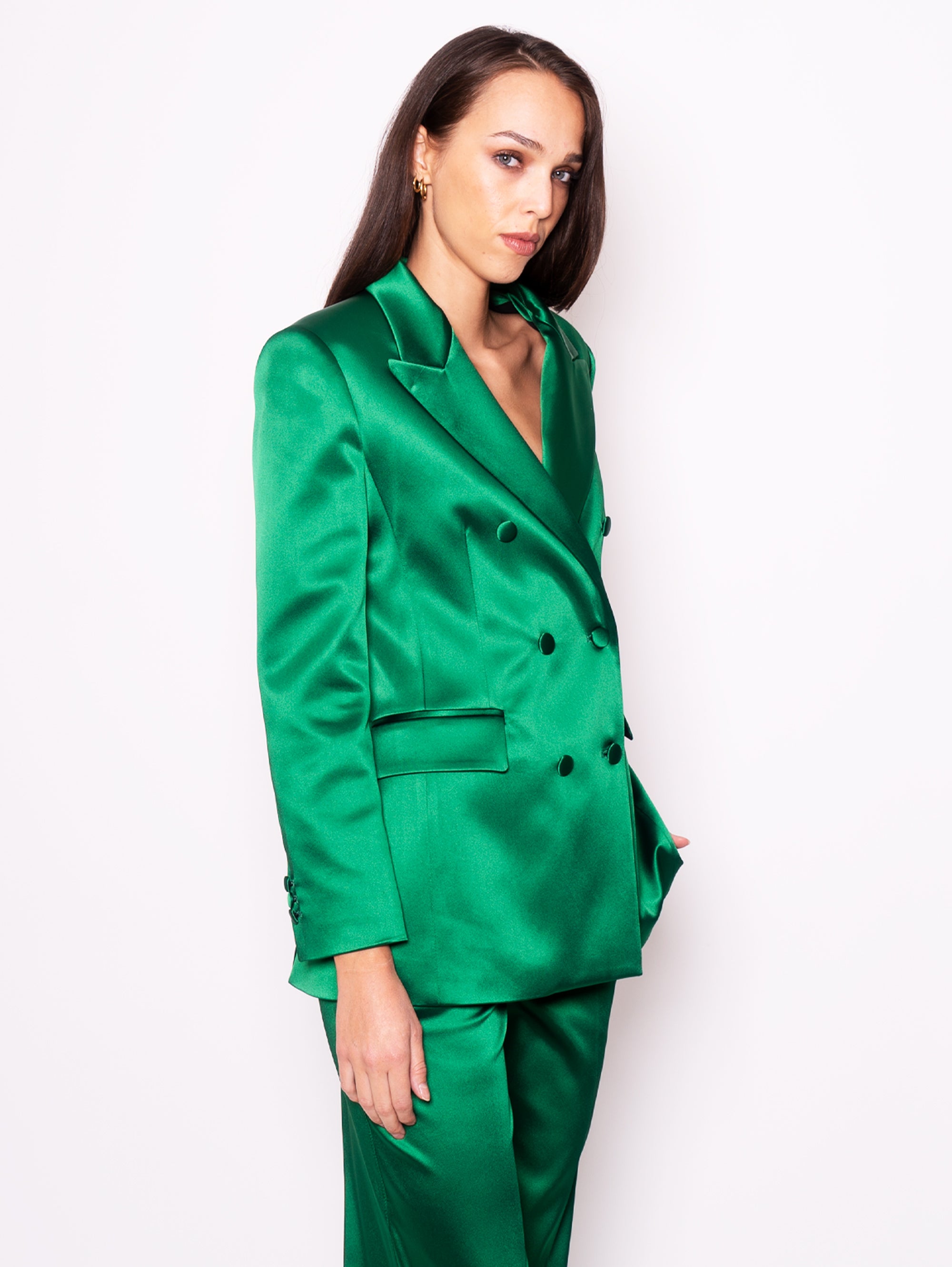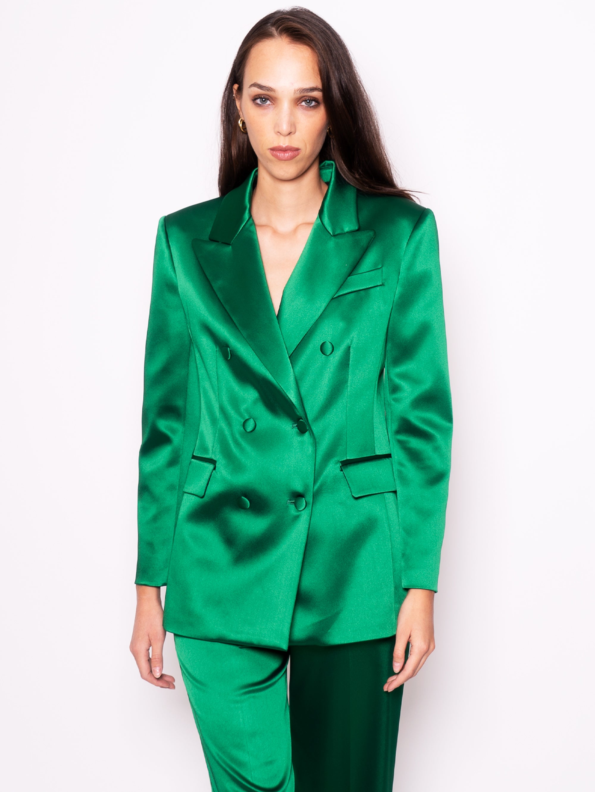 Giacca Doppio Petto in Raso Verde