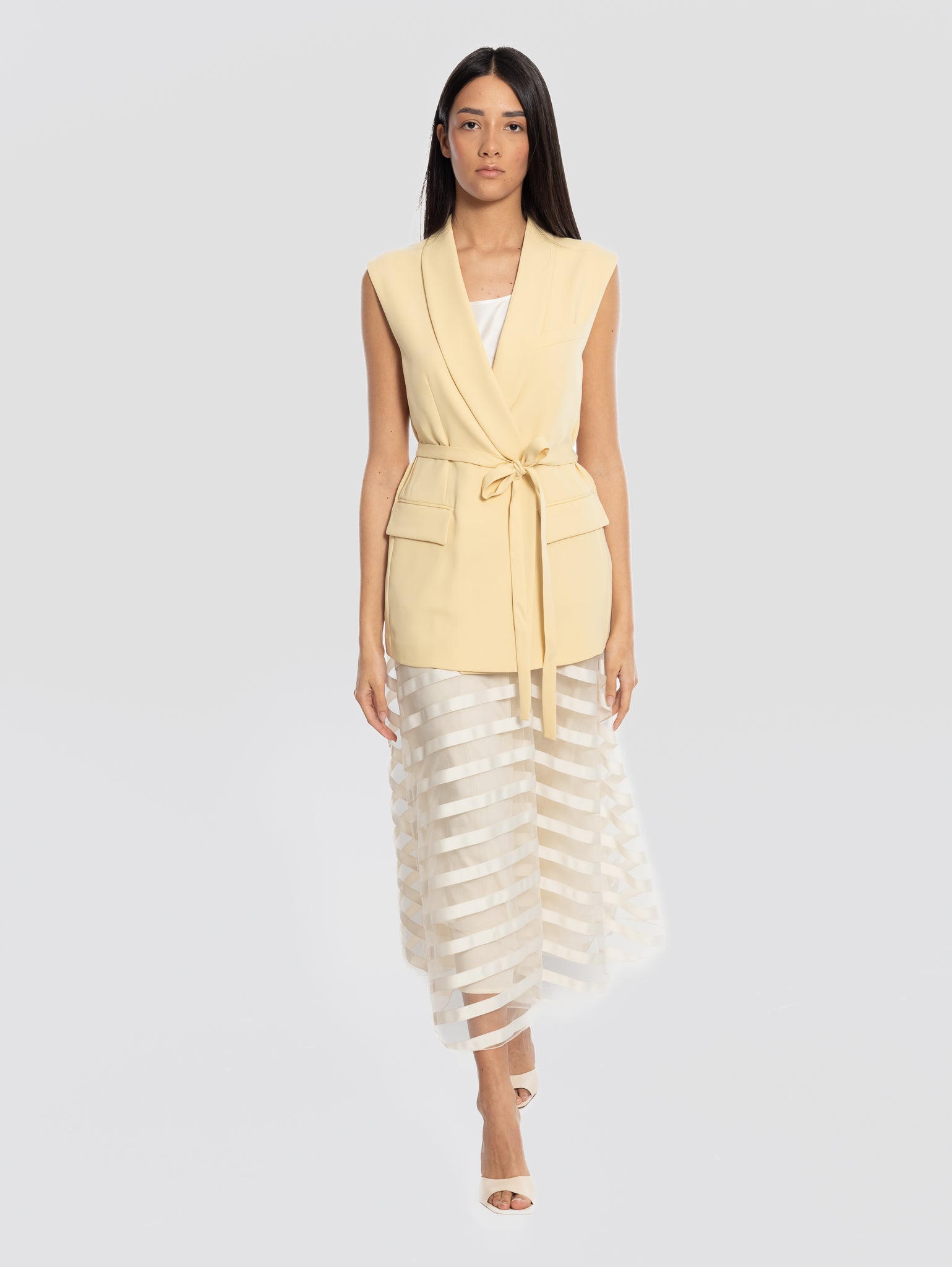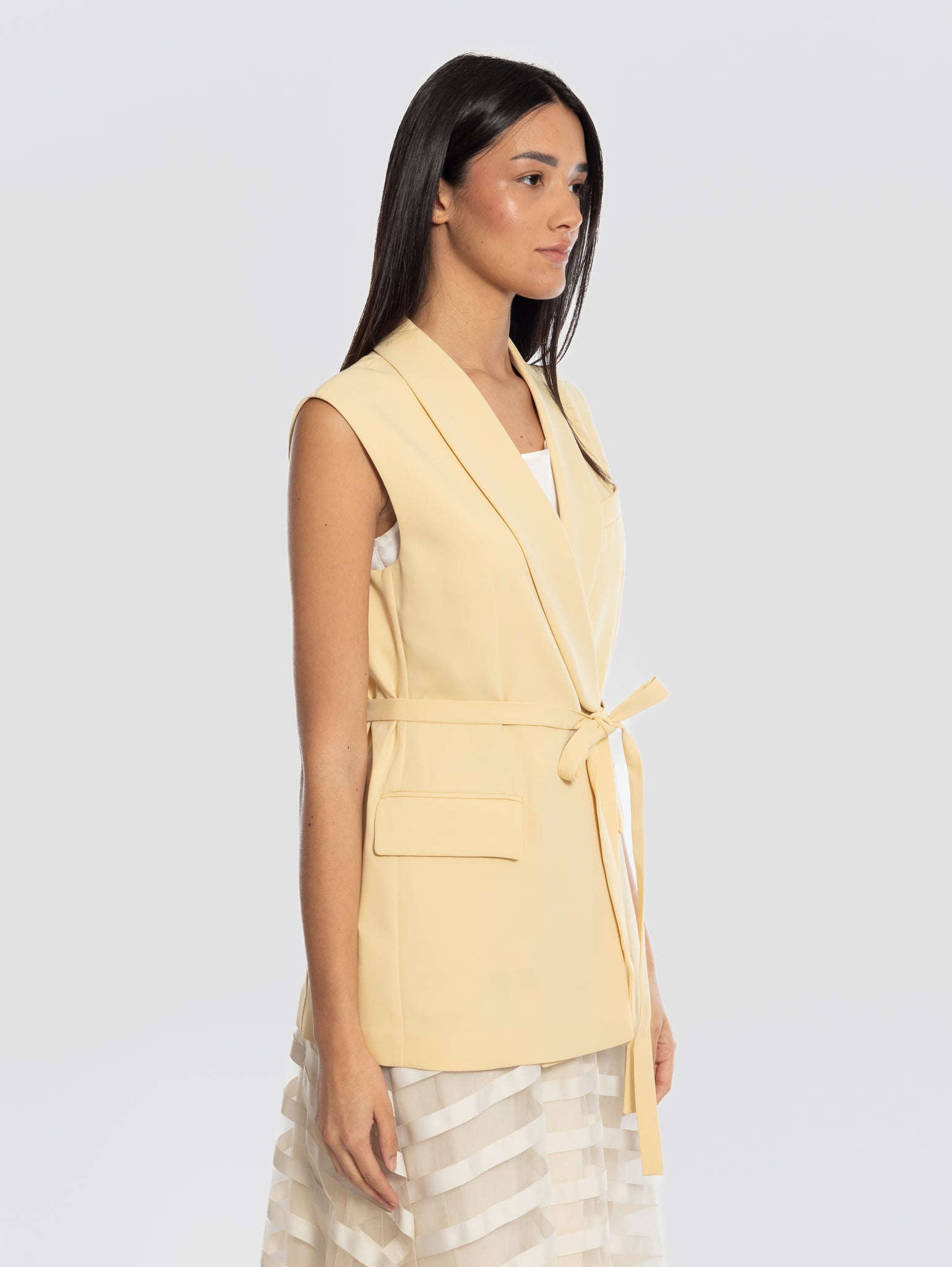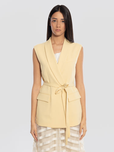 Gilet in cady doppiopetto con cintura in vita modello D410054 PANTY26 da donna di P.A.R.O.S.H.