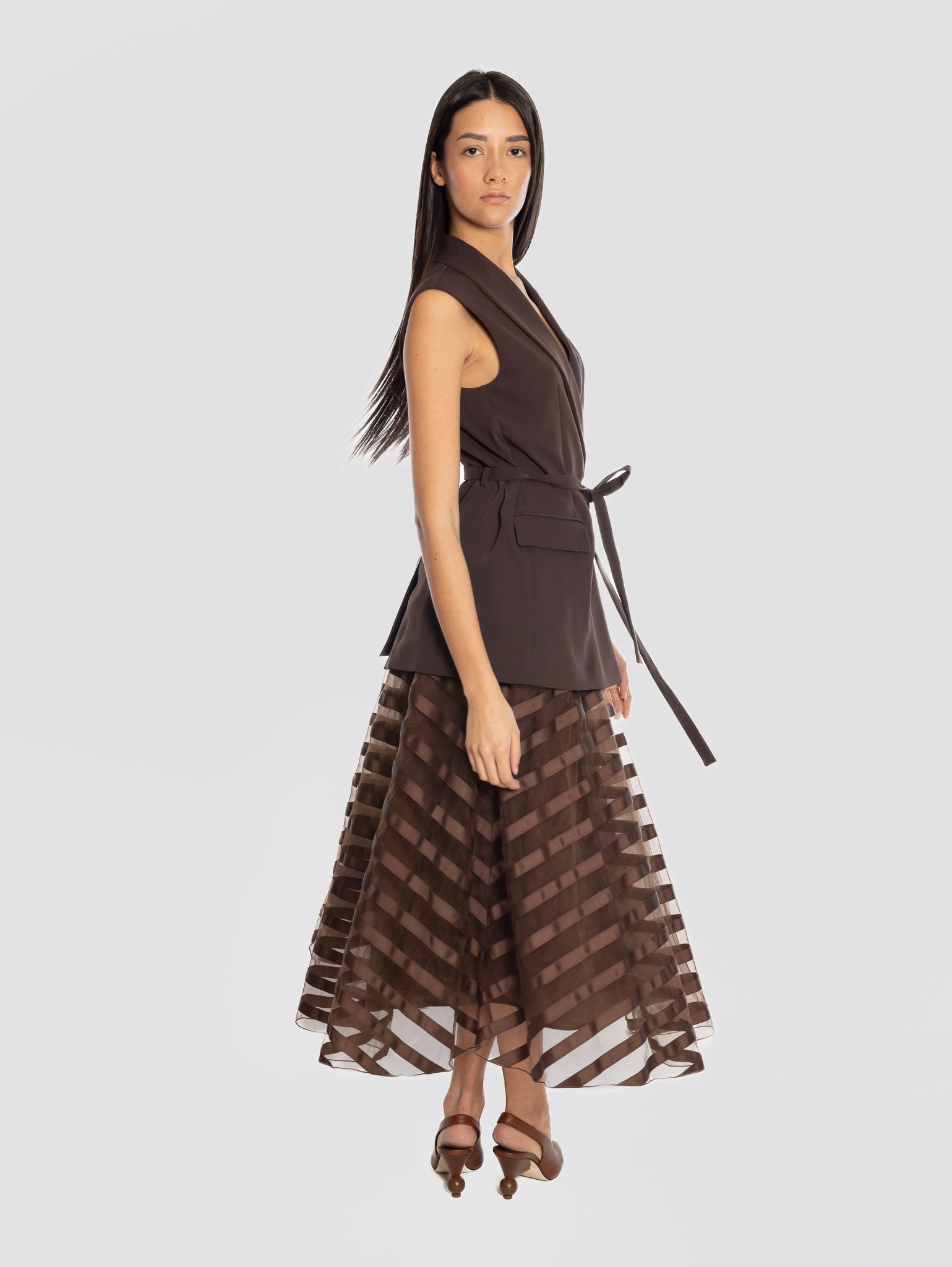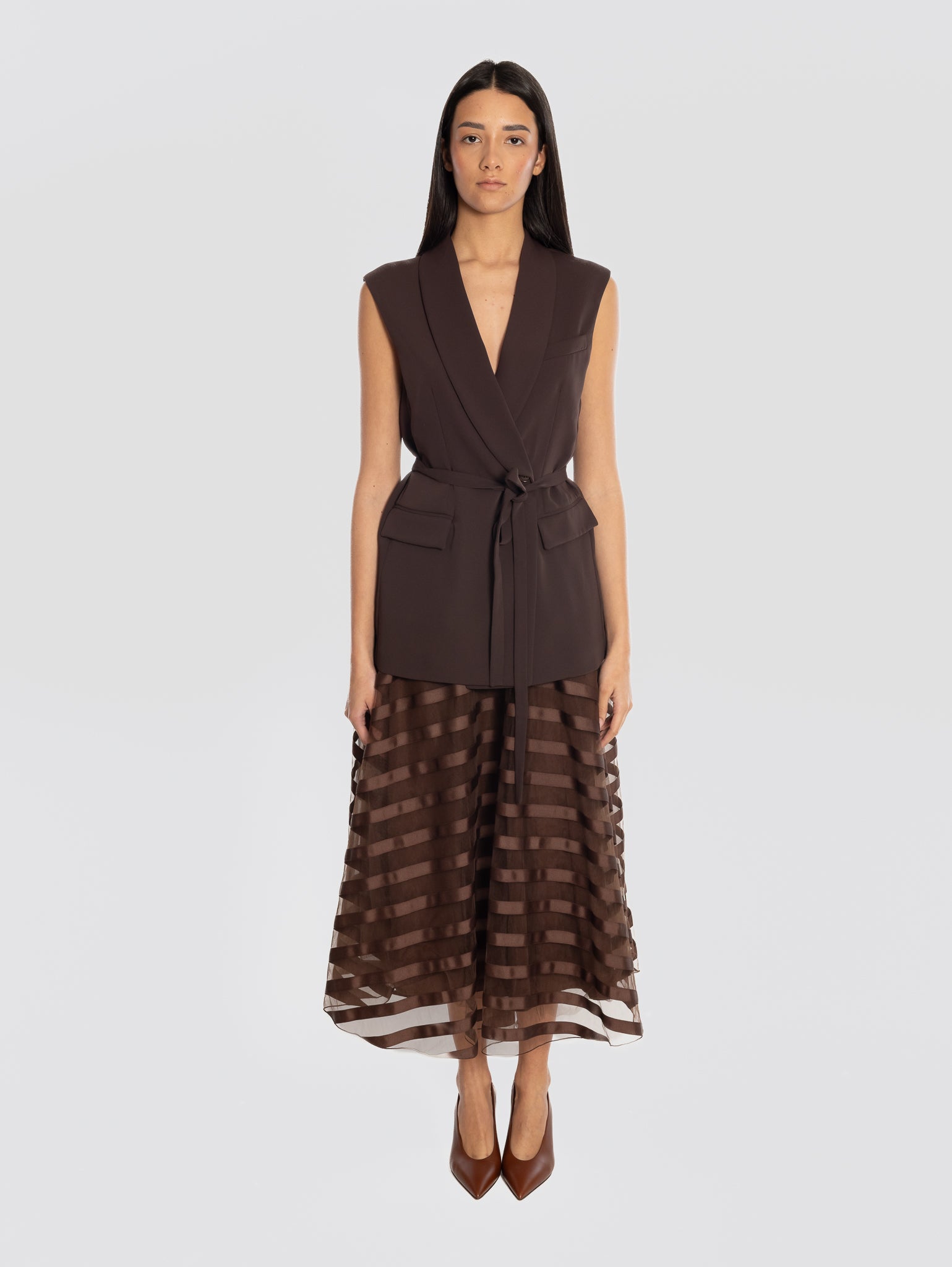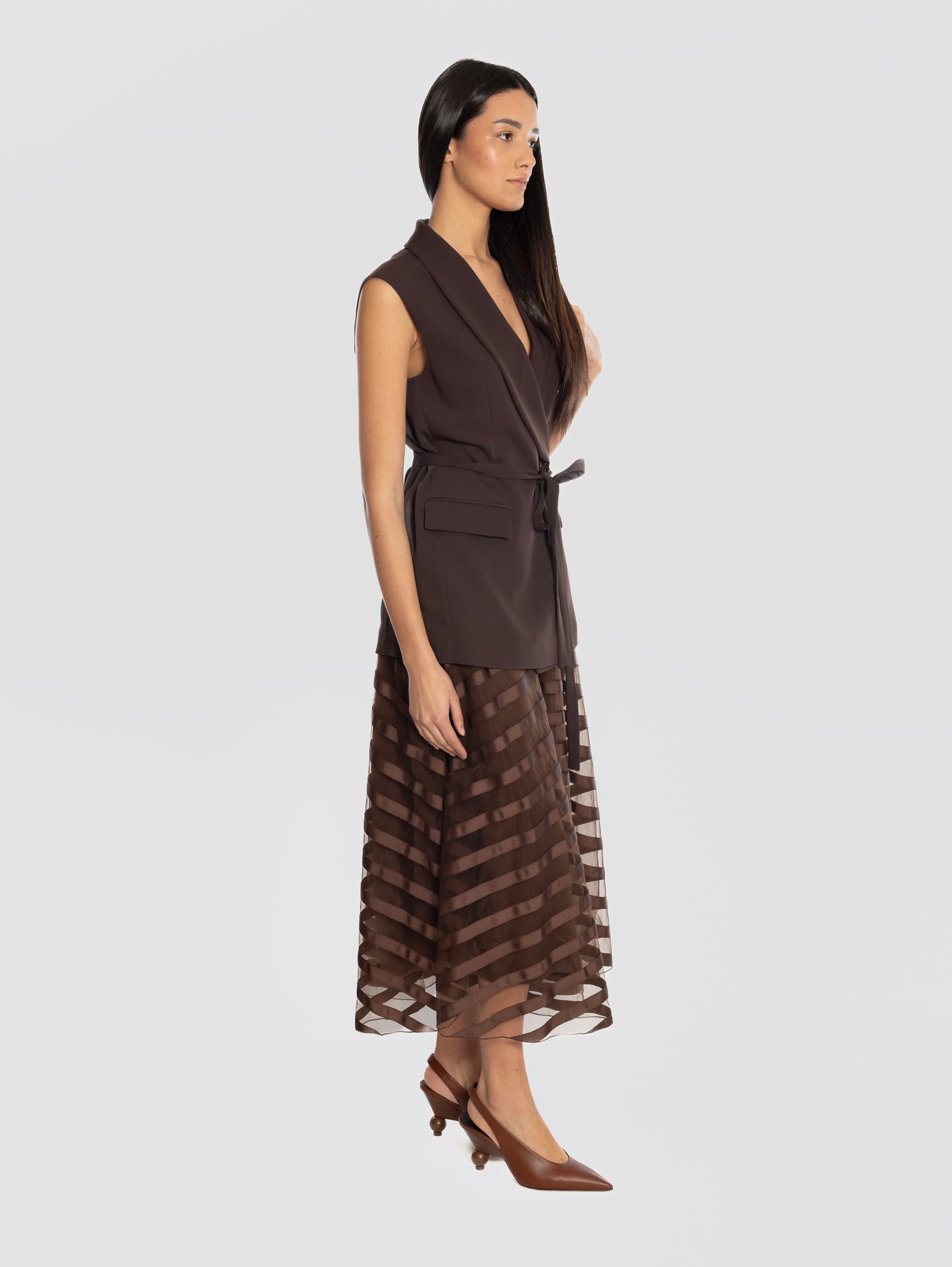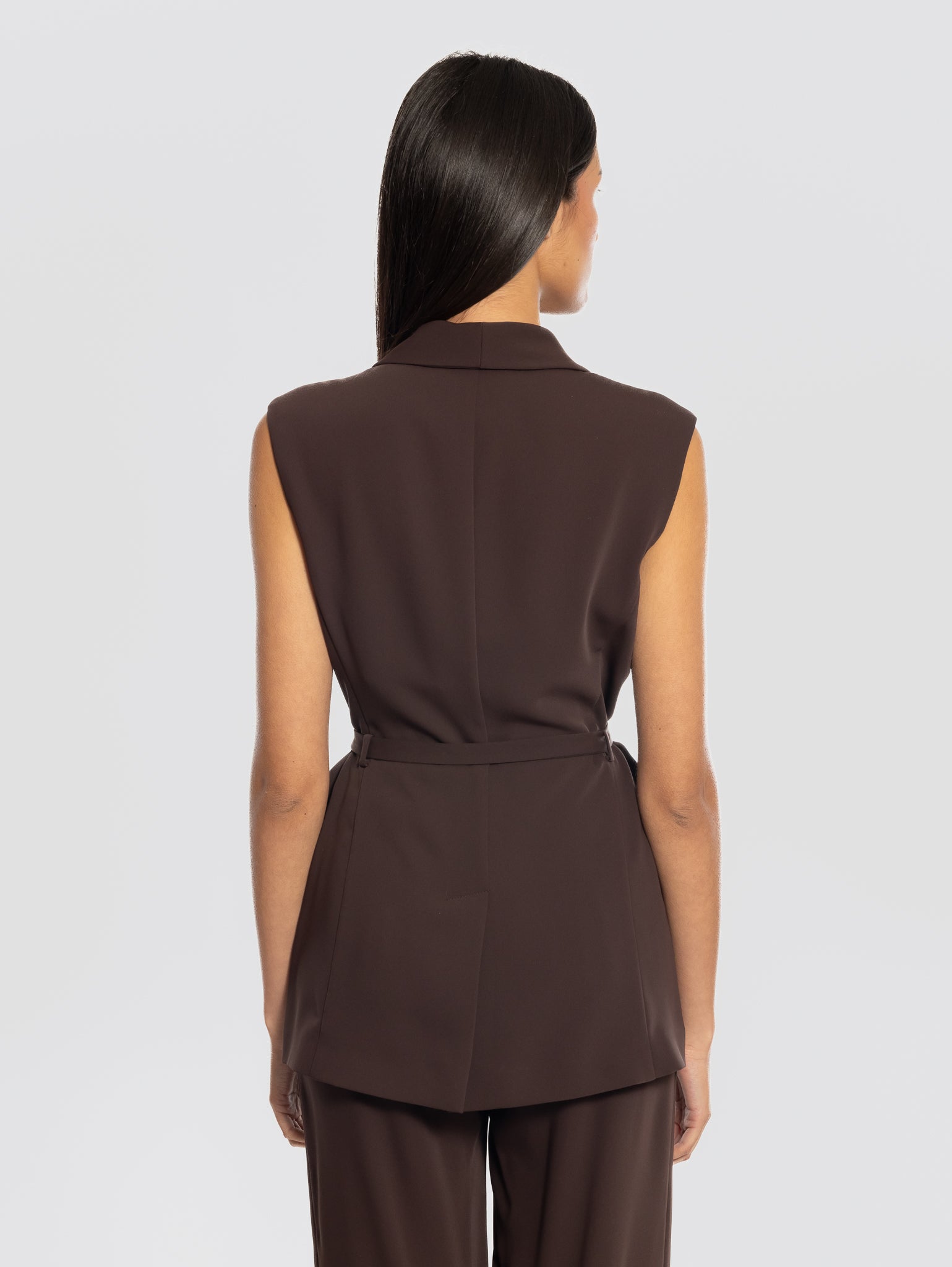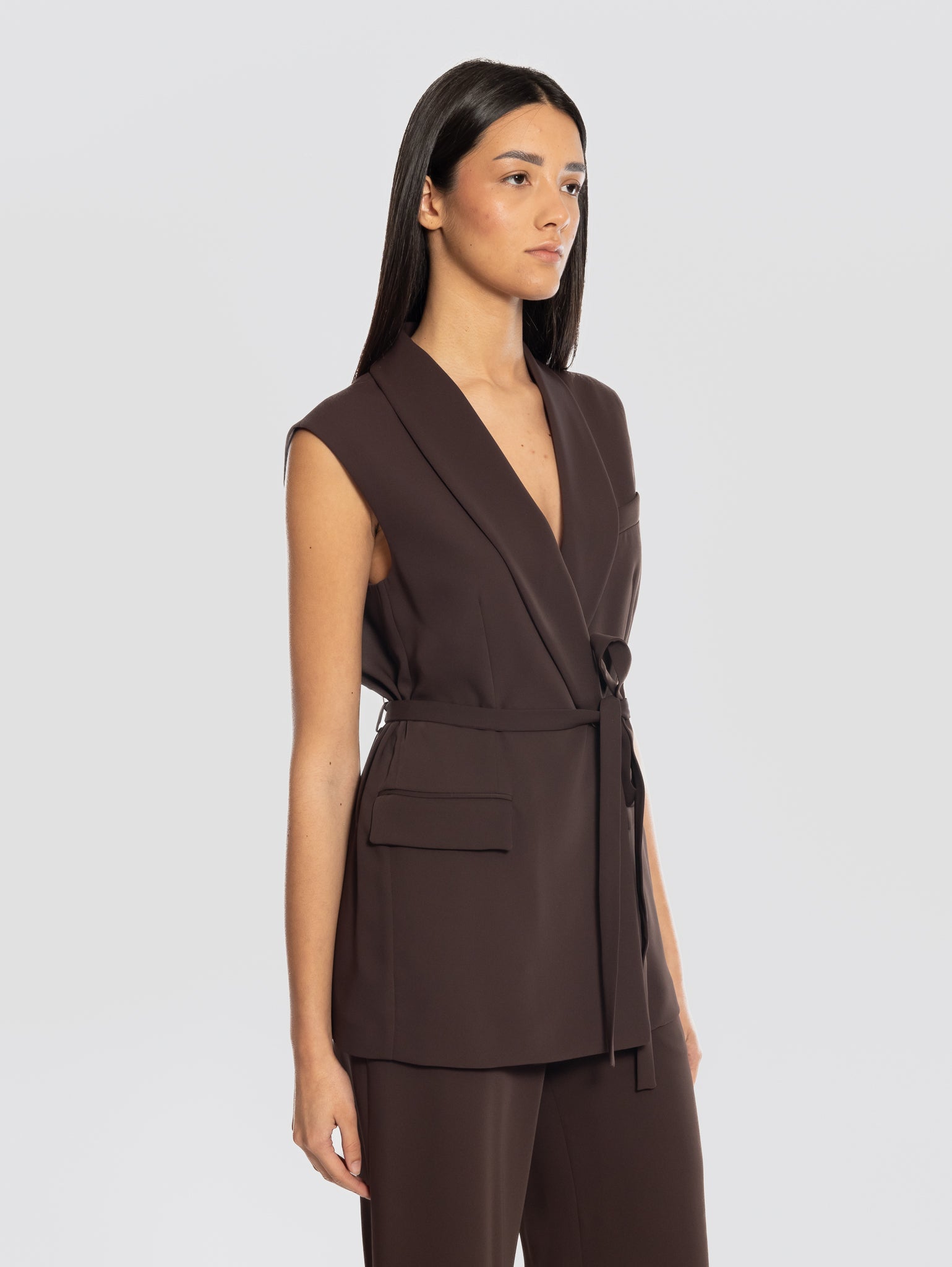 Gilet in cady doppiopetto con cintura in vita modello D410054 PANTY26 da donna di P.A.R.O.S.H.