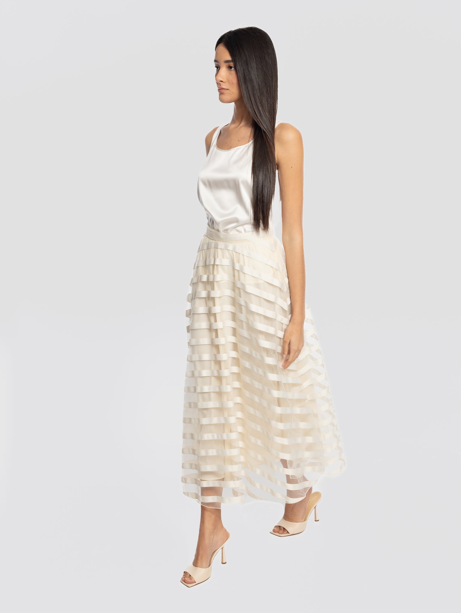 Gonna longuette in tulle ricamato con sottogonna modello D621545 NUANCE26 da donna di P.A.R.O.S.H.