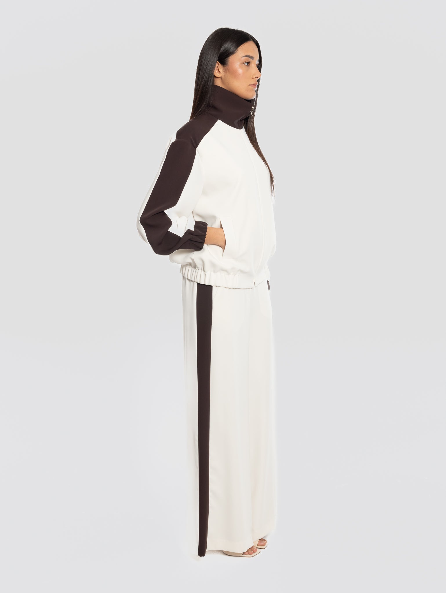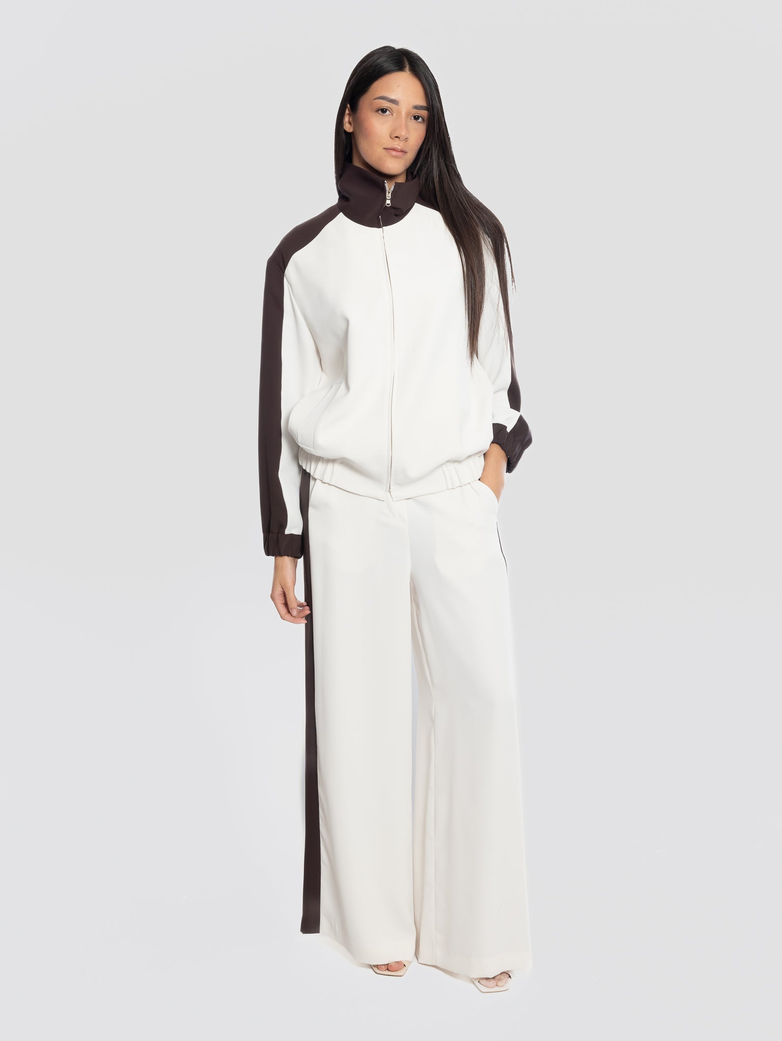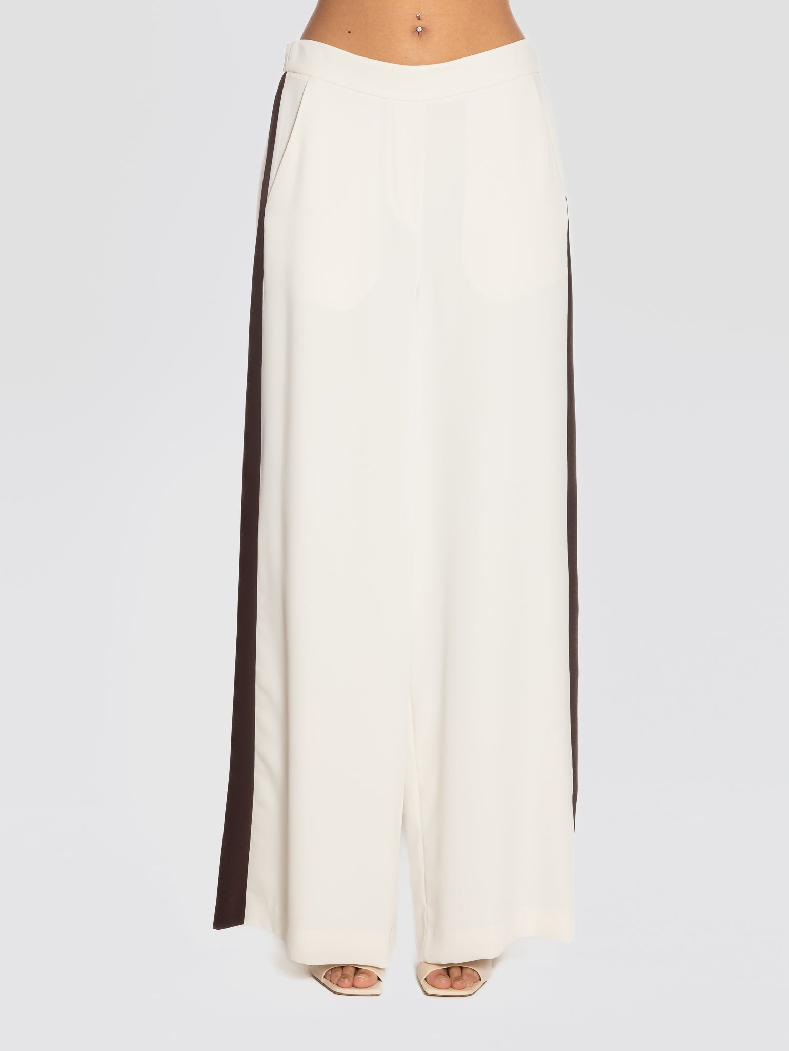 Pantaloni in Cady con Banda Laterale Panna/Marrone
