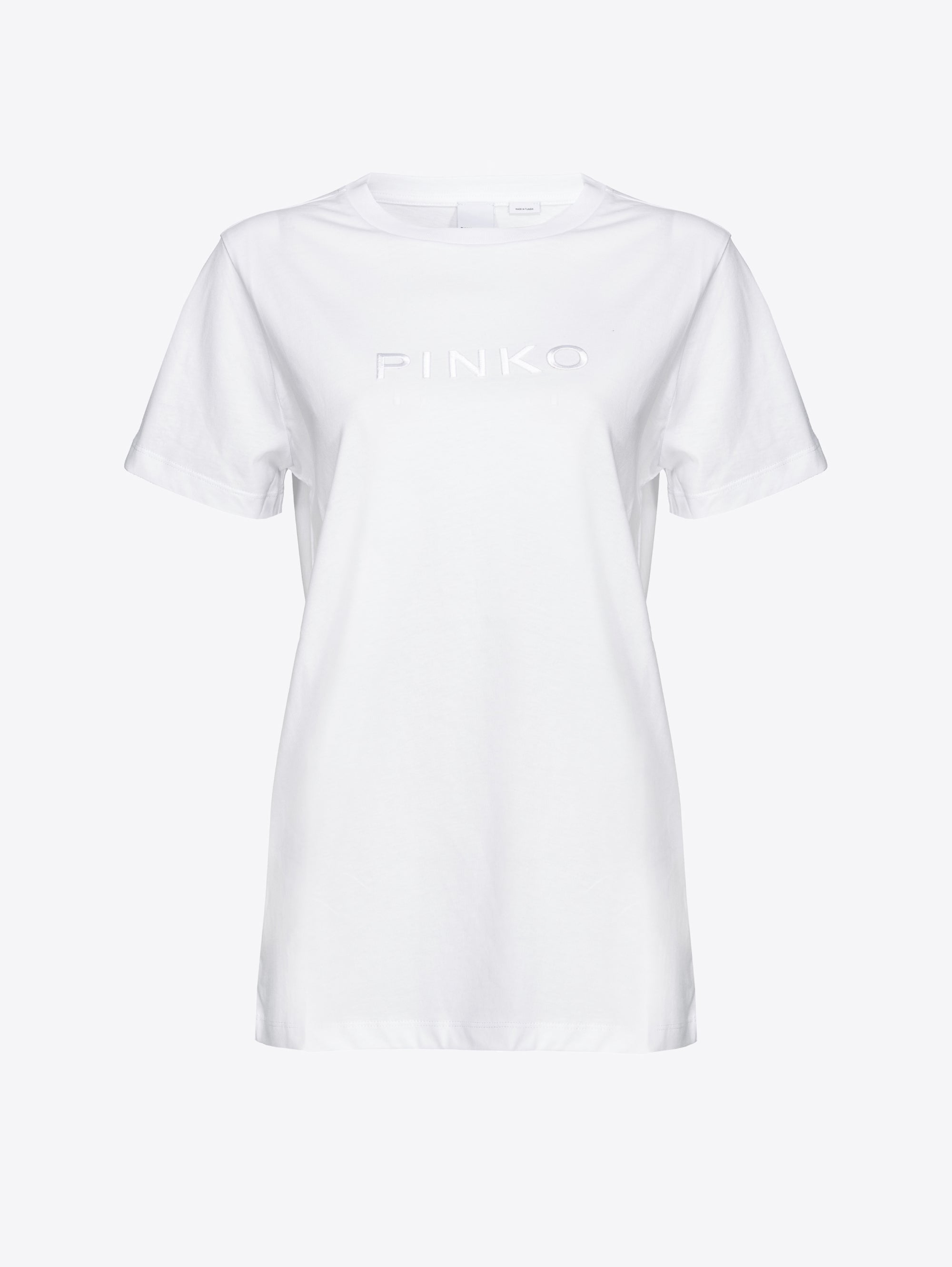 - T-shirt a maniche corte con ricamo logo PINKO davanti