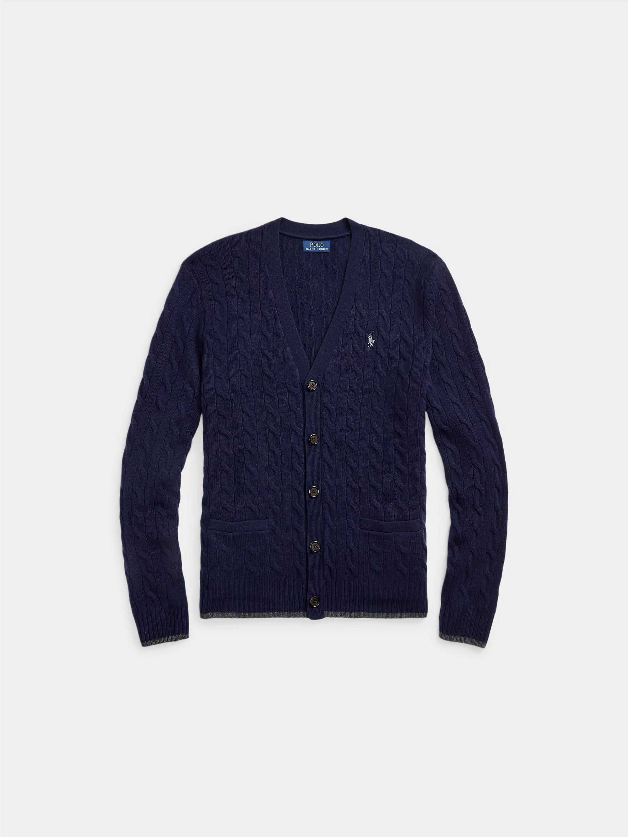 Cardigan lavorato a trecce in filato italiano di lana e cashmere da uomo di Polo Ralph Lauren.