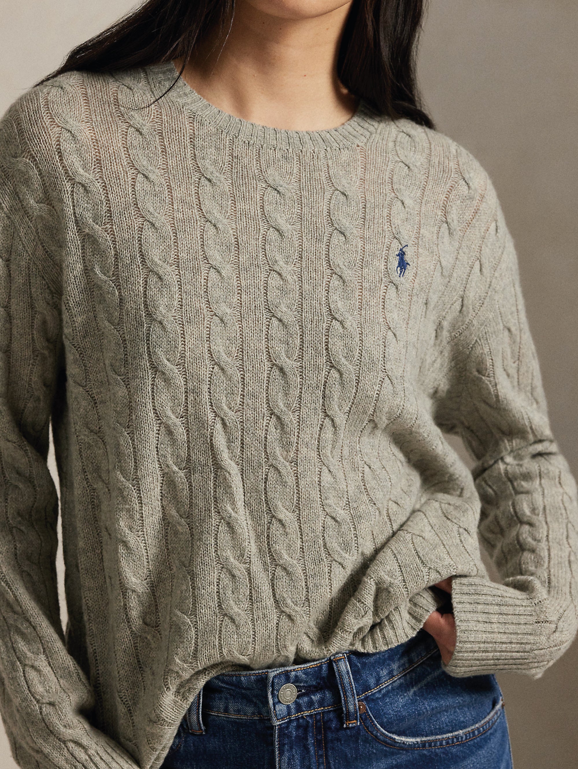- Maglione lavorato a treccia in lana e cashmere silhouette rilassata