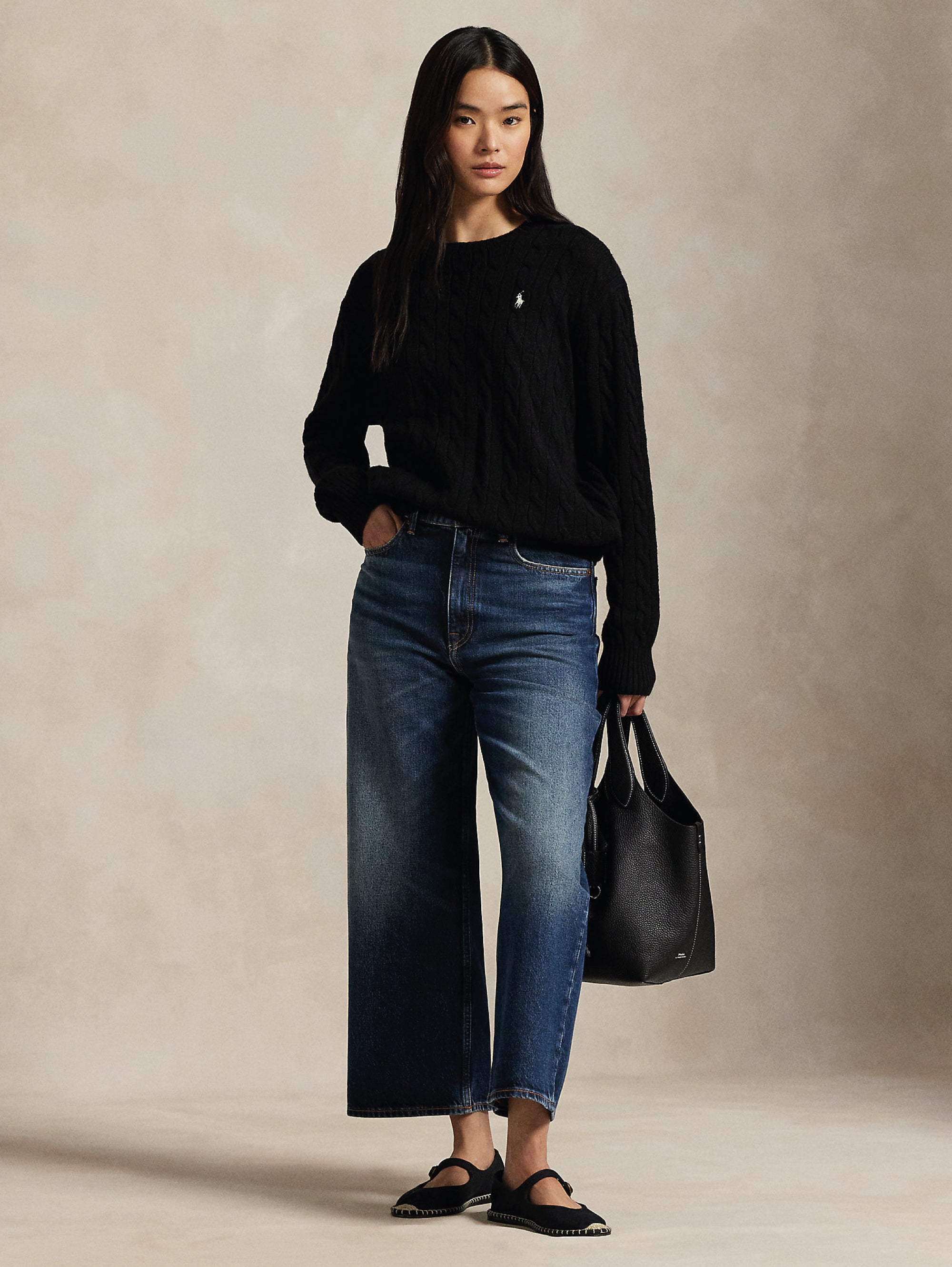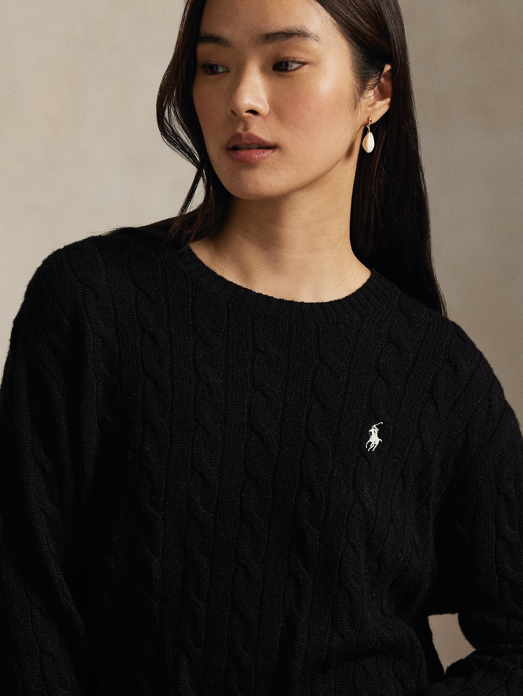 - Maglione lavorato a treccia in lana e cashmere silhouette rilassata