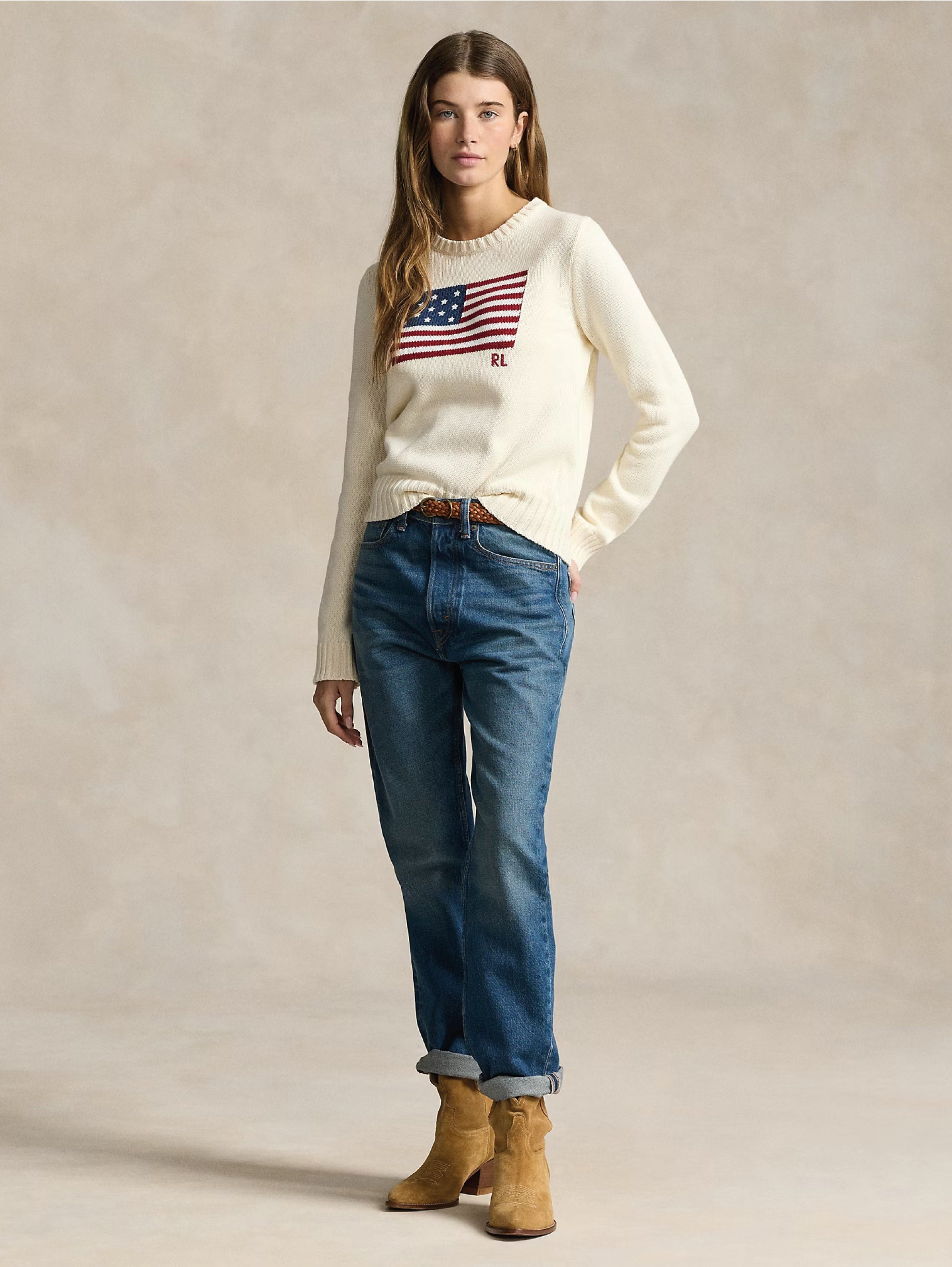 Maglia con bandiera realizzata negli Stati Uniti in cotone leggermente ritorto da donna di Polo Ralph Lauren.