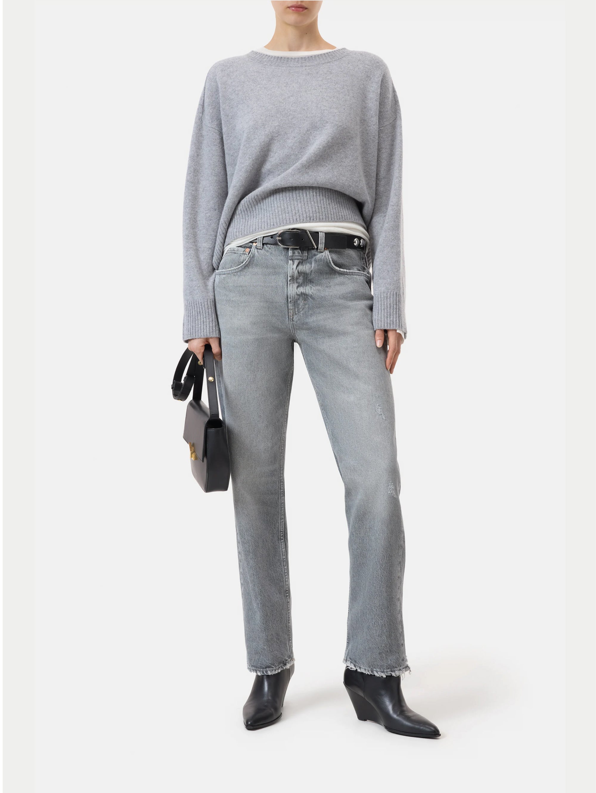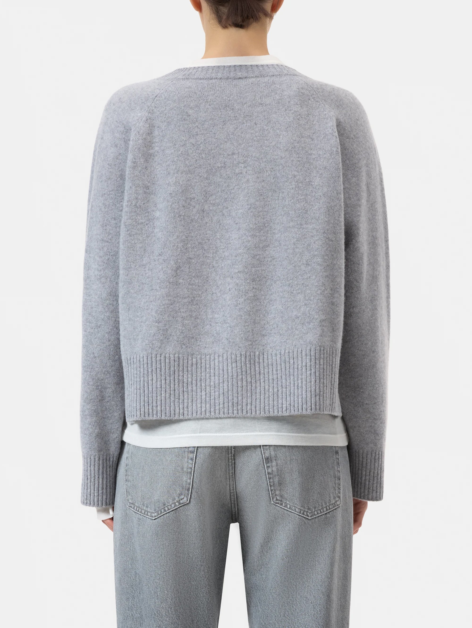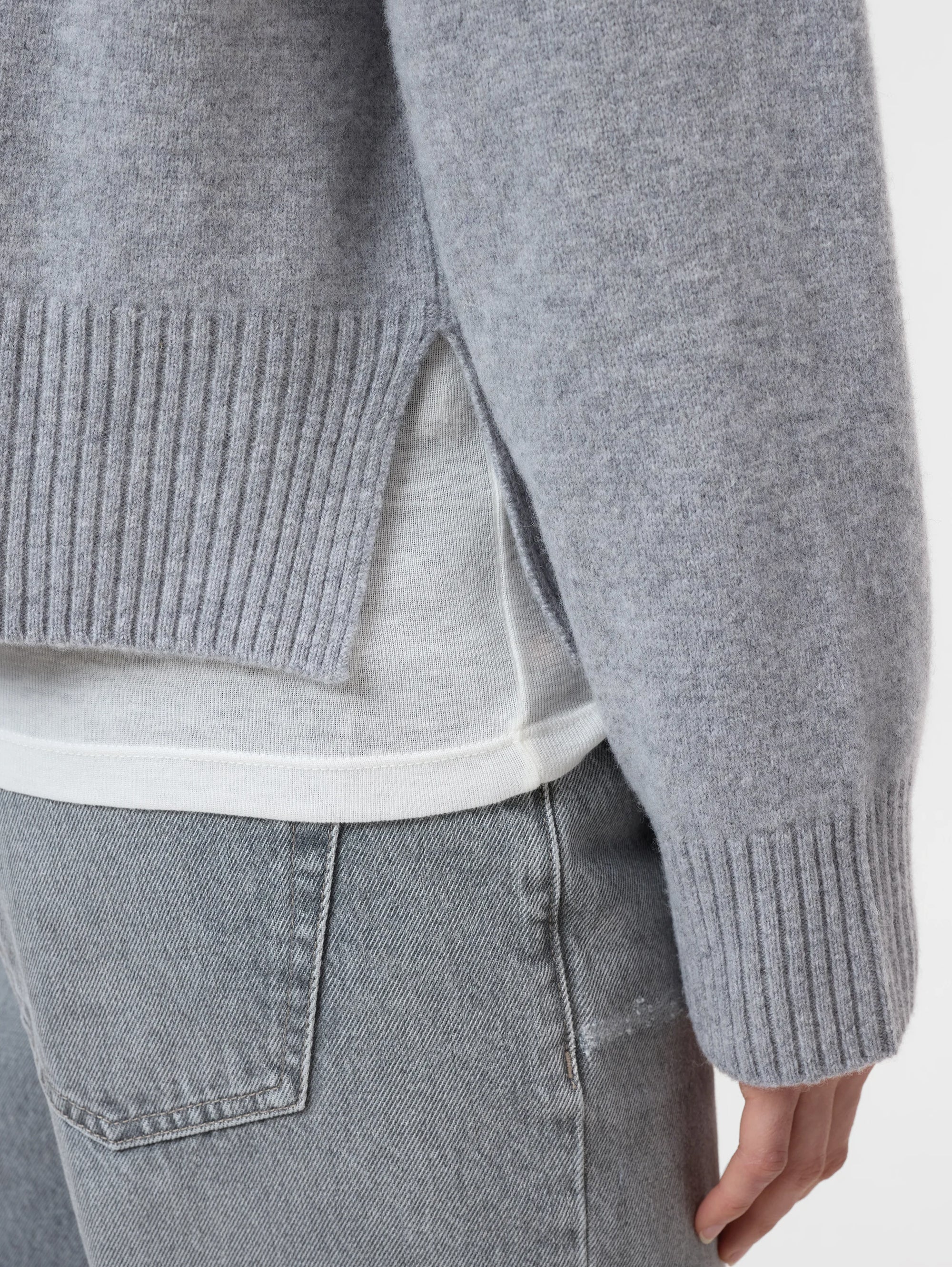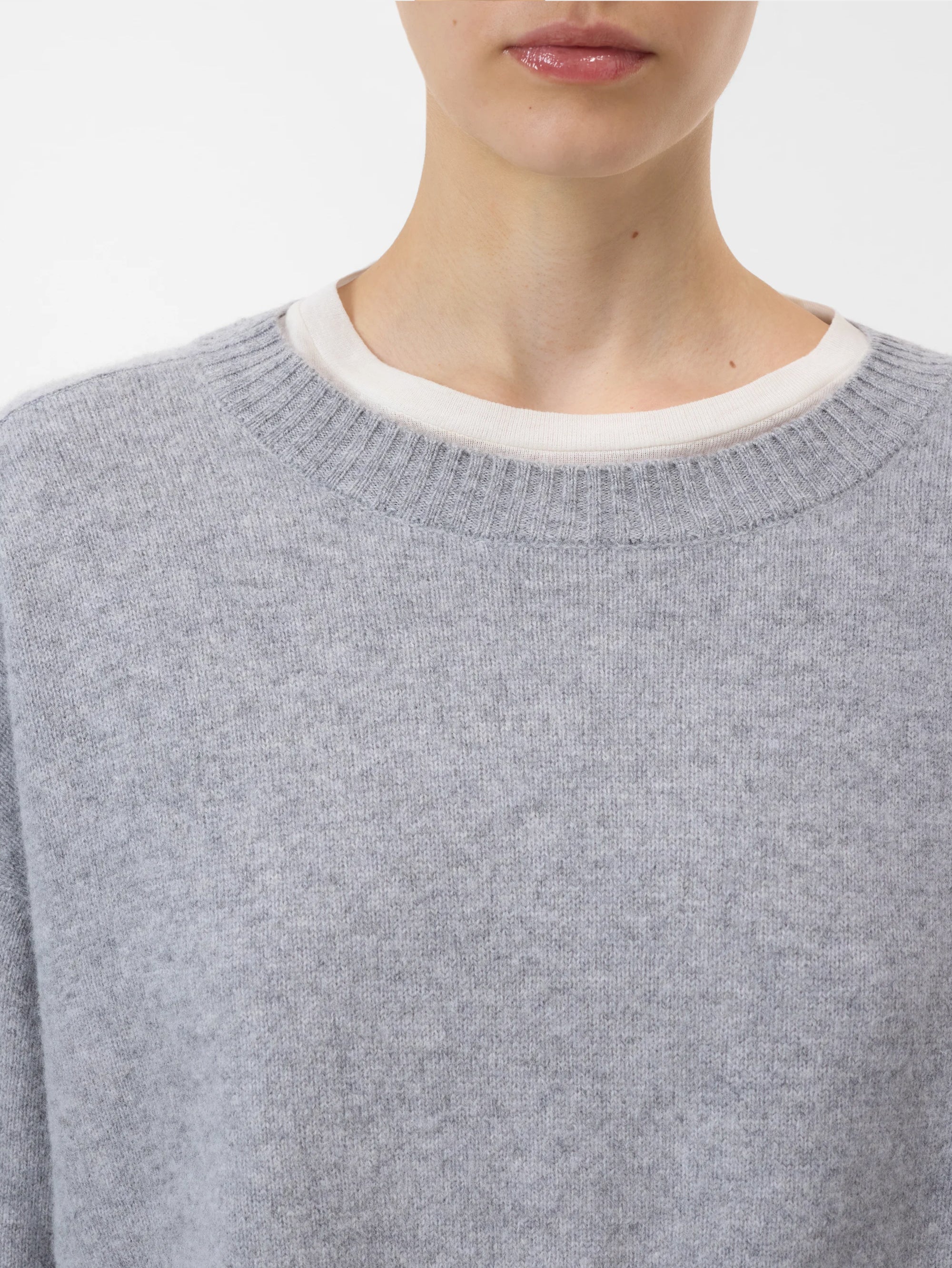 Maglia Girocollo in Lana Effetto Overwash Grigio