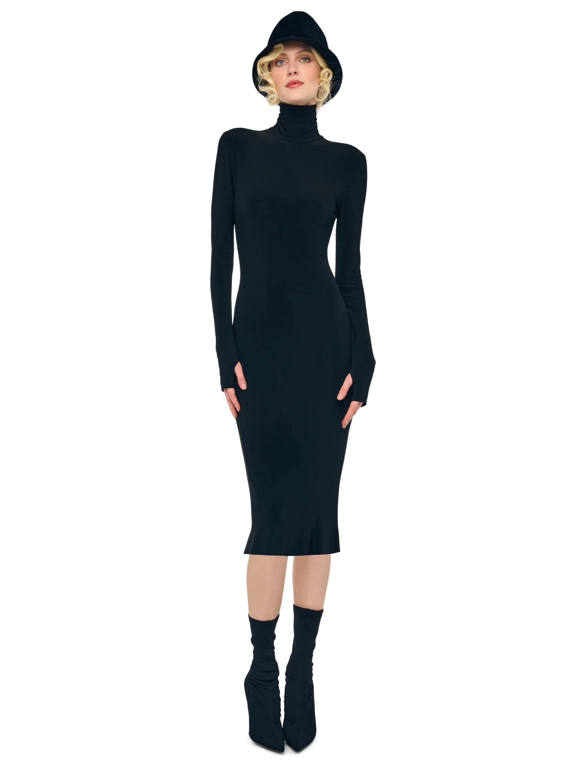 - Cod. KK3253PLR04001 - BLACK - LONG SLEEVE TURTLENECK DRESS TO MIDCLAF - BLACK